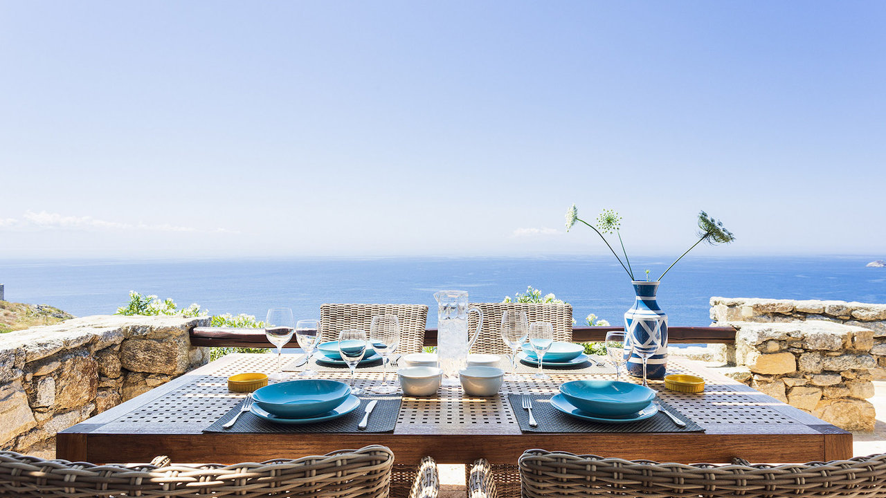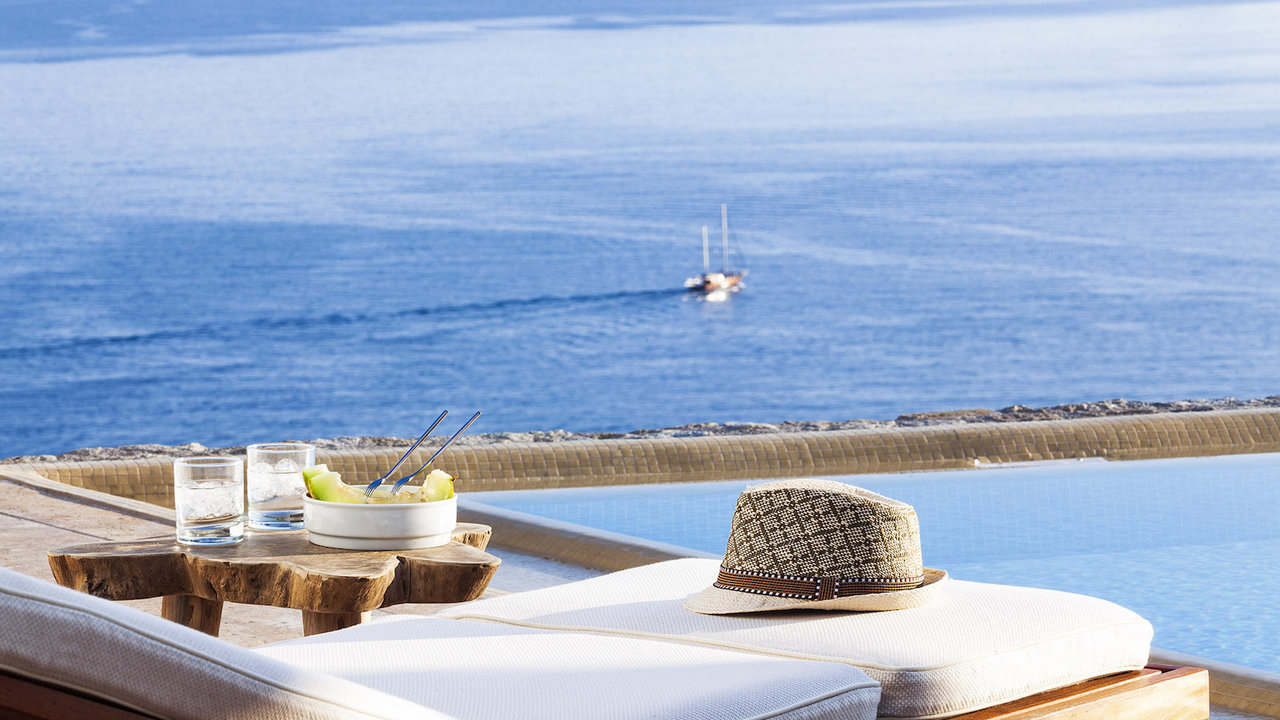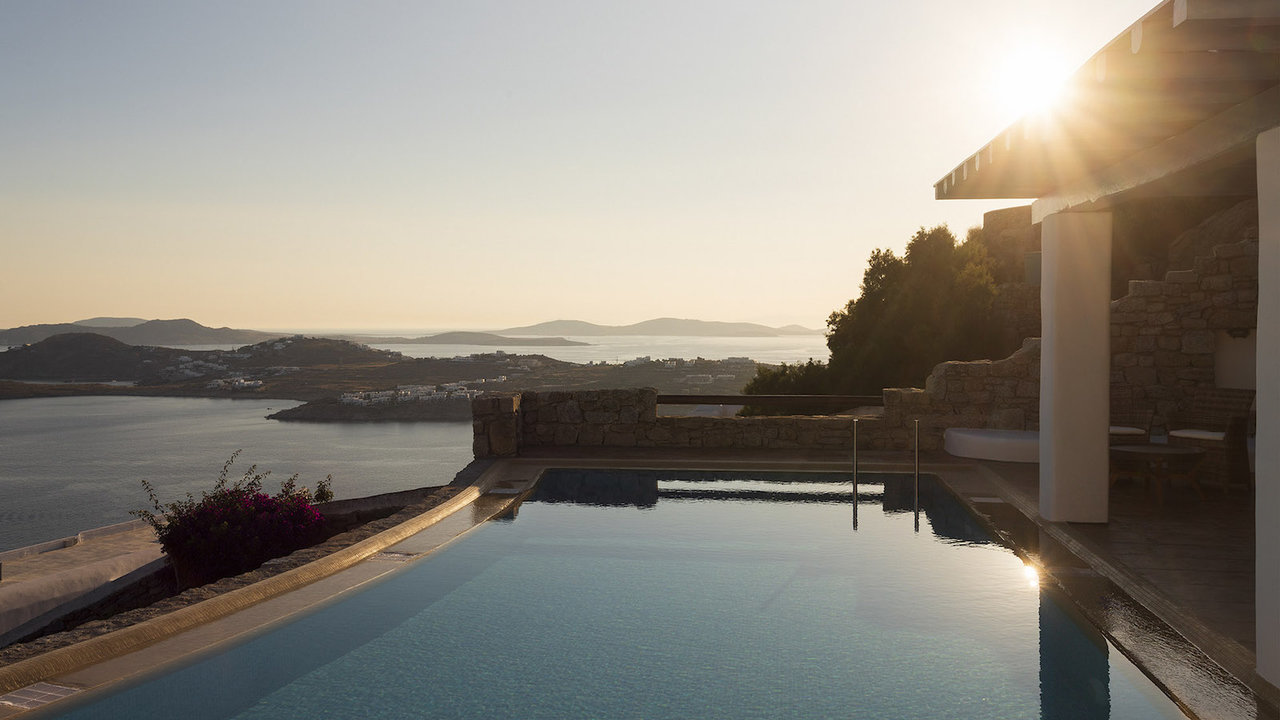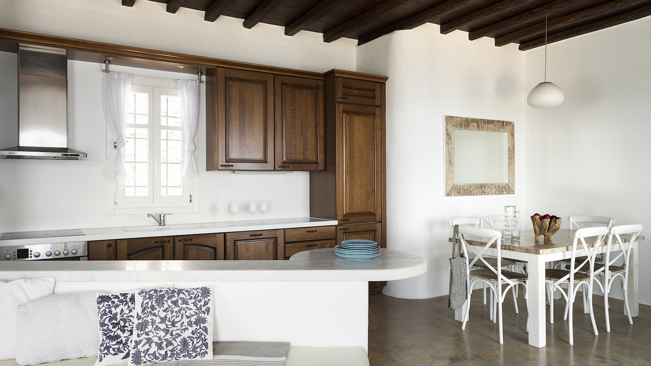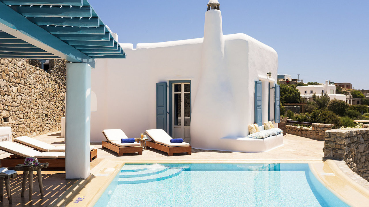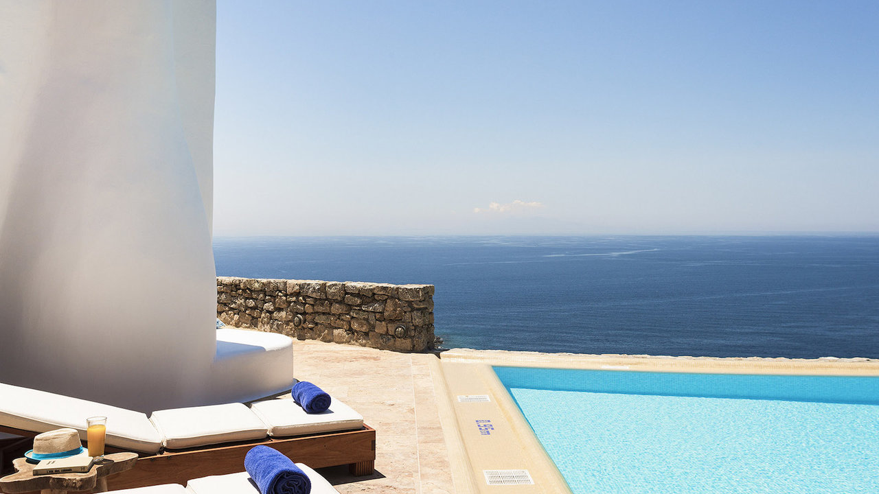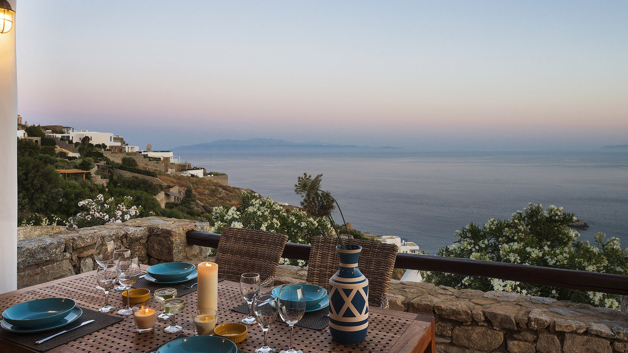 Villa Duende is perched atop the Mykonos private 11-Villa estate and enjoys a bird’s eye view of the islands of Delos and Rhenea, a majestic drop to the sea and the picture-perfect Mykonos sunset. Villa Duende boasts an outdoor BBQ and an outdoor dining & lounging area (sunny & shady all day long)- all in front of the 55 m2 infinity pool that flows off into the Aegean horizon- and you are still less than a three-minute walk to the sea (still within the resort). Villa Duende is uniquely ideal for families with children as it is all on one level. The villas has 3 bedrooms and 2 bathrooms. The brilliant white interiors and exteriors and the subtle tasteful decorations reflect the Mykonian-elegance the island is known for, so you can totally immerse yourself in the spirit of the island. The refurbished luxury estate has daily, complimentary maid service-so you don’t lift a finger, 24/7 CCTV monitoring at the periphery of the estate- so unauthorized people are detectable, Netflix- to quench your thirst for relaxed adventure, flat screen TVs- so everyone can watch, back-up generators- to face the frequent local electric shortages, a desalination plant- so you can ignore the frequent local water shortages, and a 24/7 gate-access control. The pool can be heated for a fee.