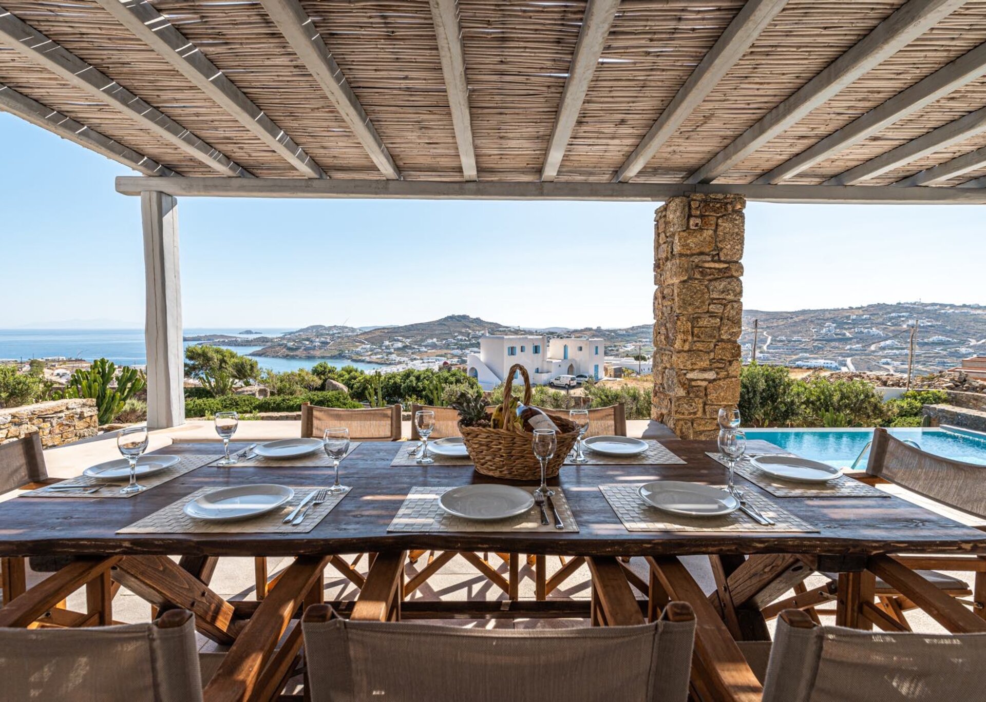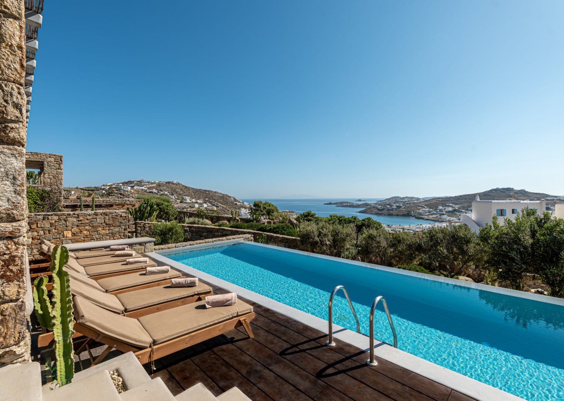 Perched on the hilltop Elena commands sweeping views of Mykonos and the blue Aegean.