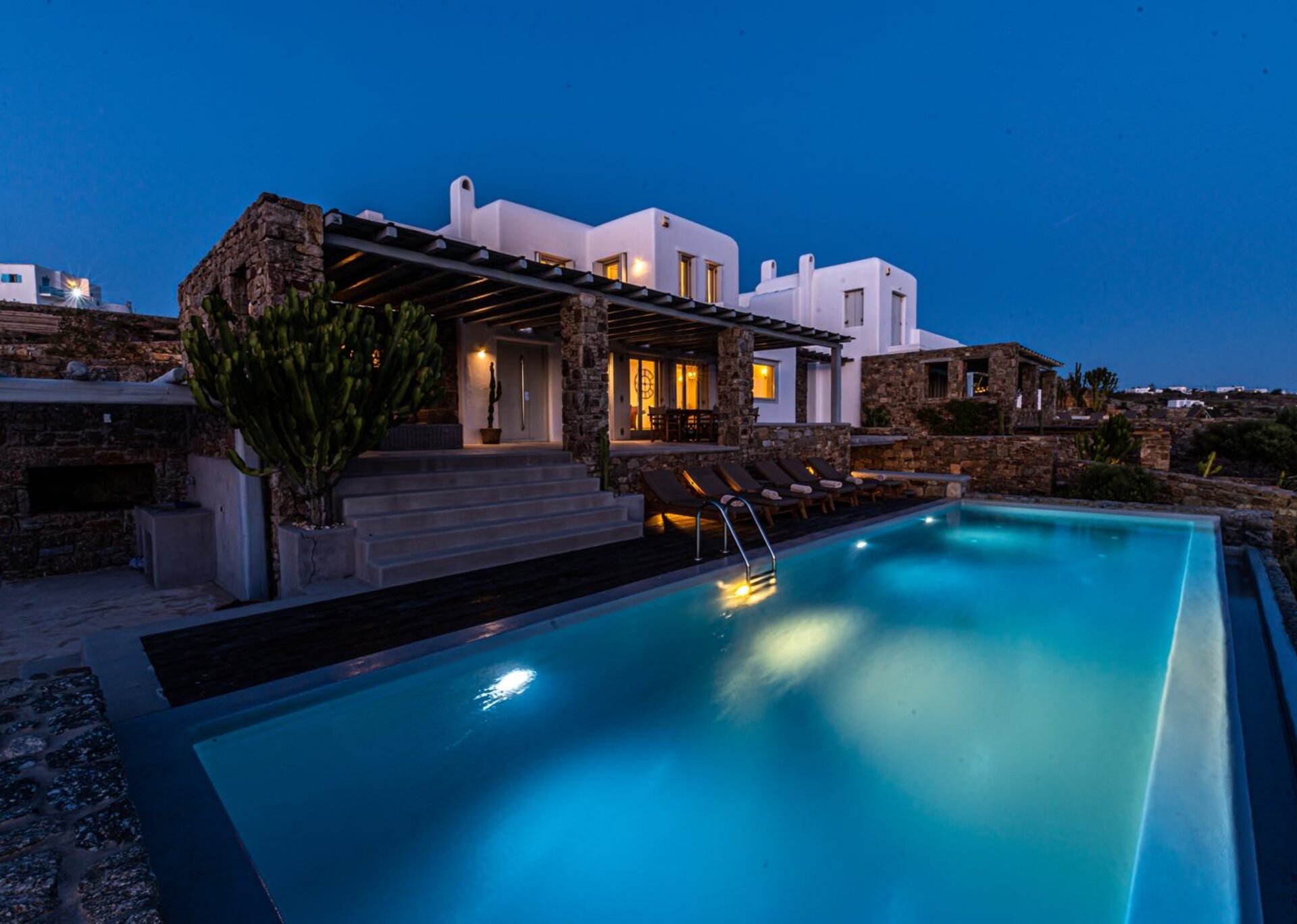 Modern decor combines with traditional architecture for a luxurious Greek holiday. Swim and relax during the day, party and enjoy the lights in the evening. Four distinctive and spacious bedrooms accommodate up to 10 people in commodious style.