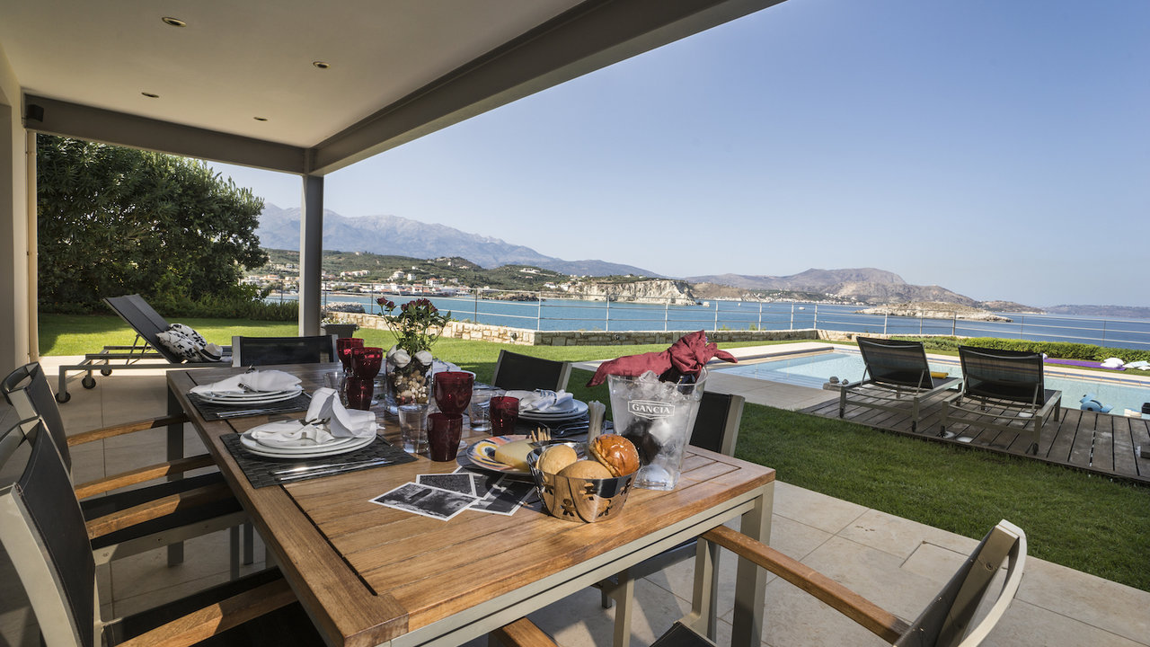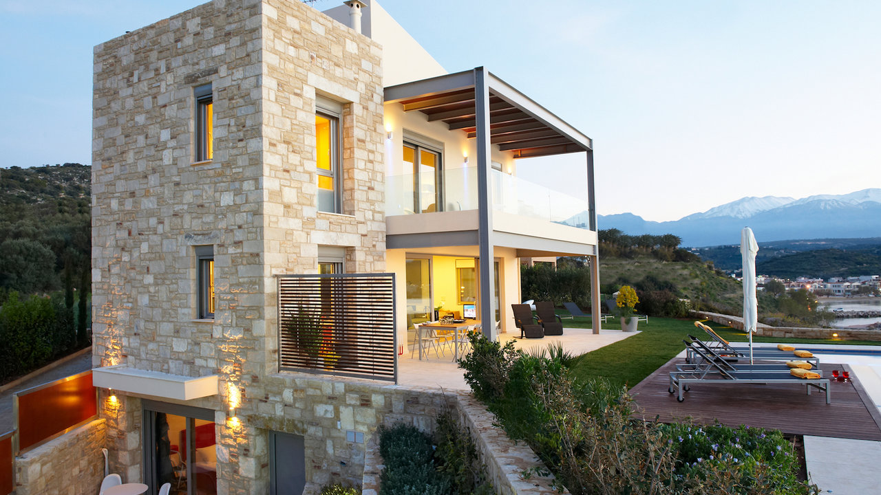 Located in the historic and breathtakingly beautiful city of Chania in Crete, Villa Elianna exudes a mesmerizing charm that is sure to captivate. This traditionally designed estate is a modern retelling of minimal perfection, with stylish exteriors that'll leave you spellbound! Lush green terraces with sunbeds, spectacular dining and lounging areas, and a private pool make for exquisite outdoor experiences, complete with serene, panoramic views, which is particularly mesmerizing when the sun sets over the horizon.