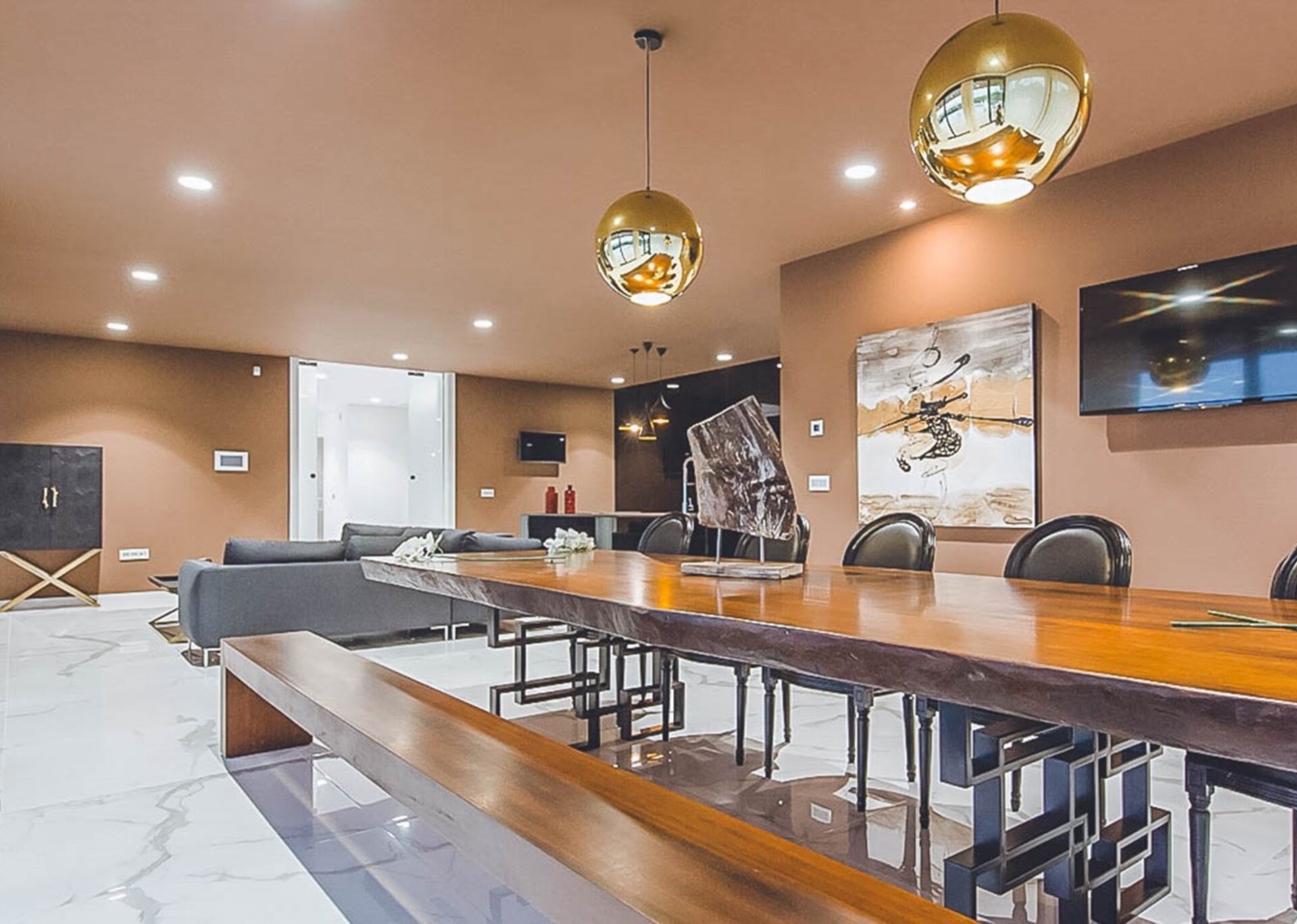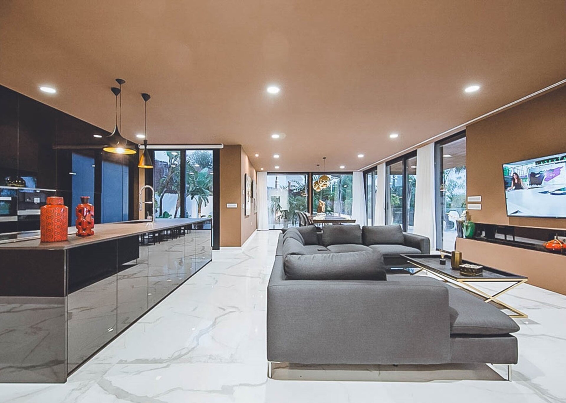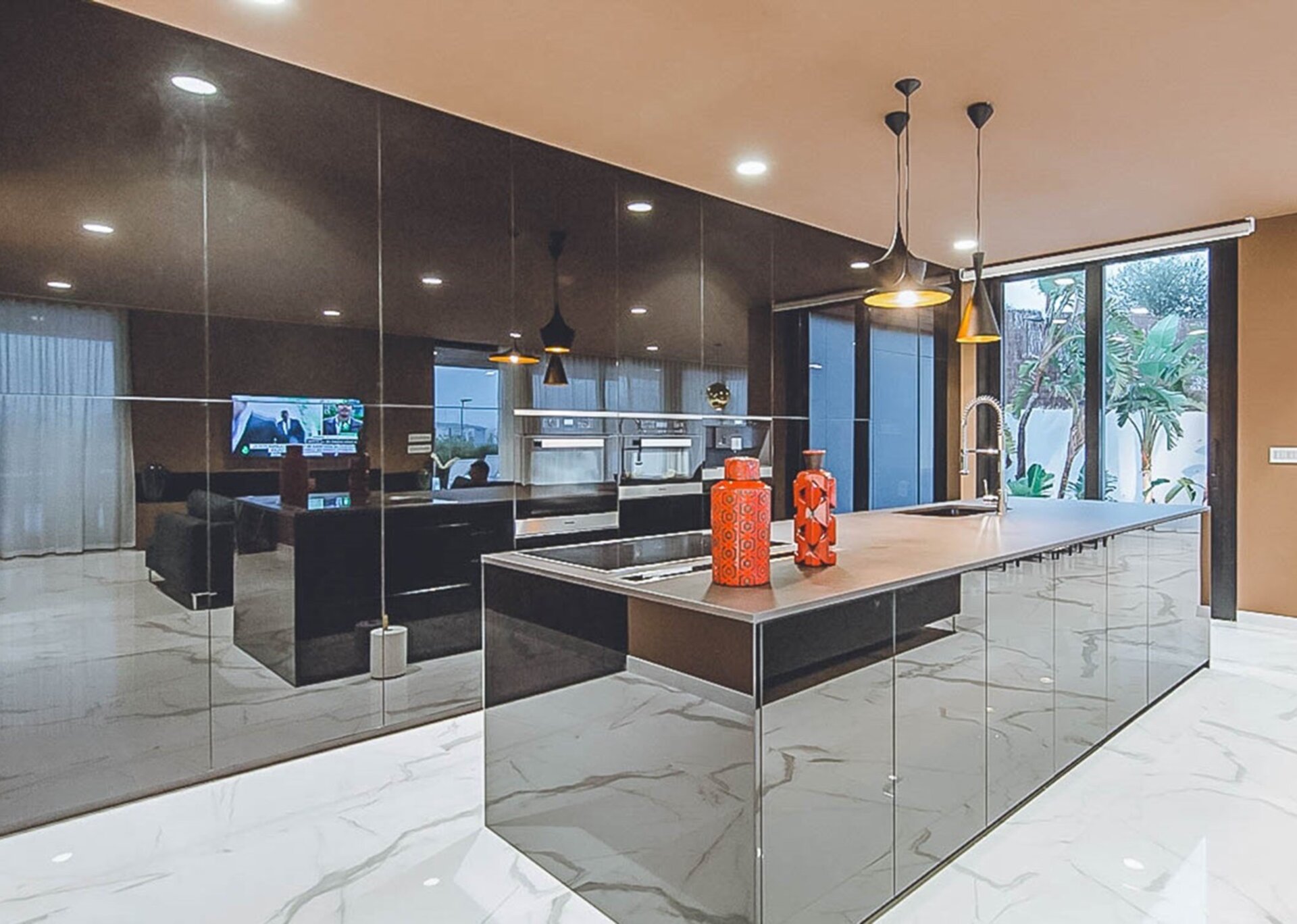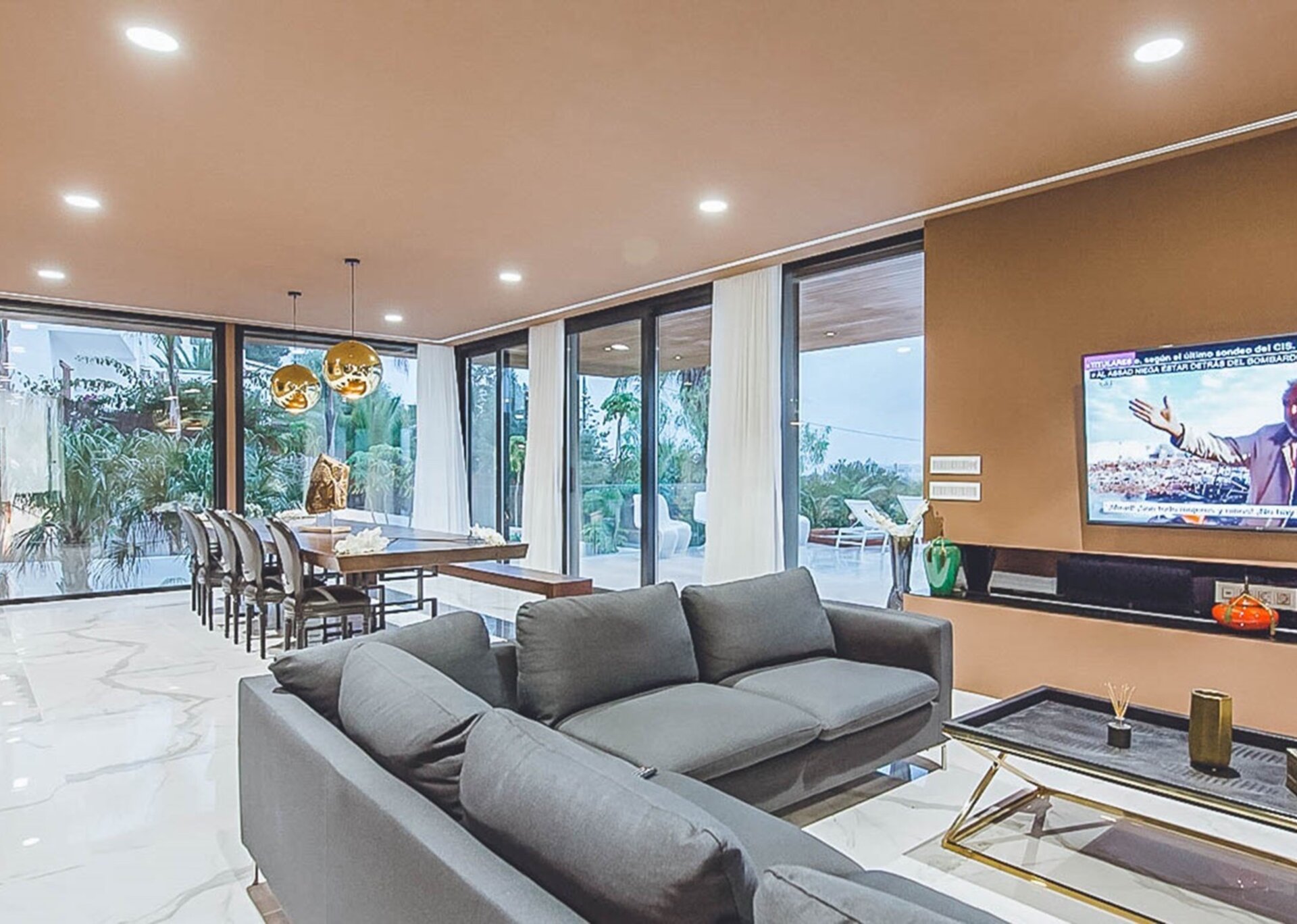 The house has the highest quality, tasteful and sophisticated state of the art furnishings and decor throughout. The rooms are distributed over three floors, giving guests a sense of space and privacy and boasts a fully equipped ultra-modern kitchen with an additional service area for household staff, and a spacious open plan lounge/dining room.