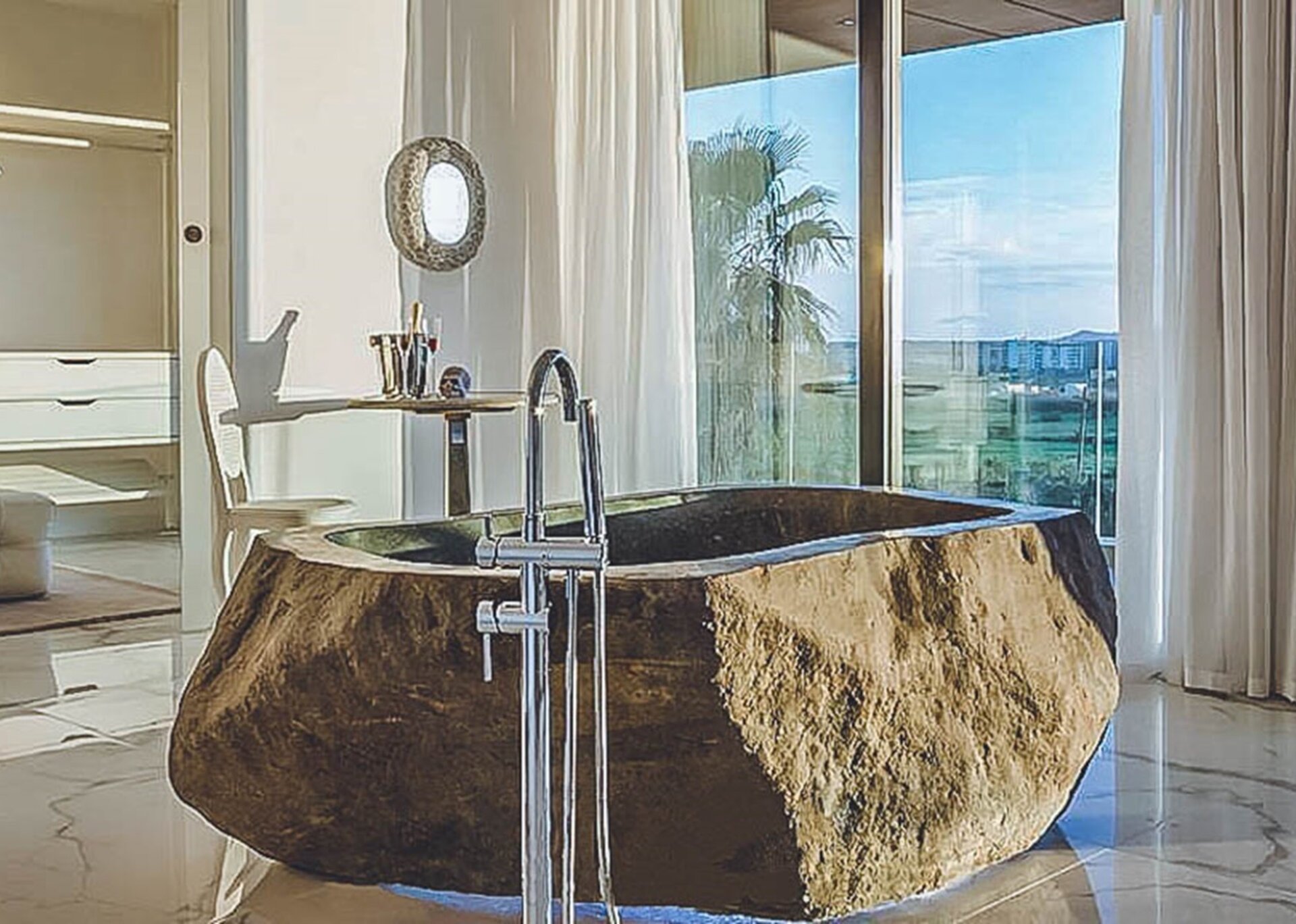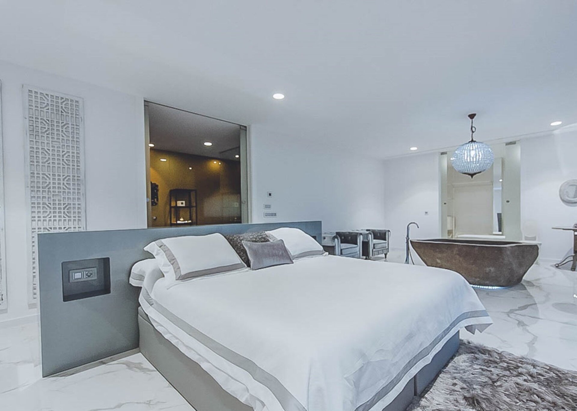 The amazing master suite is a massive 100 sqm of luxury, it has an en-suite bathroom with a stone bath integrated into the room, dressing room, storage space and breath taking views.