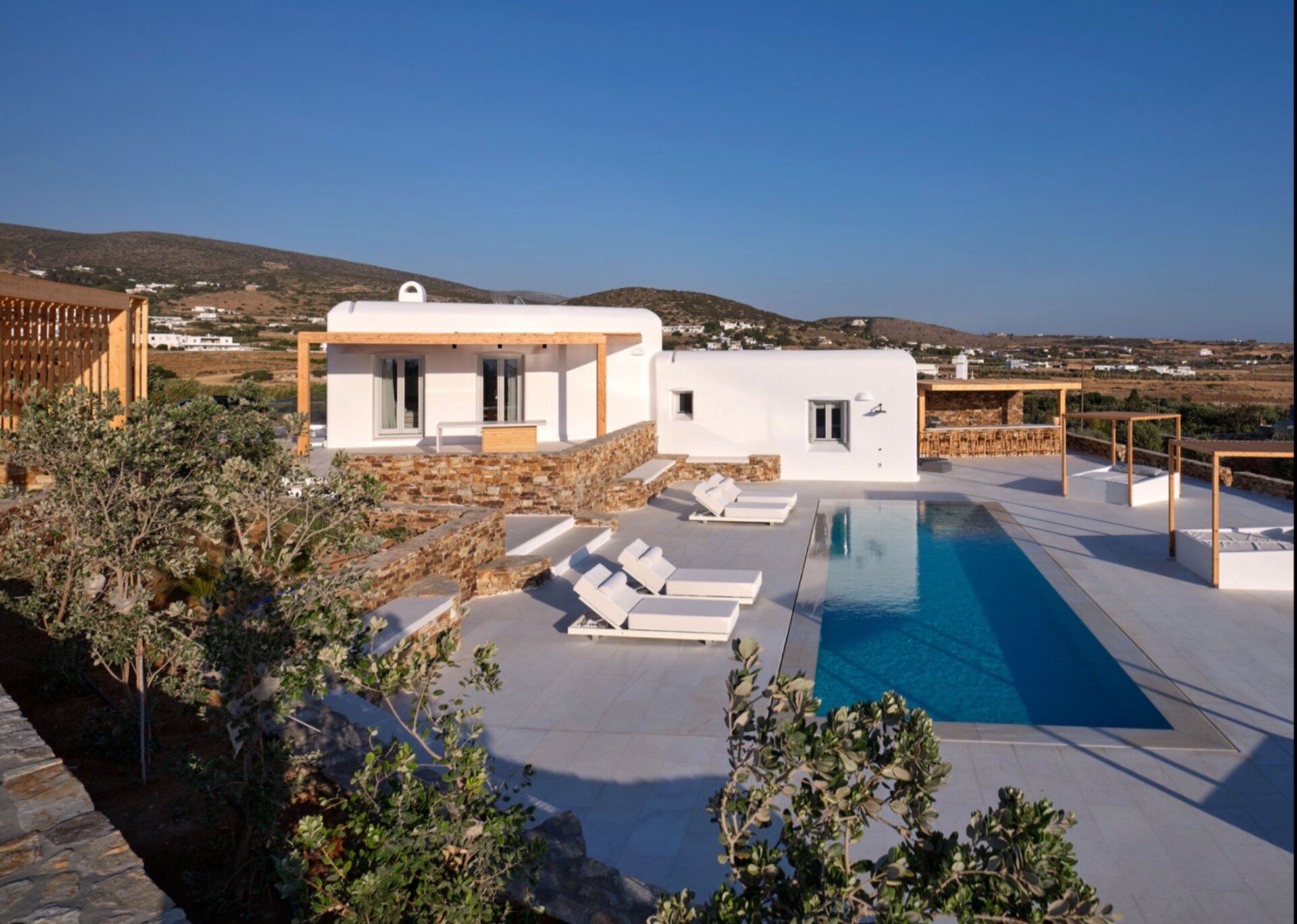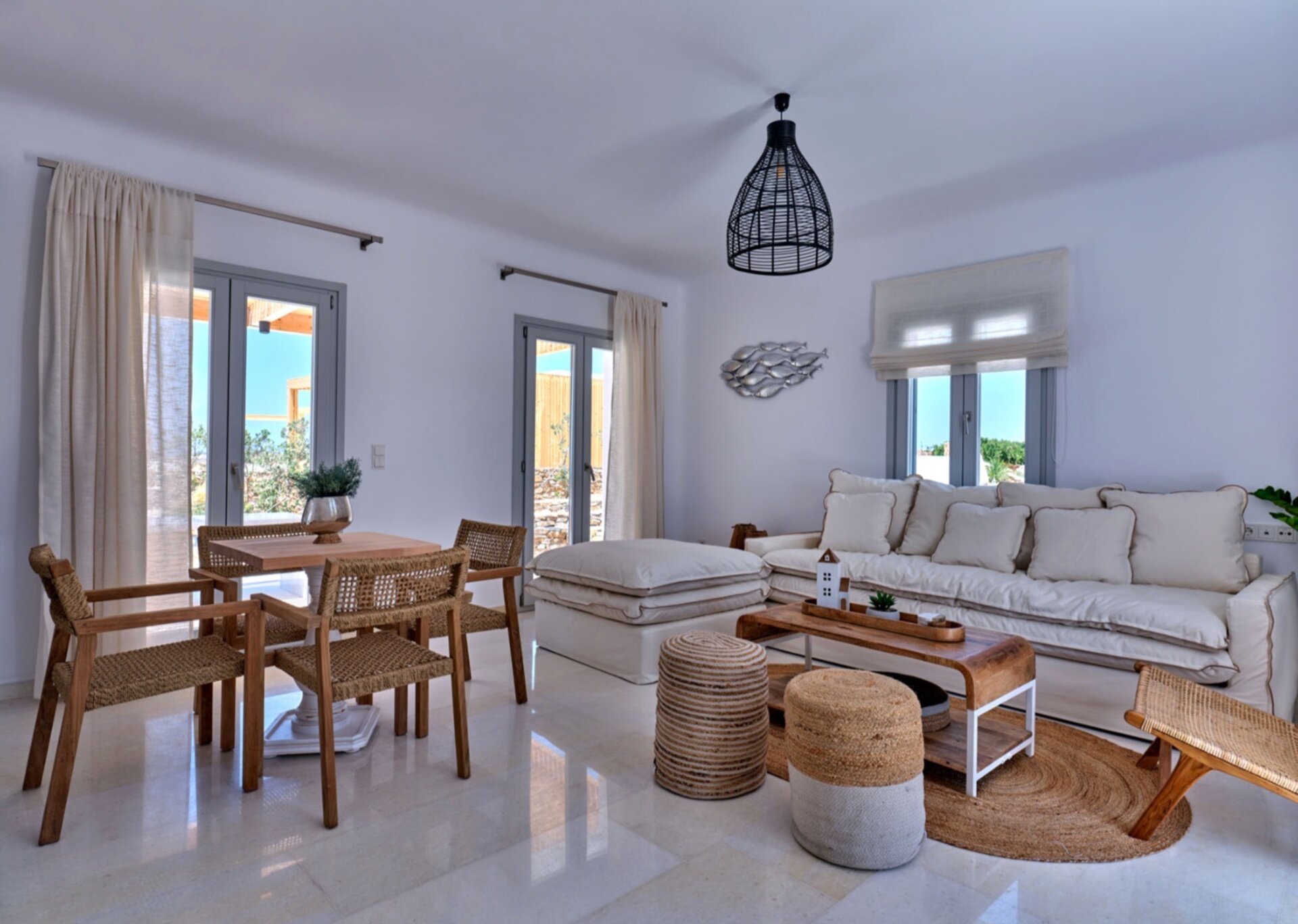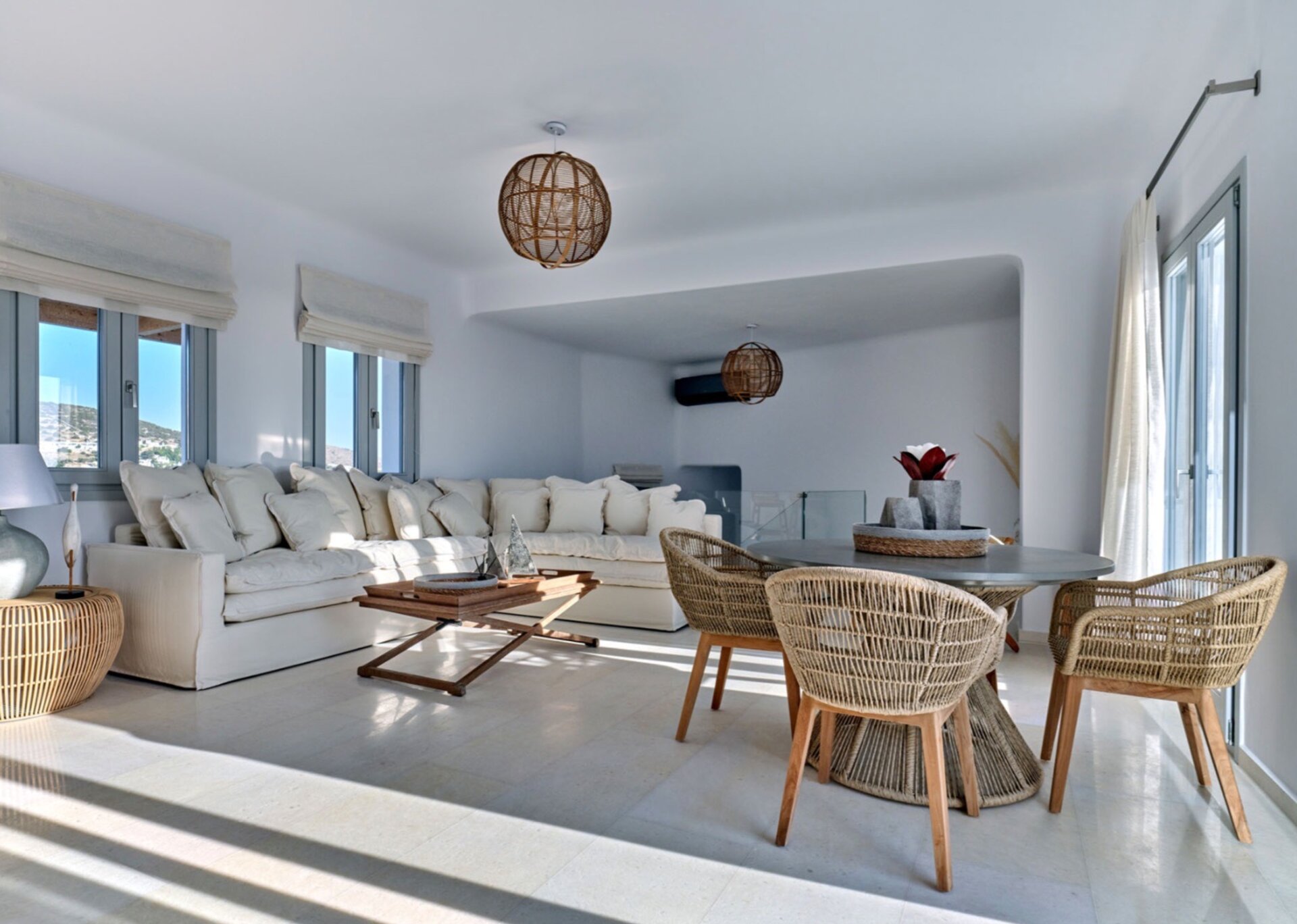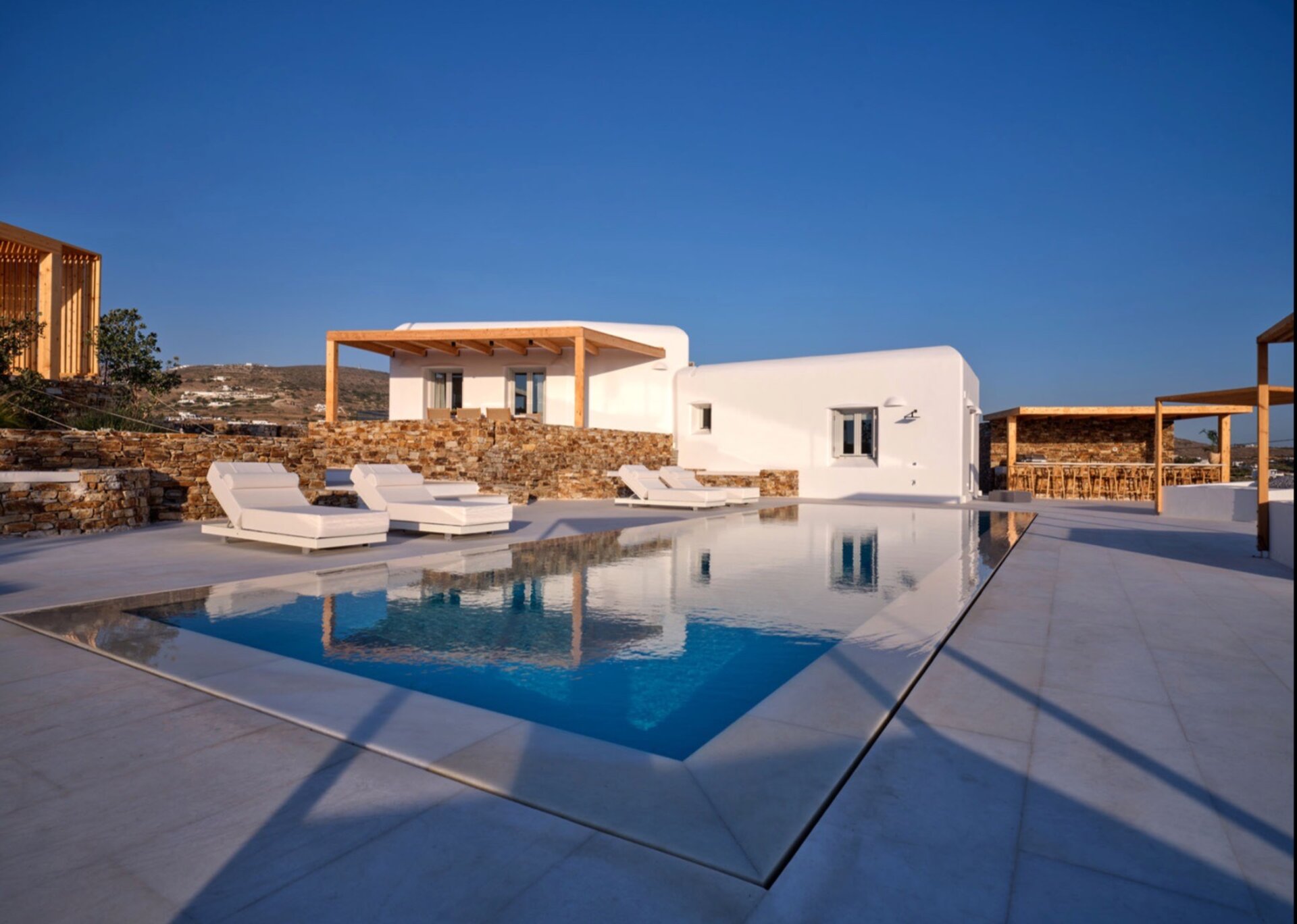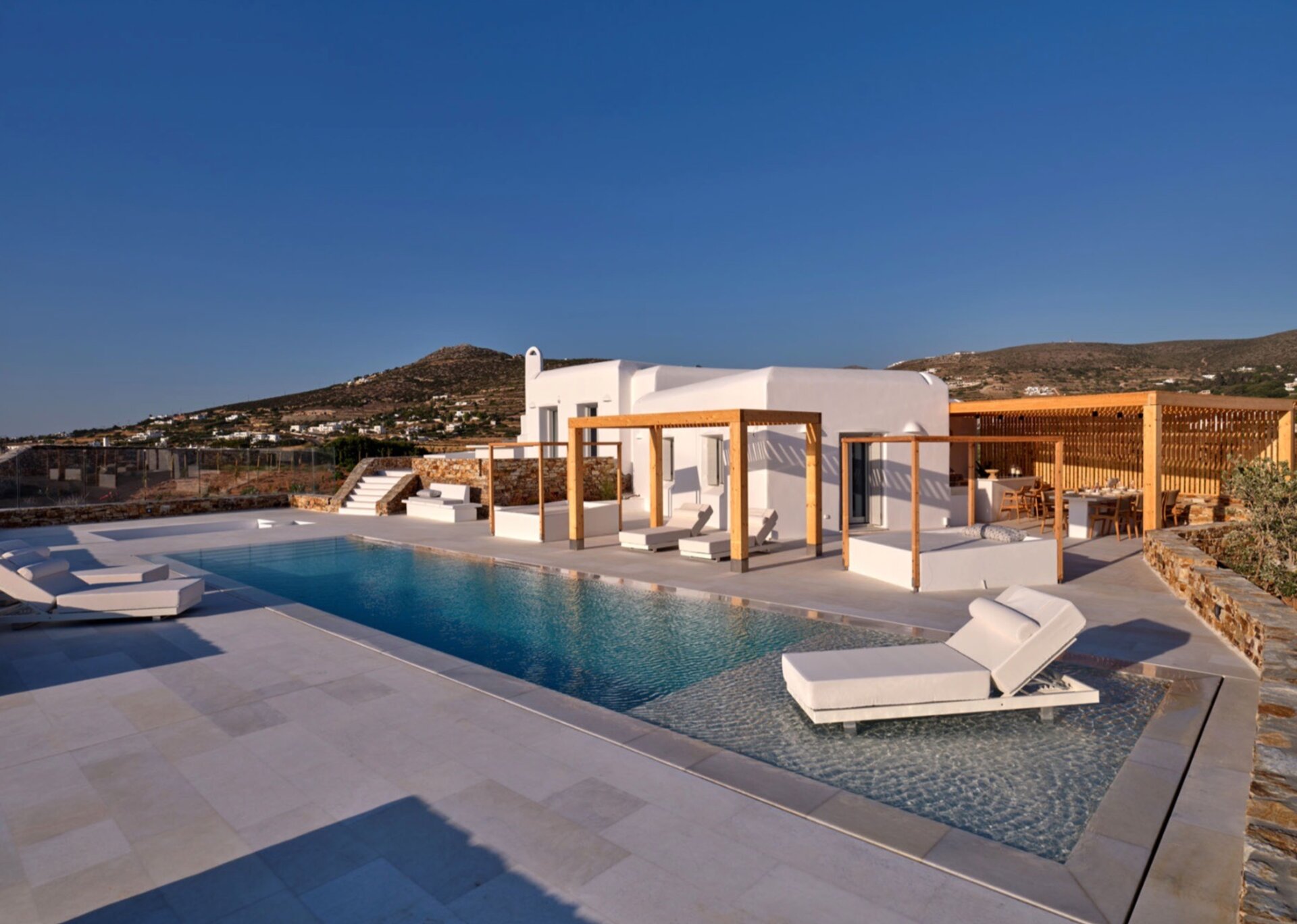 Villa Elizabeth combines contemporary clean line architecture with a Cycladic influence creating a modern luxurious setting both in and outdoors. Indoors the Villa’s white predominates with wooden and marble touches.