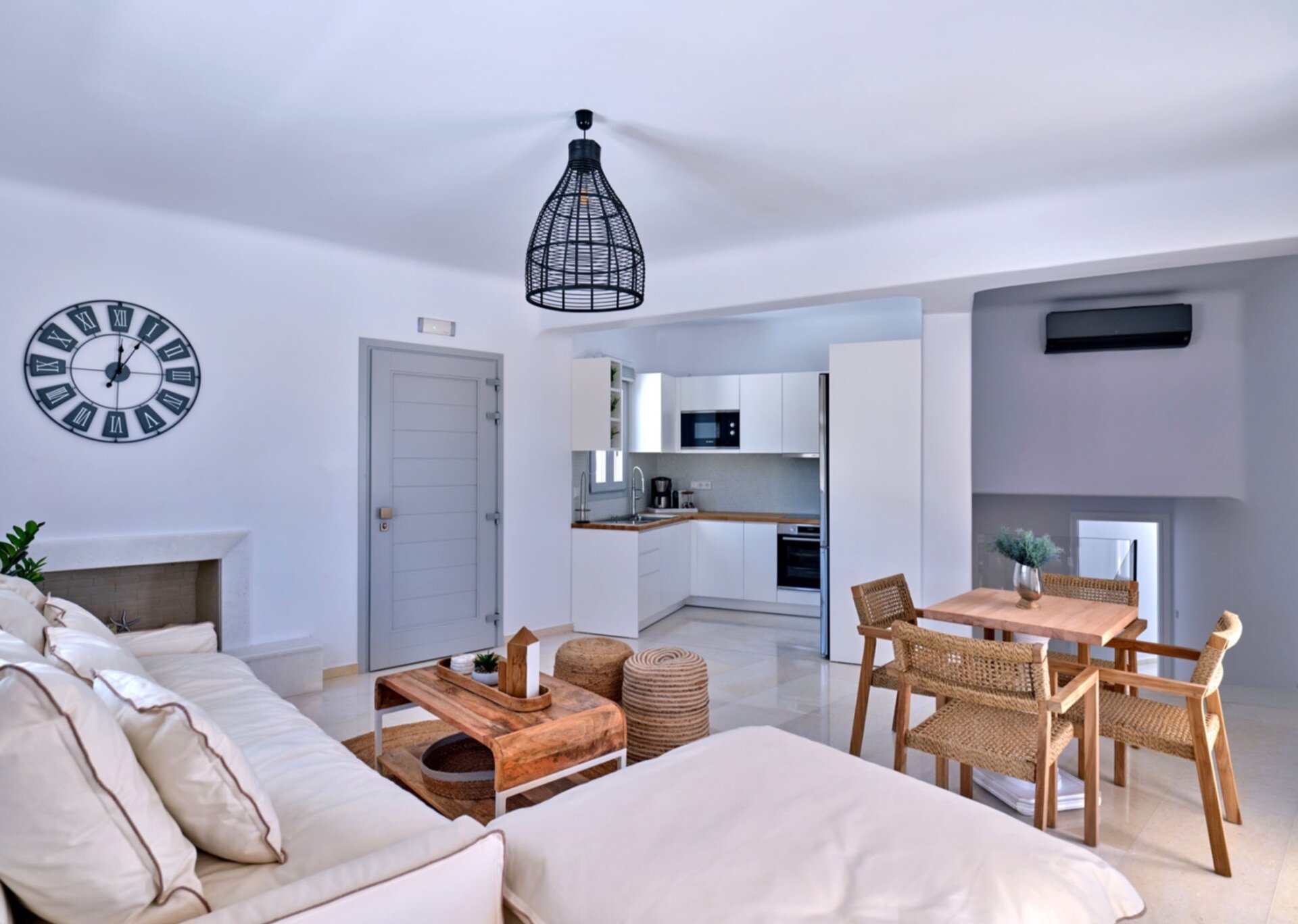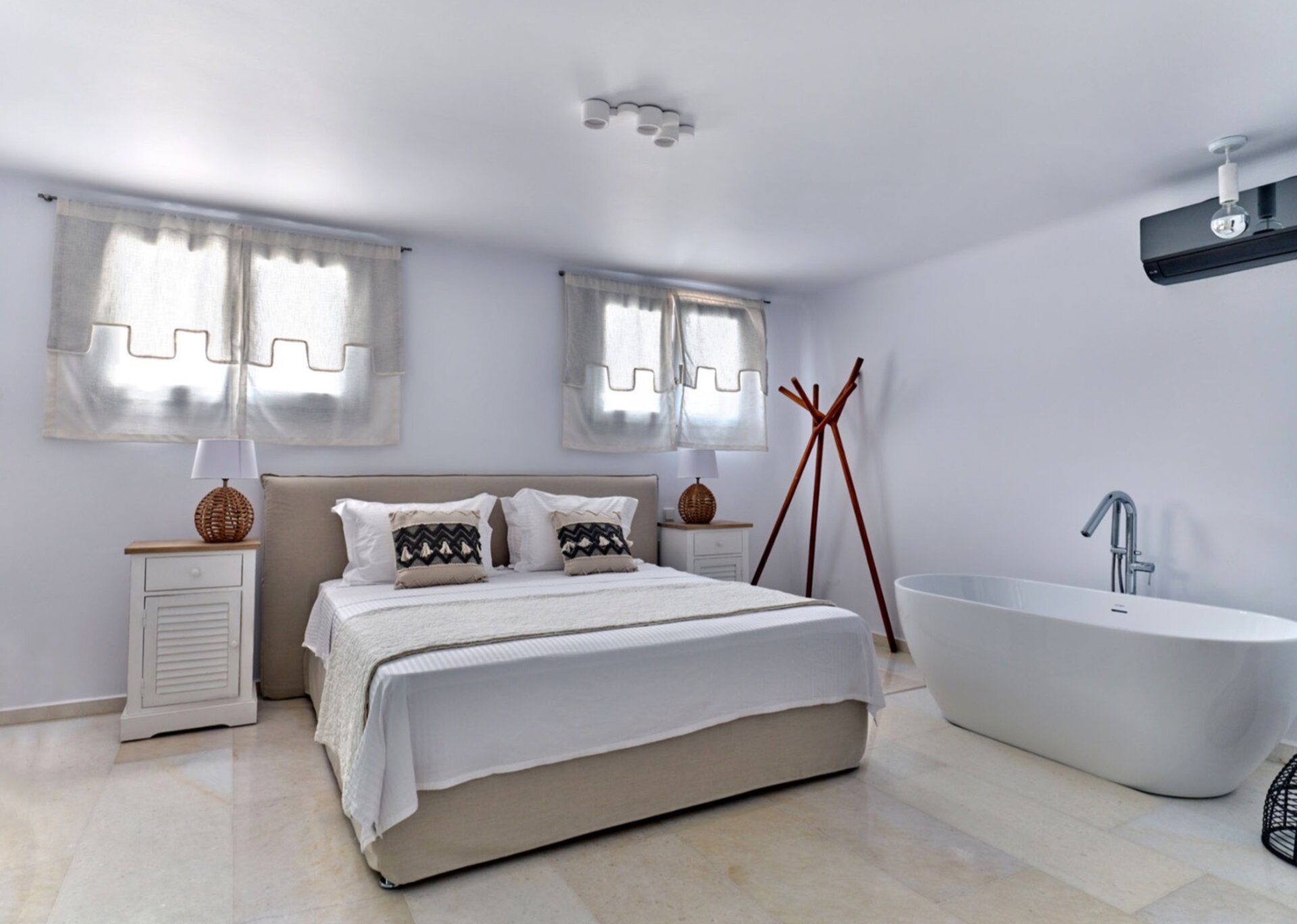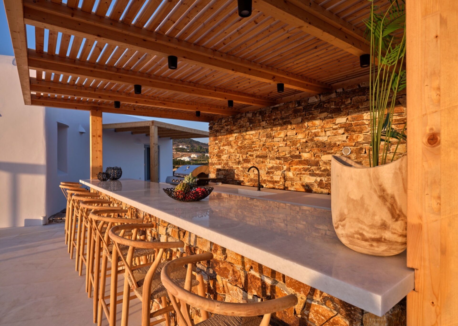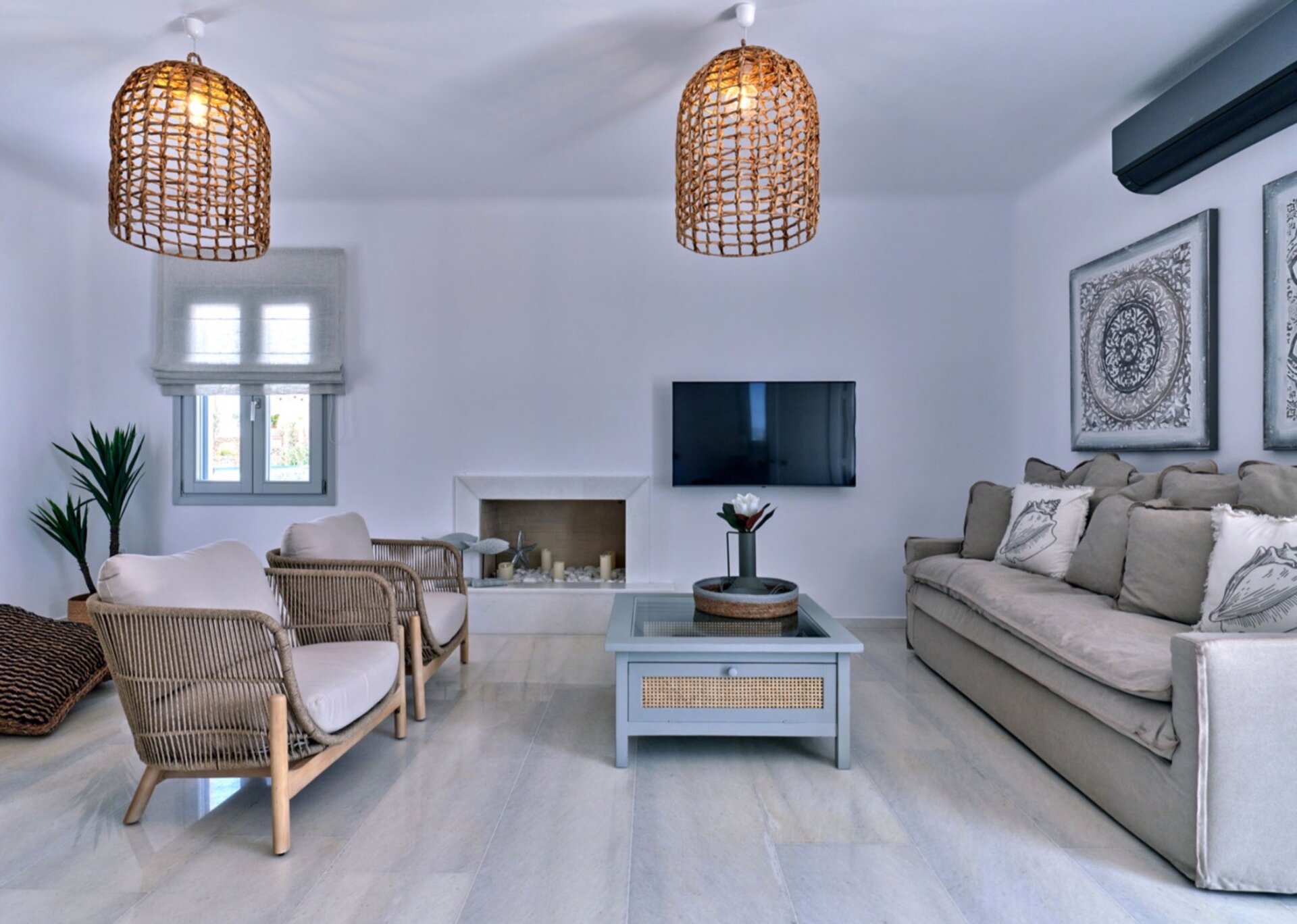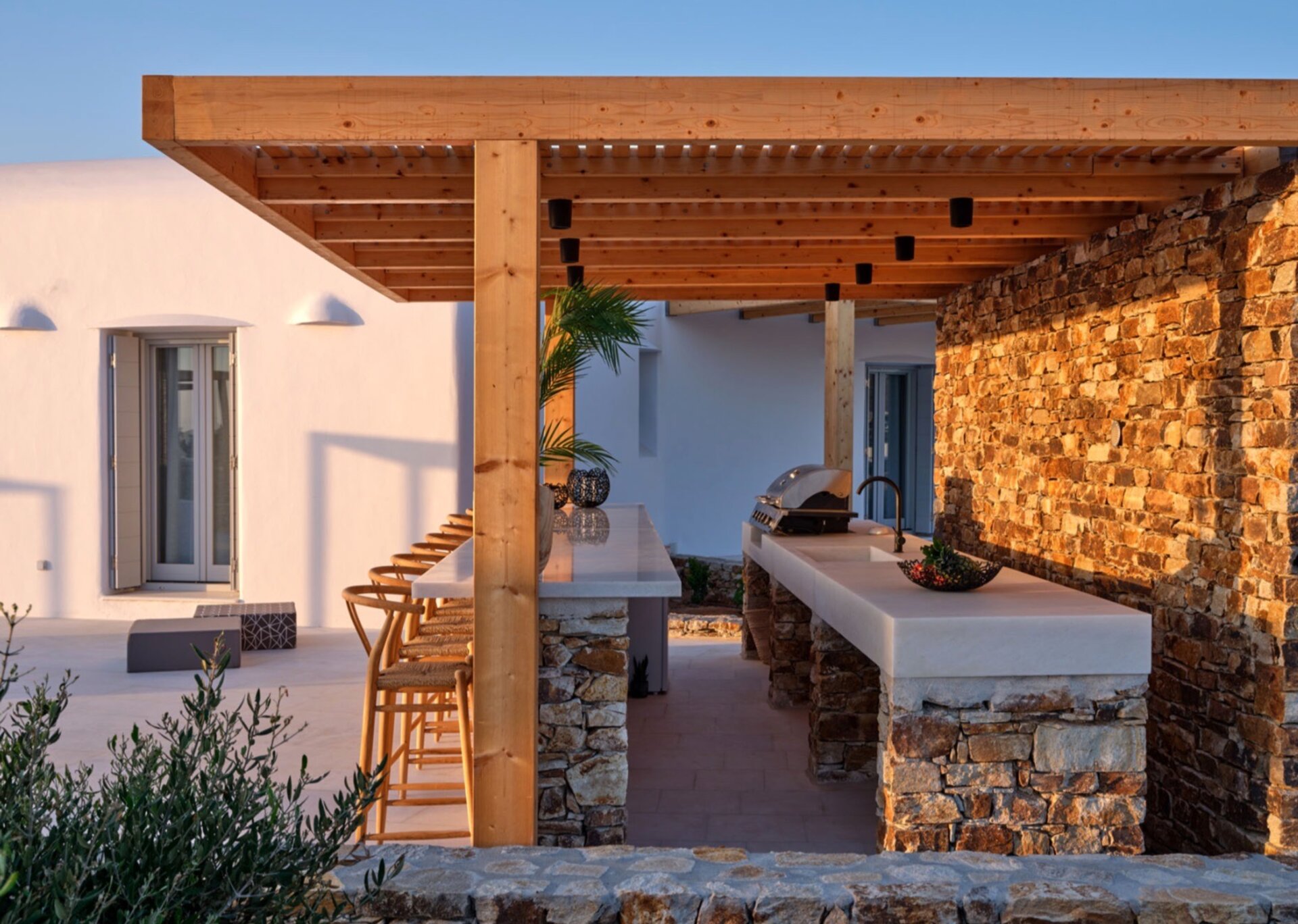 Villa Elizabeth combines contemporary clean line architecture with a Cycladic influence creating a modern luxurious setting both in and outdoors. Indoors the Villa’s white predominates with wooden and marble touches.