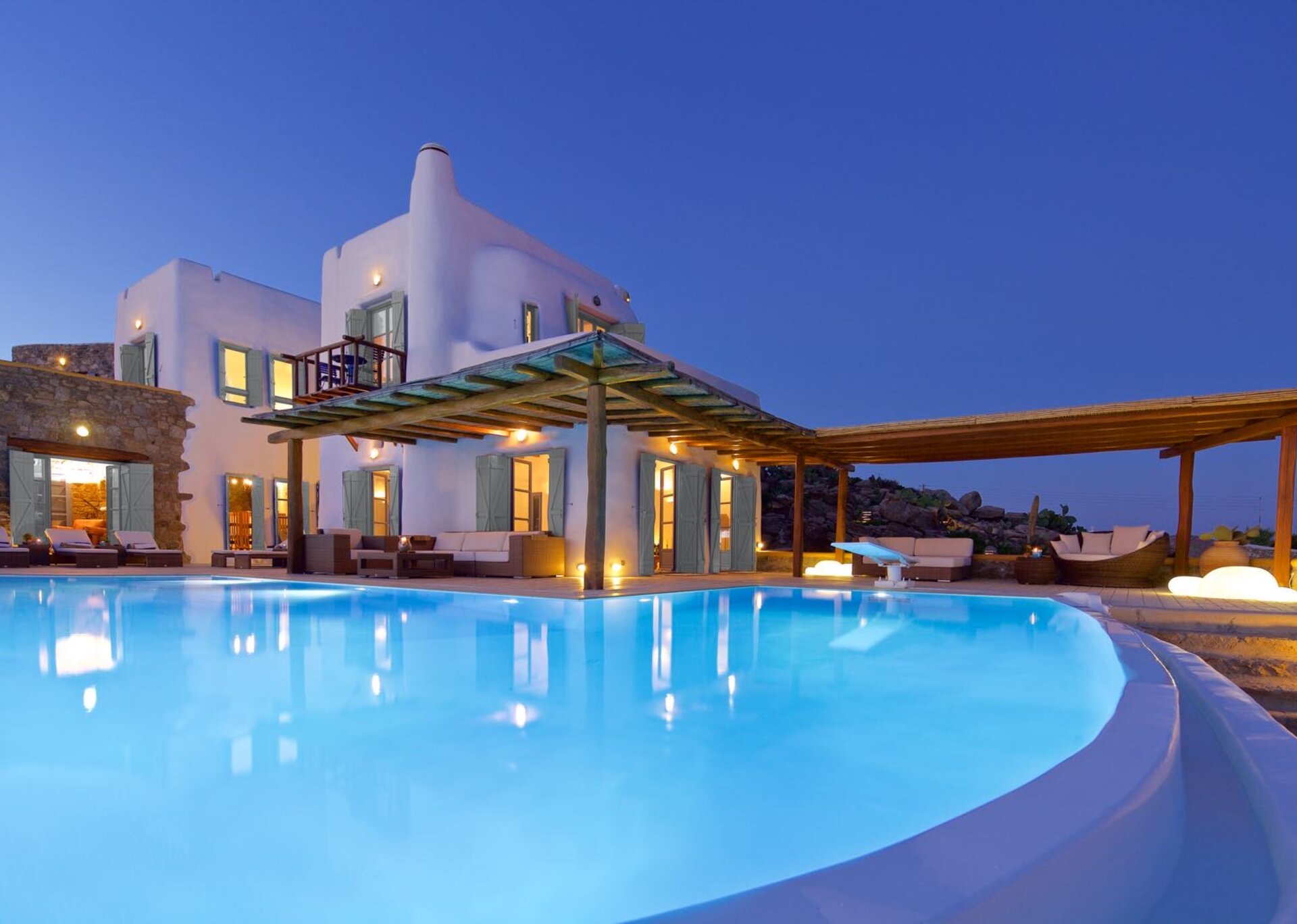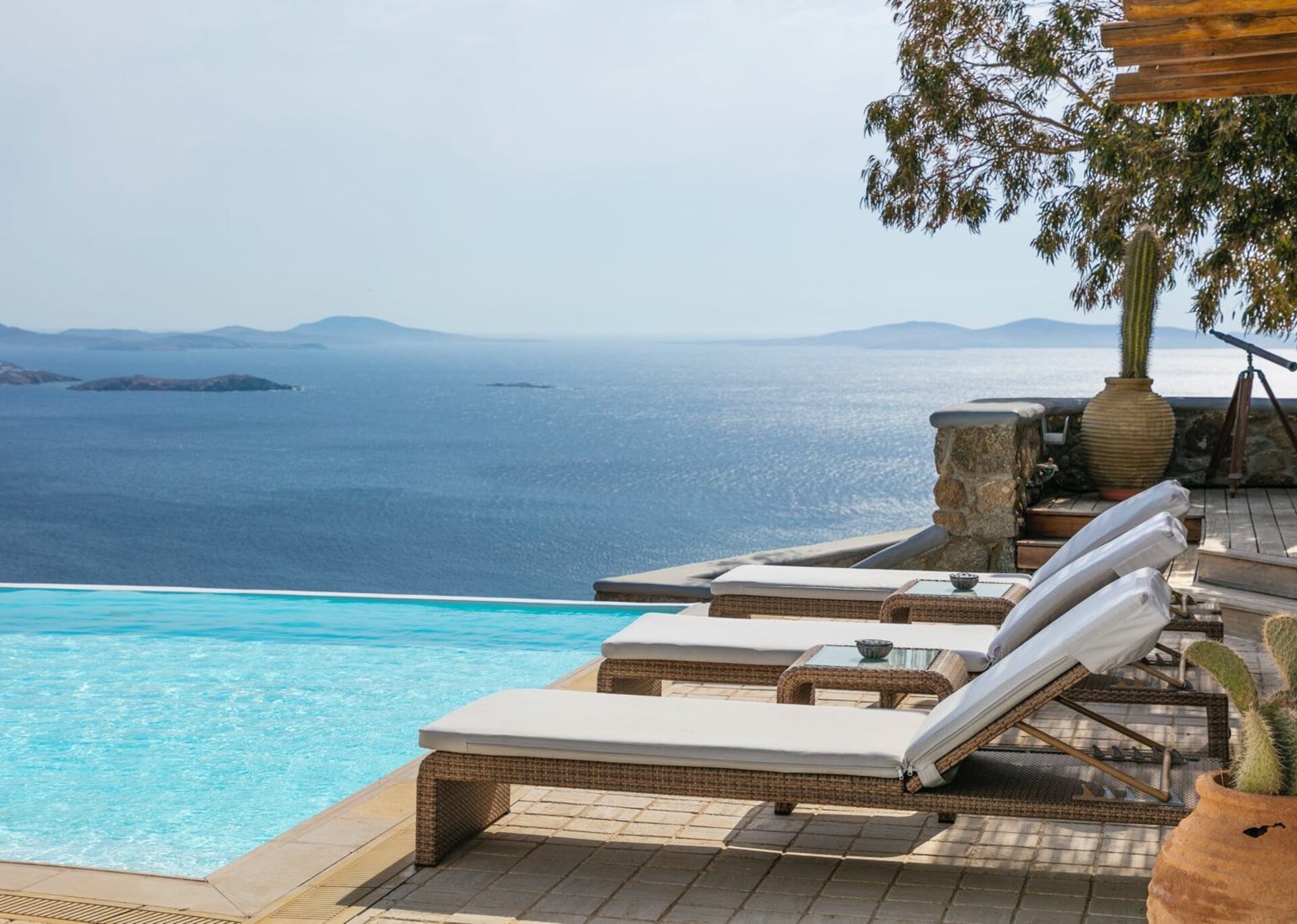 Nestled in the picturesque Tourlos area, Villa Elvia is an exquisite retreat with breathtaking views of the Aegean Sea. This exclusive 10-bedroom property showcases a delightful minimalistic style.