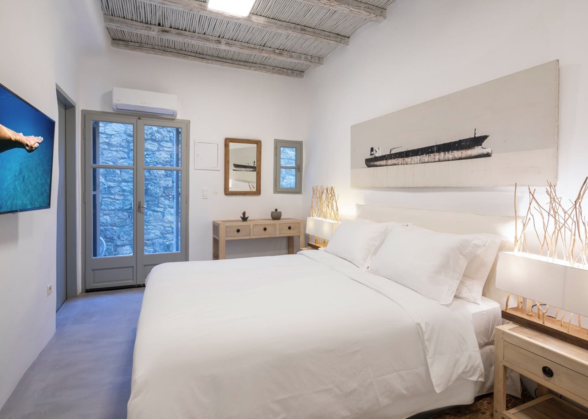 1 master bedroom with double bed, A/C, en-suite bathroom, ceiling fan, access to 2 private balconies, sunset and sea view