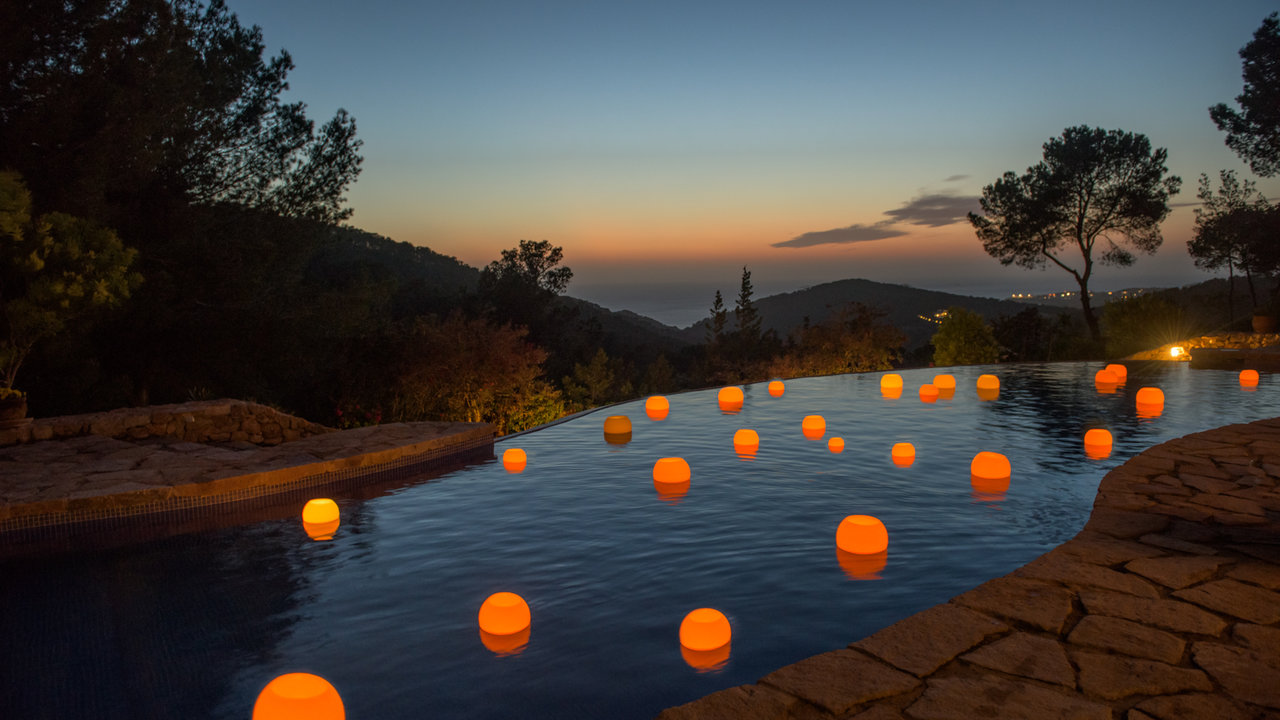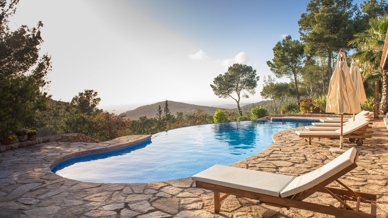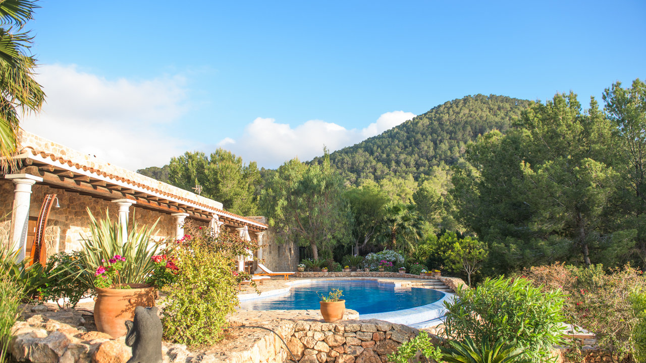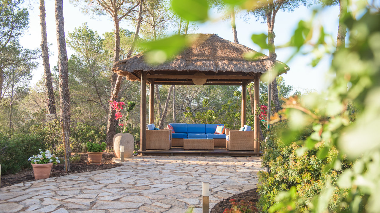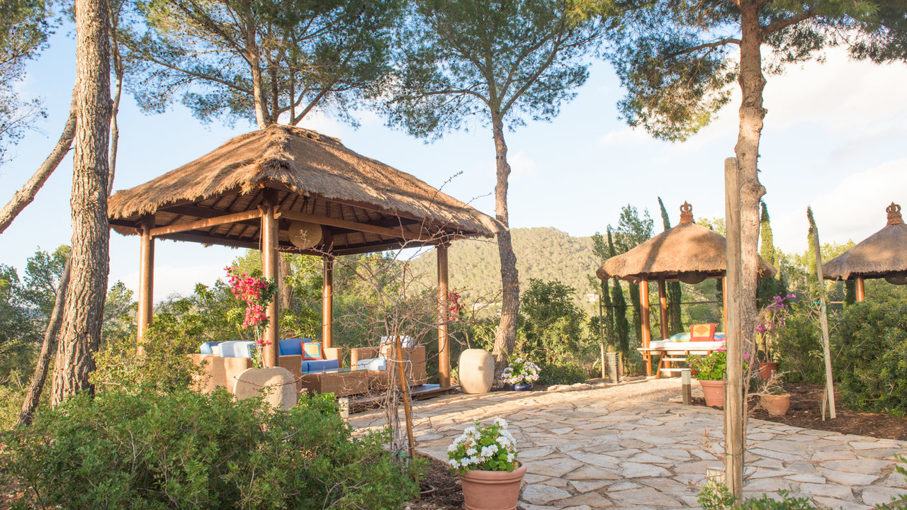Villa Emerald boasts a unique location just within the borders of Ibiza’s nature reserve, offering astonishing views of the majestic mountain landscape that surrounds it. The gorgeous property features charming outdoor gardens dotted with Bali-style gazebos lined around a large swimming pool.