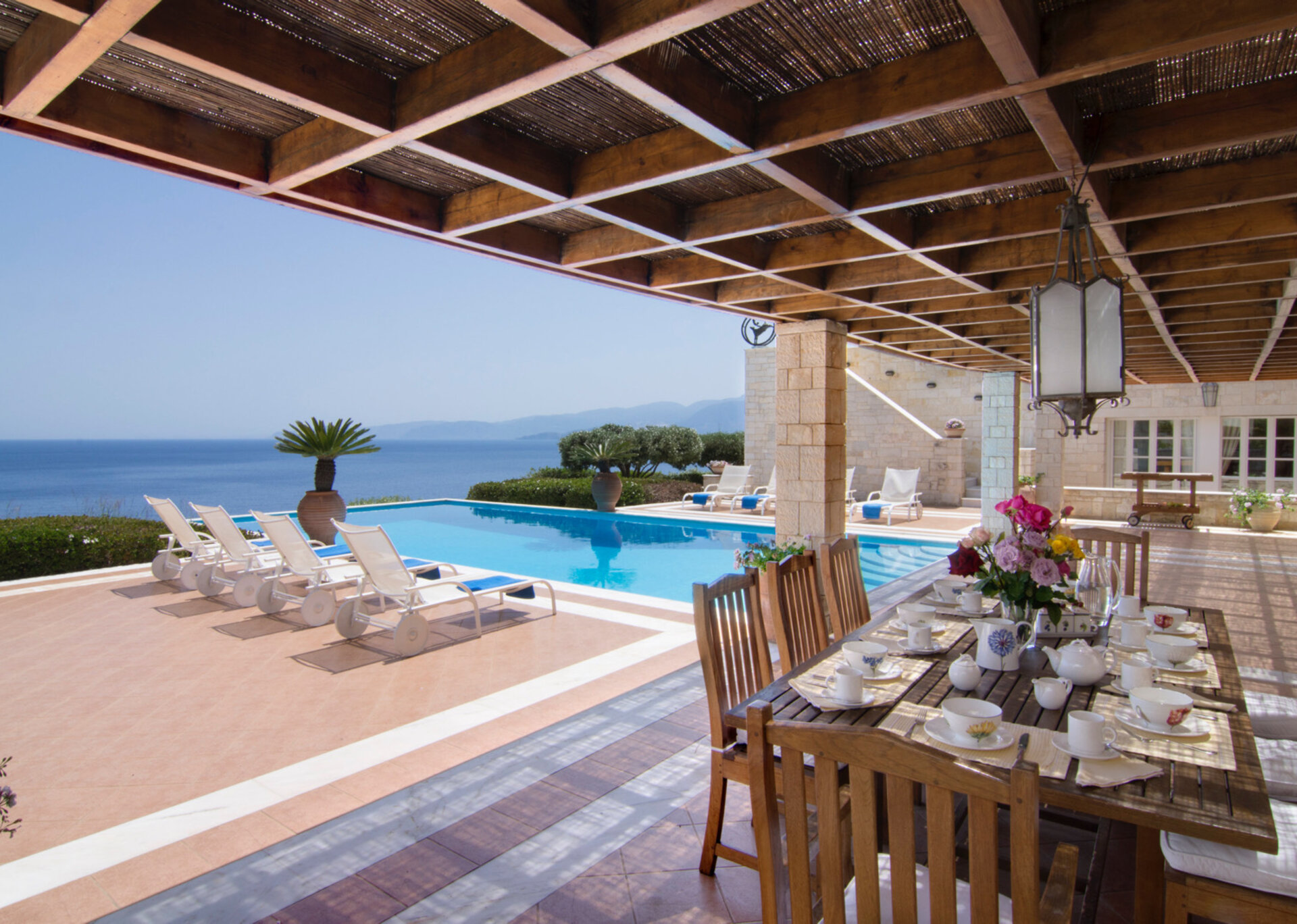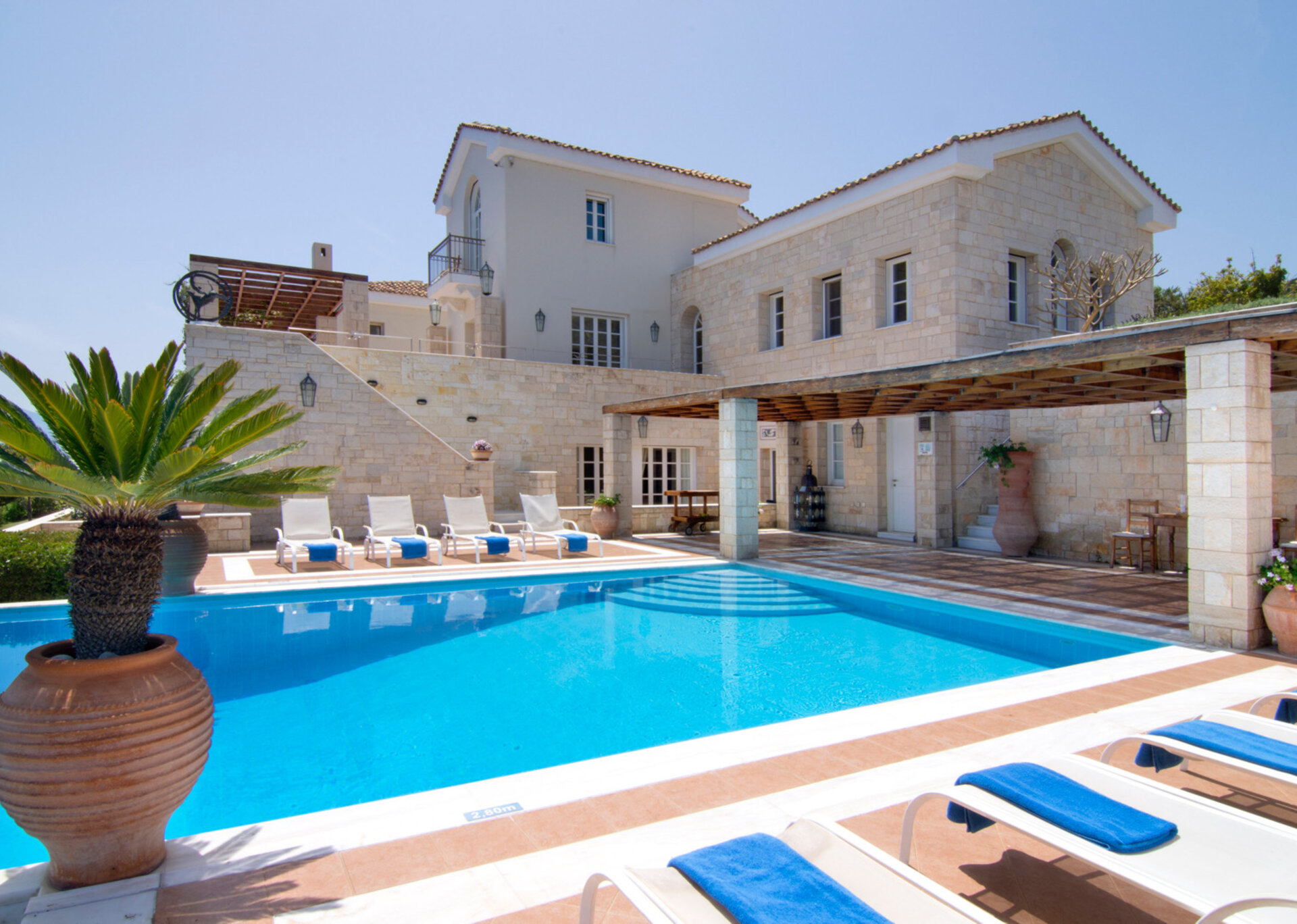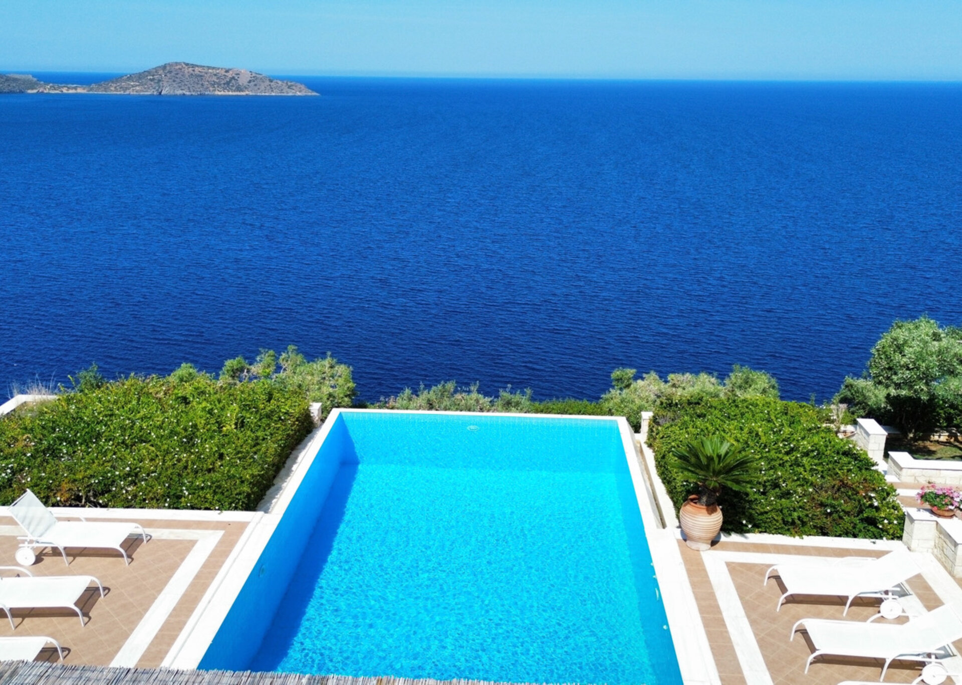 With its charming Greek decor, the villa features ample outdoor spaces for leisure, including a terrace for drinks, an infinity pool for relaxation, and breathtaking sea views. For water enthusiasts, the property offers private sea access from its sun deck, ideal for proficient swimmers.