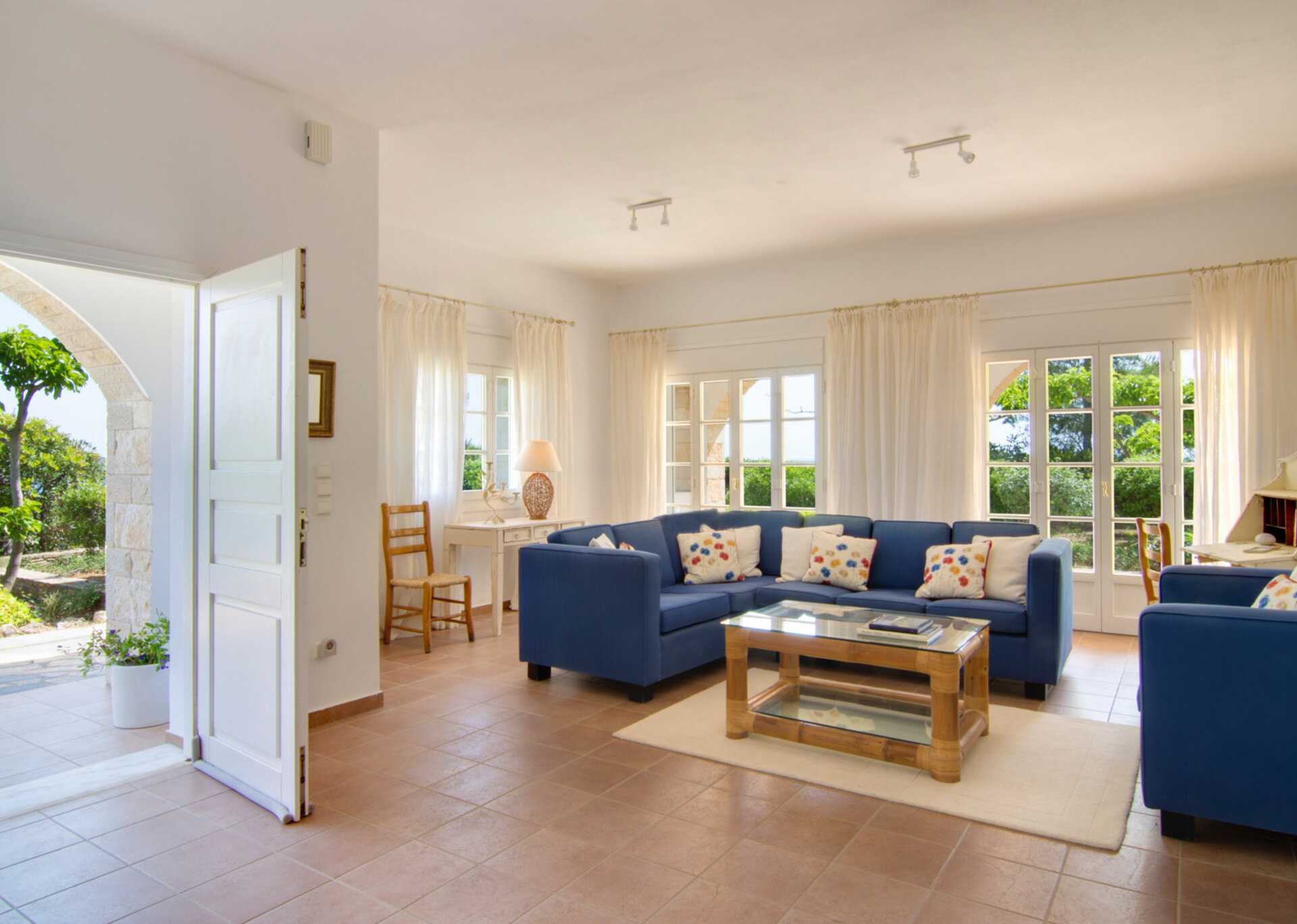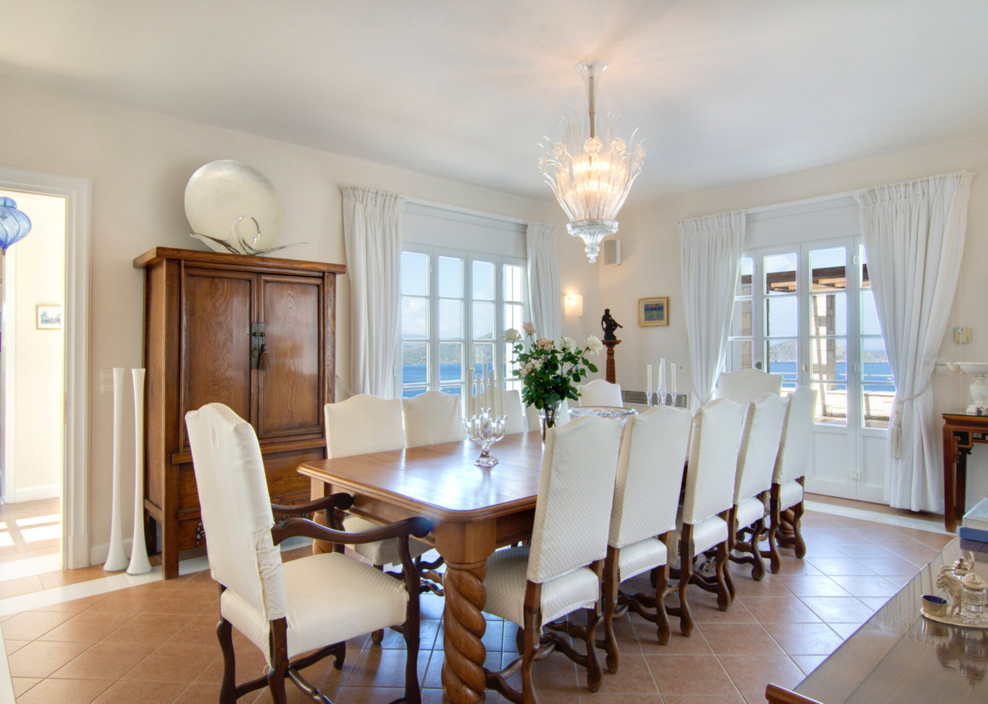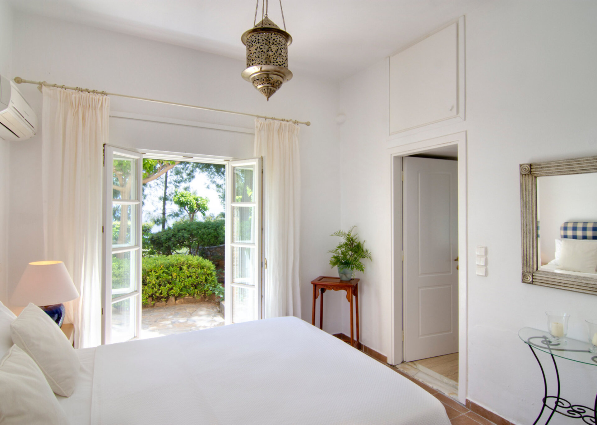 With its charming Greek decor, the villa features ample outdoor spaces for leisure, including a terrace for drinks, an infinity pool for relaxation, and breathtaking sea views. For water enthusiasts, the property offers private sea access from its sun deck, ideal for proficient swimmers.