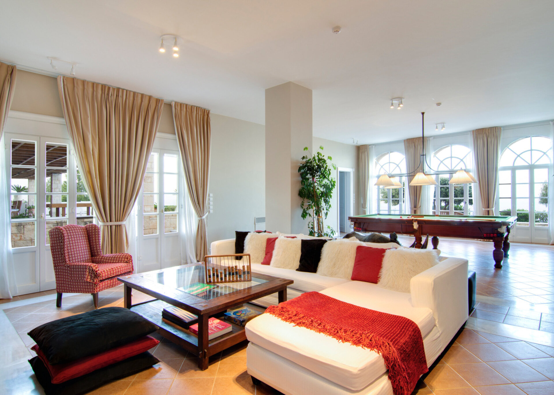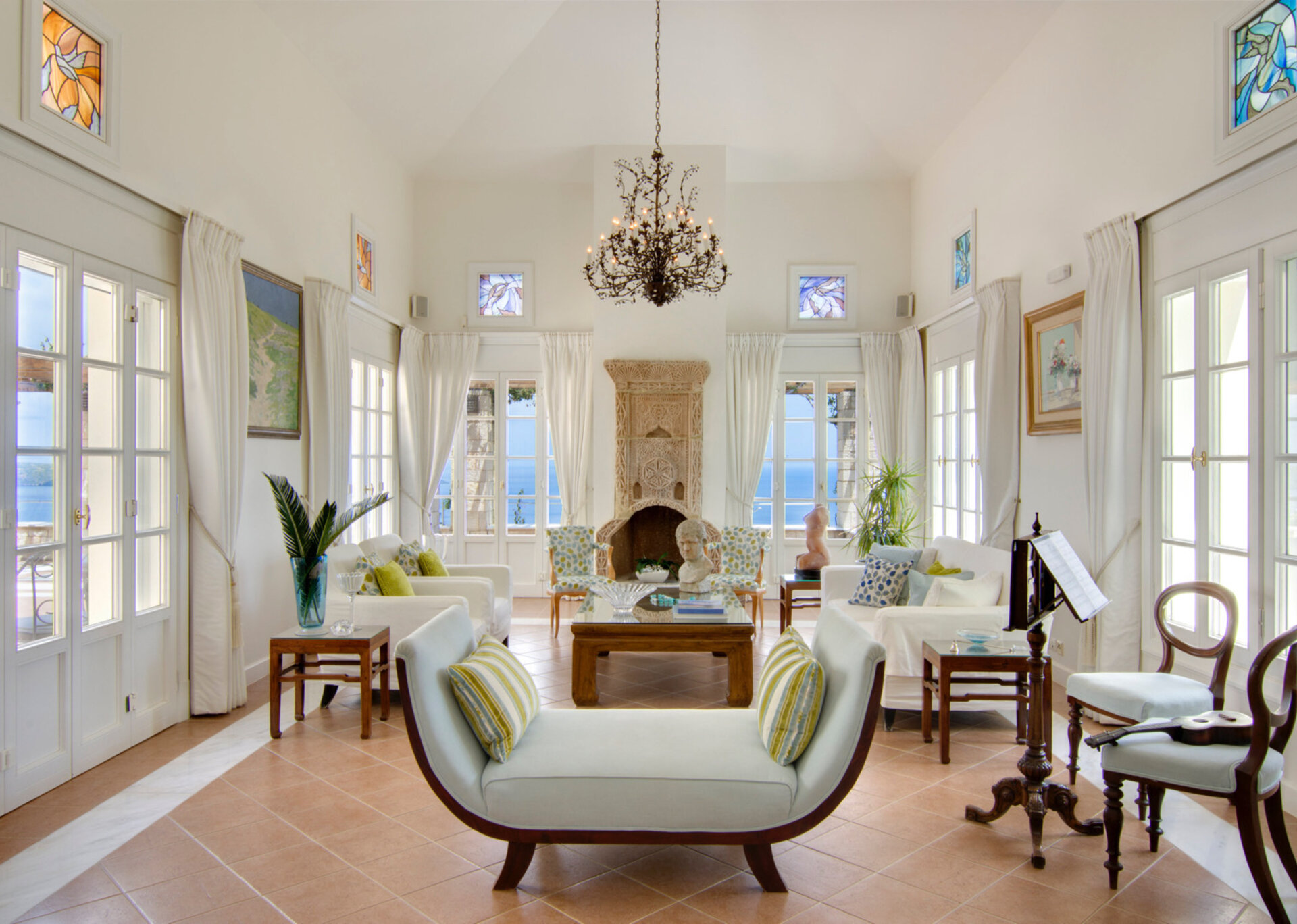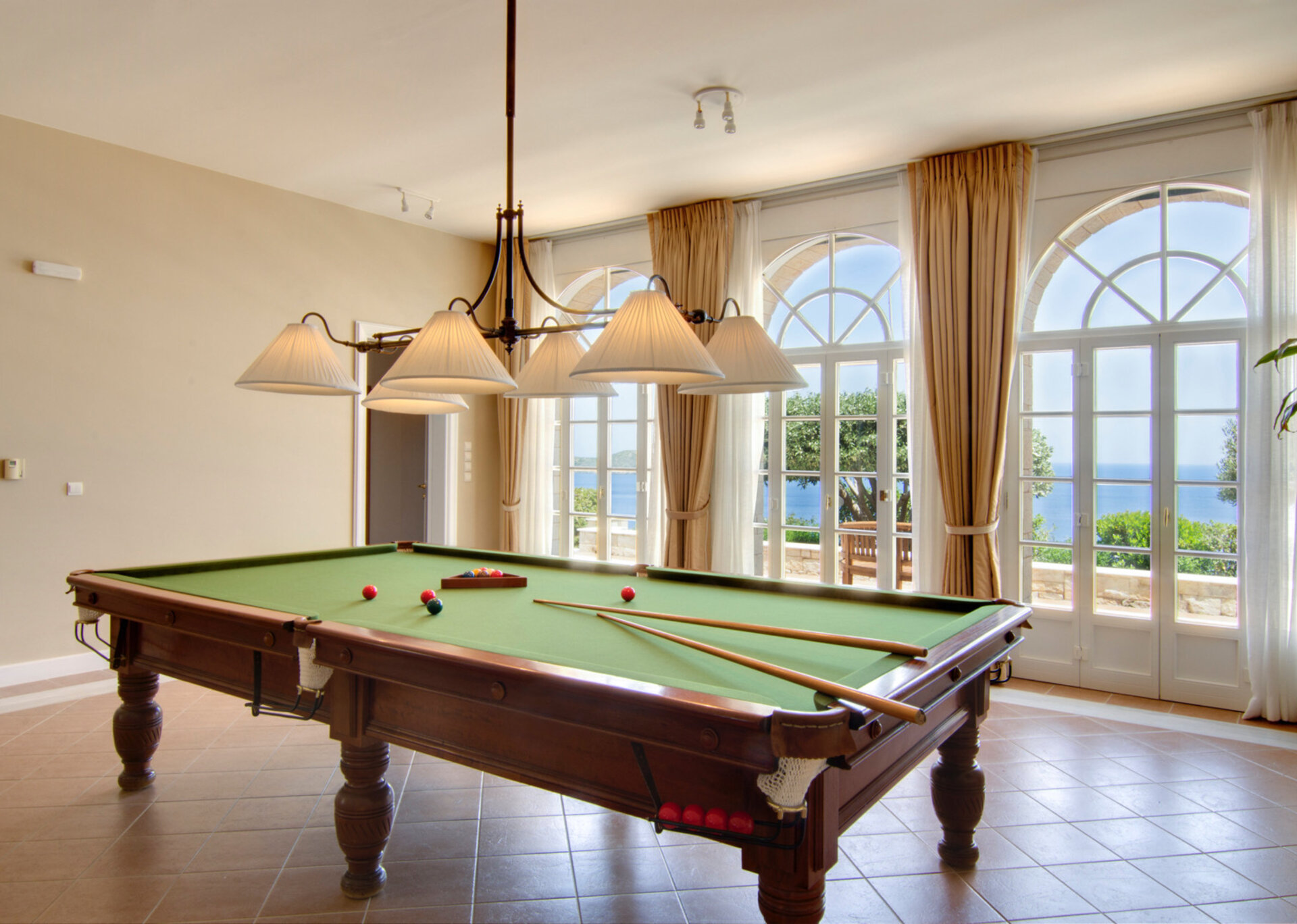Indoors, the villa exudes luxury with its ancient fireplaces, lofty ceilings, and captivating vistas. Guests can unwind in the TV and games room or find solace in the library and study, complete with a grand piano for music enthusiasts.