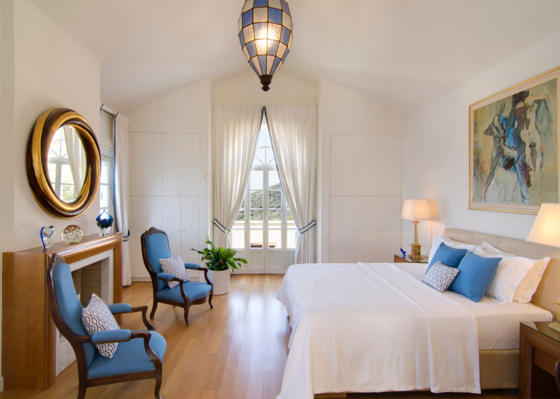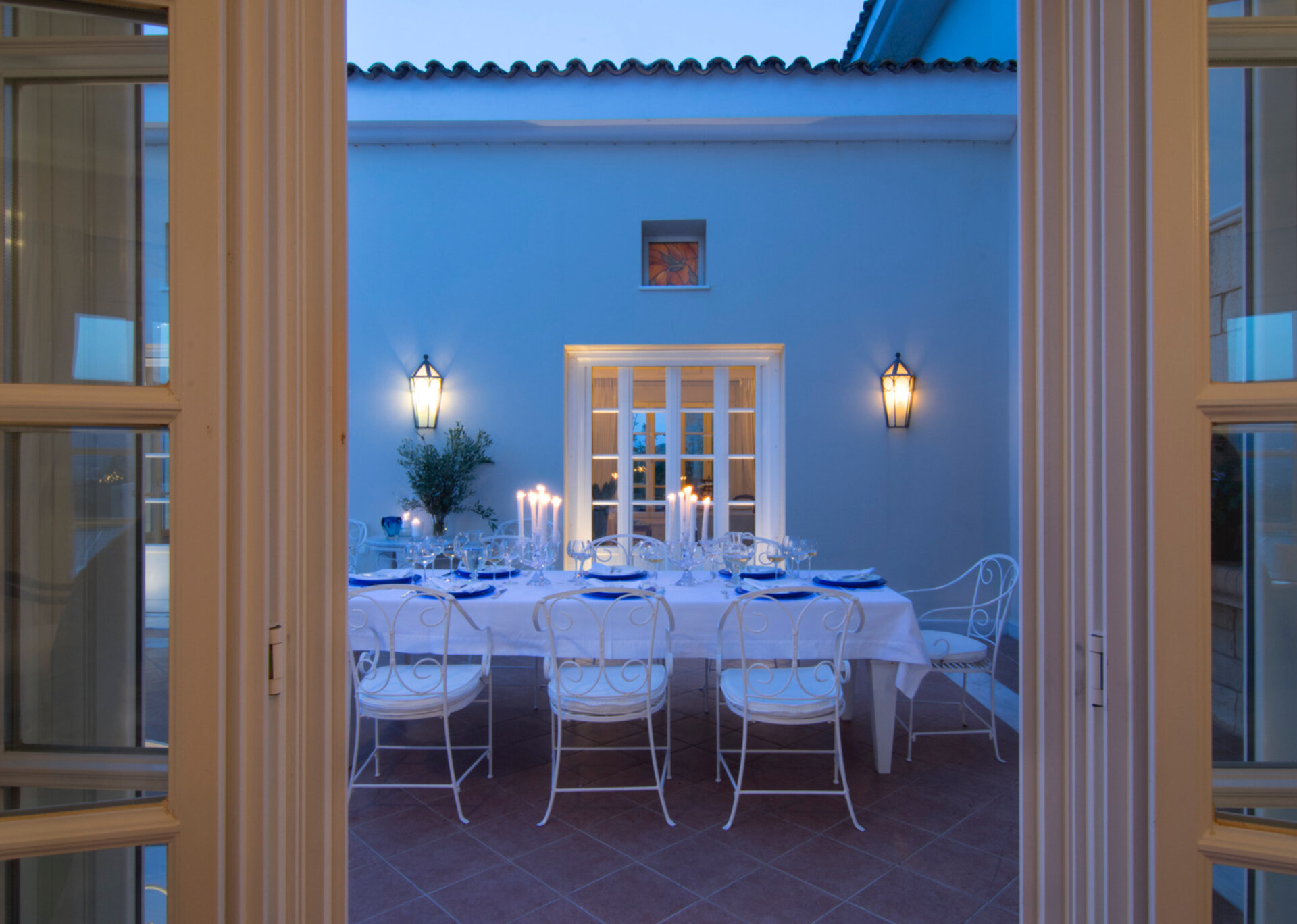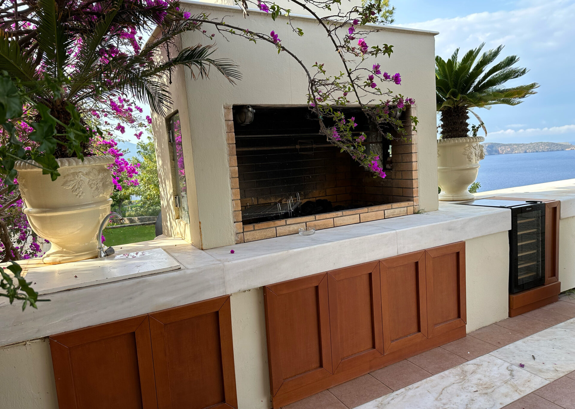 Adding to its allure, Villa Emma includes a tennis court suitable for Davis Cup matches, with options for private coaching. The expansive grounds showcase olive groves, a historic Roman tank, and a quaint Greek Orthodox Chapel with panoramic sea views, perfect for hosting an authentic Greek wedding. Additionally, guests can enjoy al fresco dining at the barbecue area while basking in the evening sun.