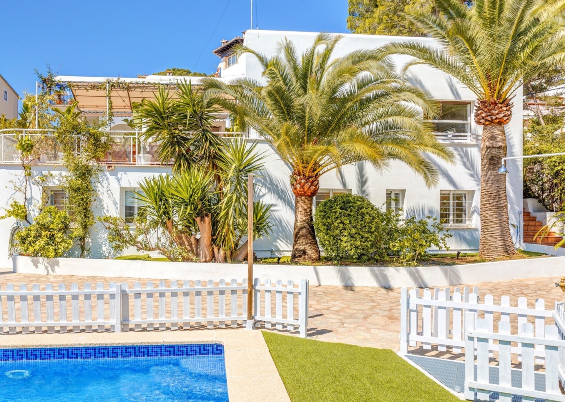Villa "Enigma" is a charming two-storey detached house nestled in a prestigious area of Palma. It offers an idyllic retreat for families seeking a unique holiday experience away from the hustle and bustle of daily life. Built in the 1930s, this historic house showcases a distinctive architectural style that beautifully contrasts with its modern interior.