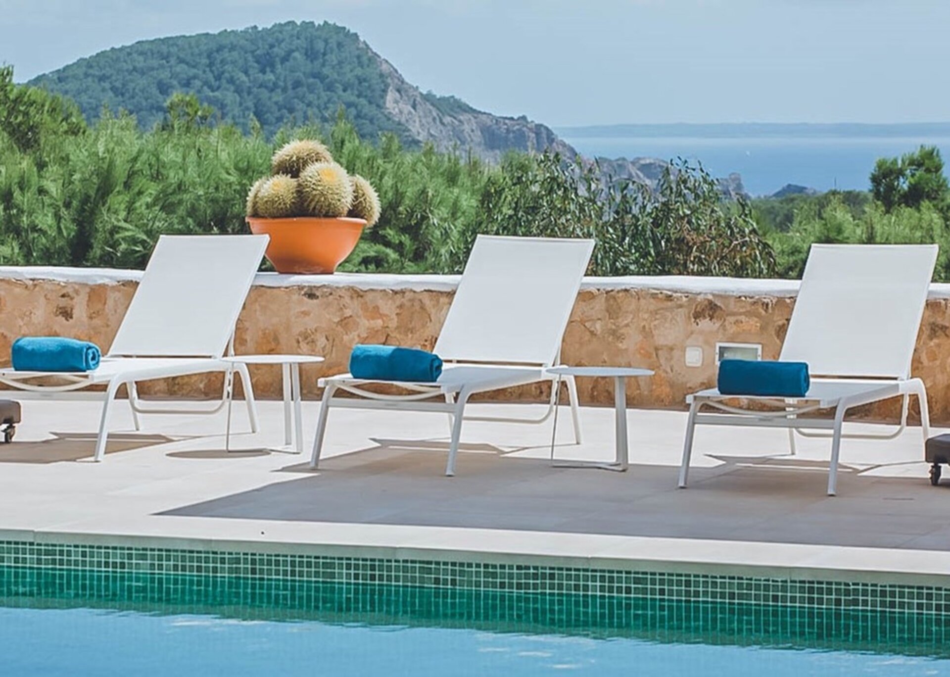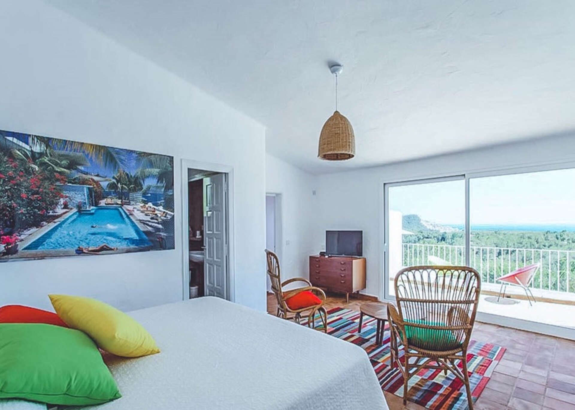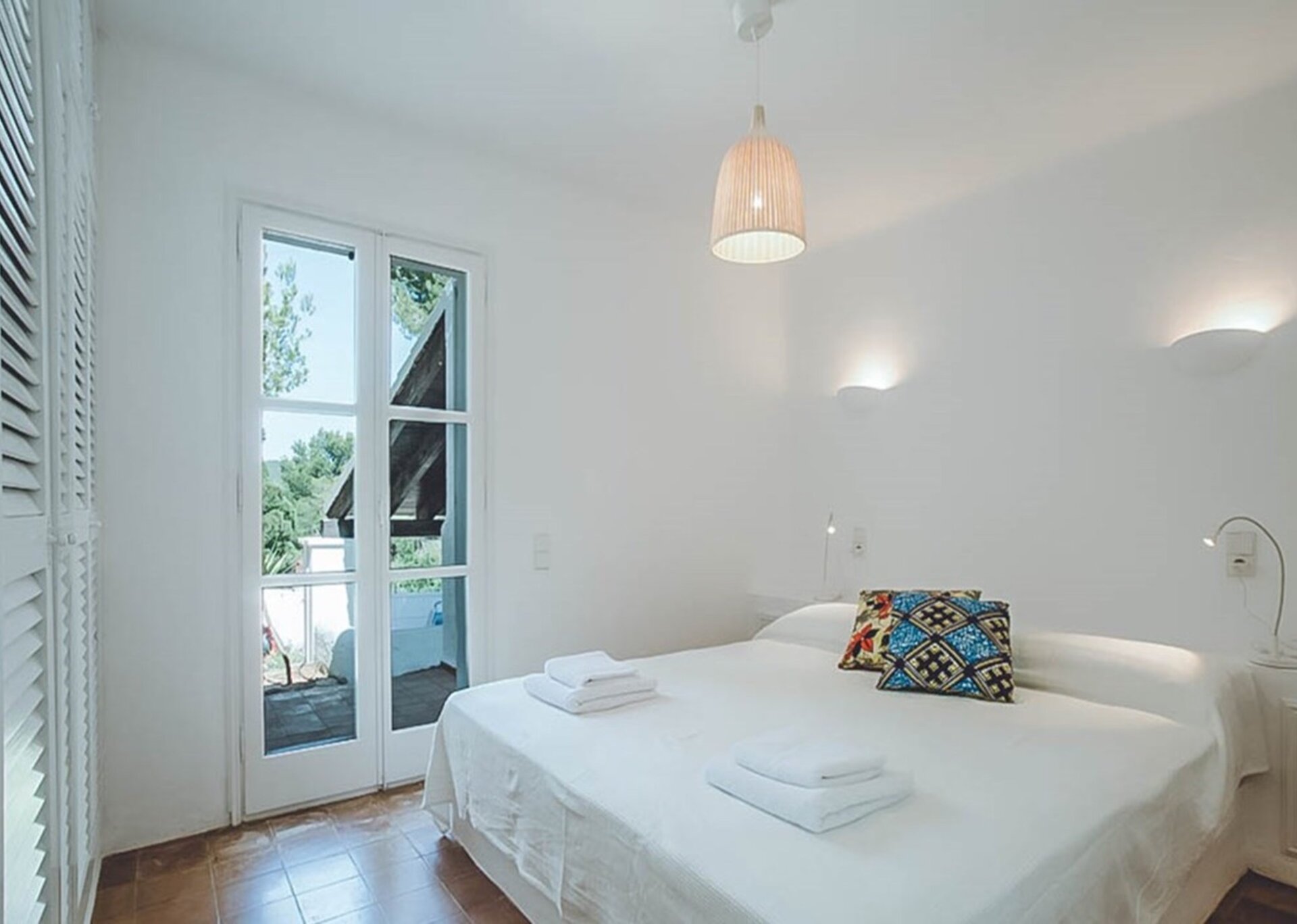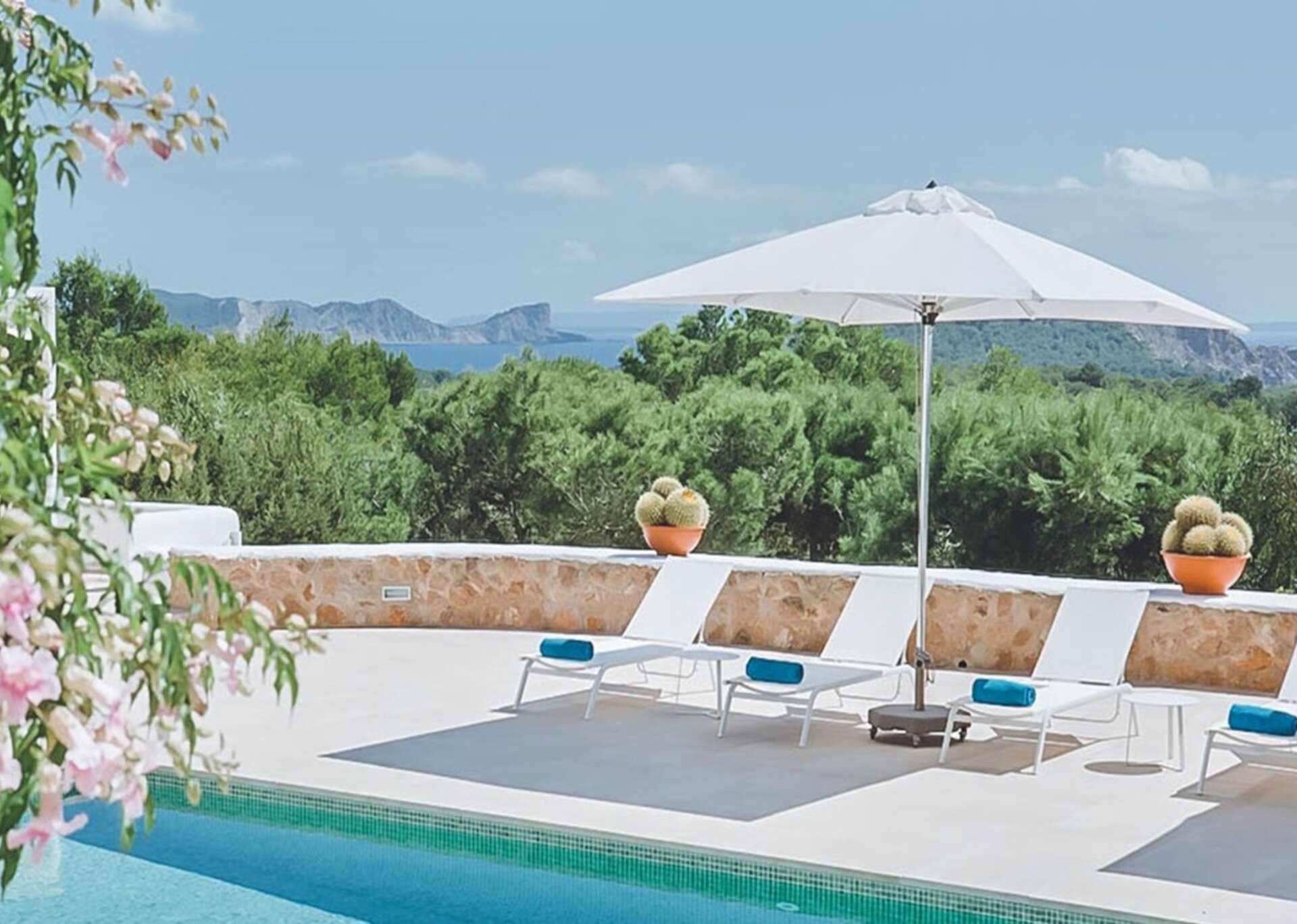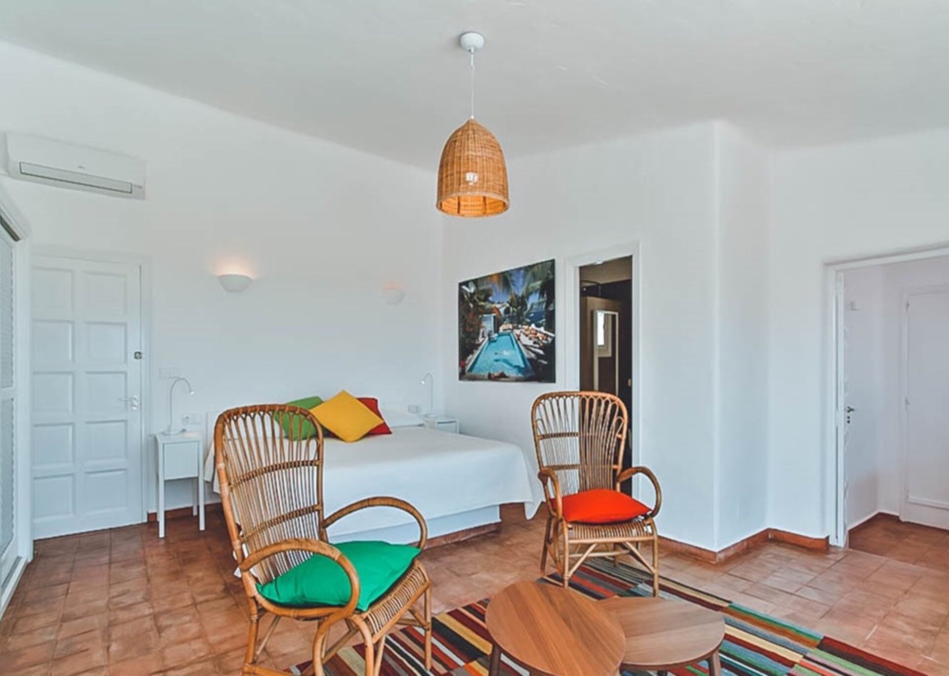 The two master suites of this villa are generous and versatile. Private terraces allow guests to truly enjoy the sea views and soak up the Ibizan sun in extra privacy. Additionally, one of the bedrooms has its own kitchenette and ensuite bathroom. Each bedroom has been thoughtfully styled, in keeping with the theme of the main house.