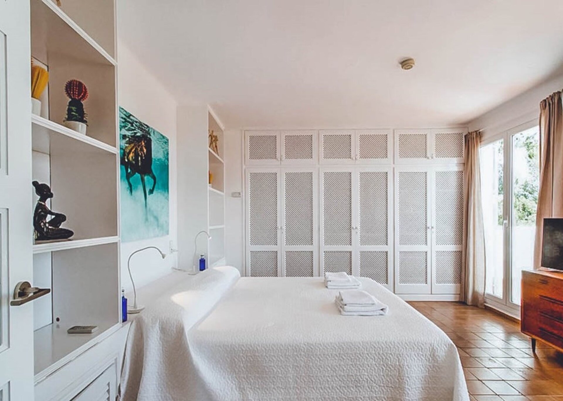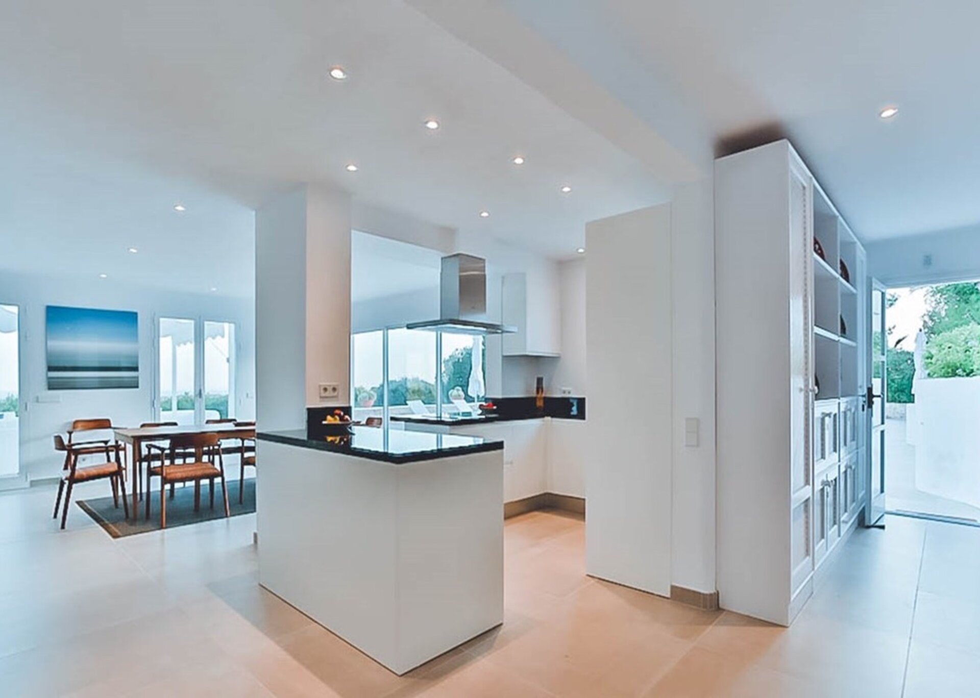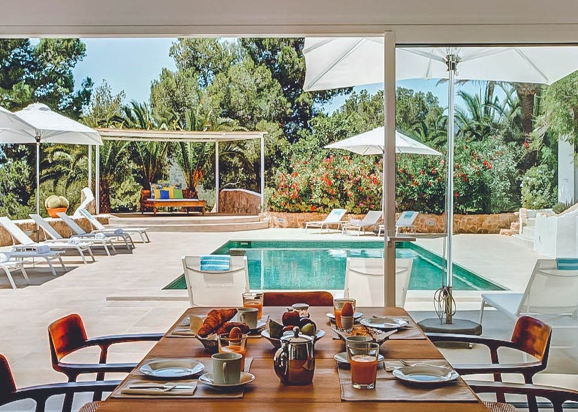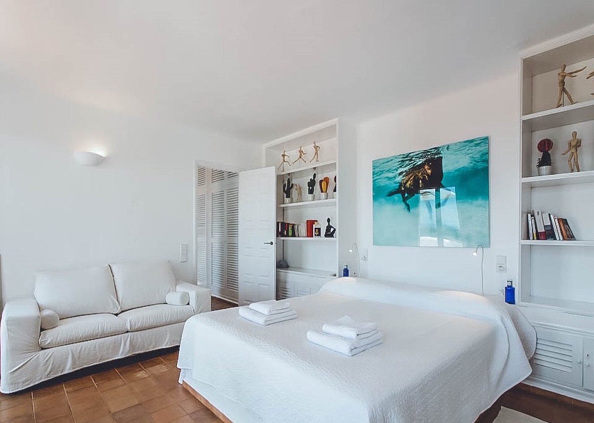 Villa Escudero has recently been renovated and never fails to impress with its unique range of Mid-Century vintage furniture and large ocean-themed photography prints decorating the whitewashed walls. Extensive glazing invites an excellent quality of natural light at all times during the day. The house has a large open-plan lounge, dining room and fully equipped kitchen. Sensitive partitions and careful orientation, positions Villa Esther to cleverly invite guests to enjoy shimmering sea views and communicate with the coastal vernacular.