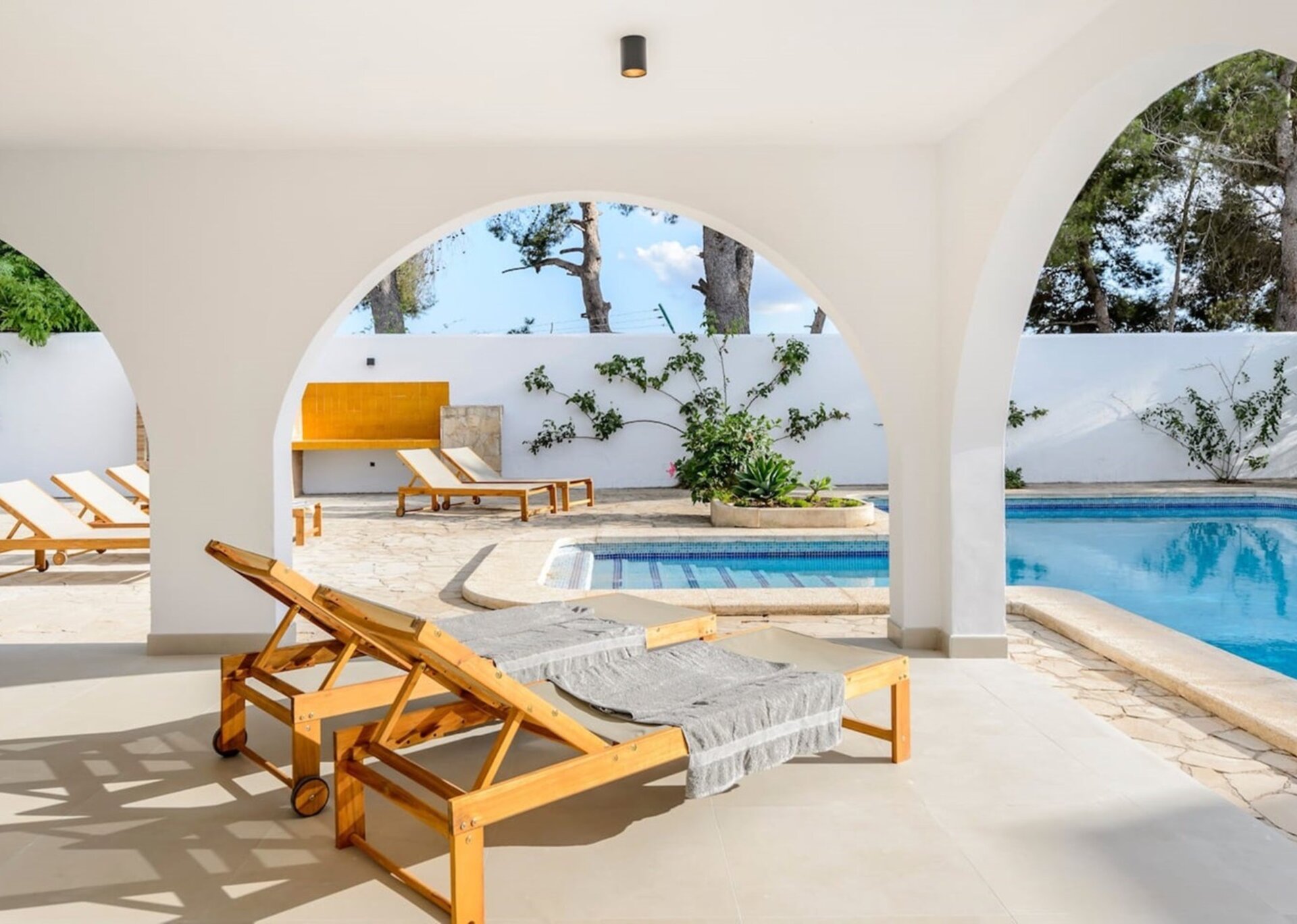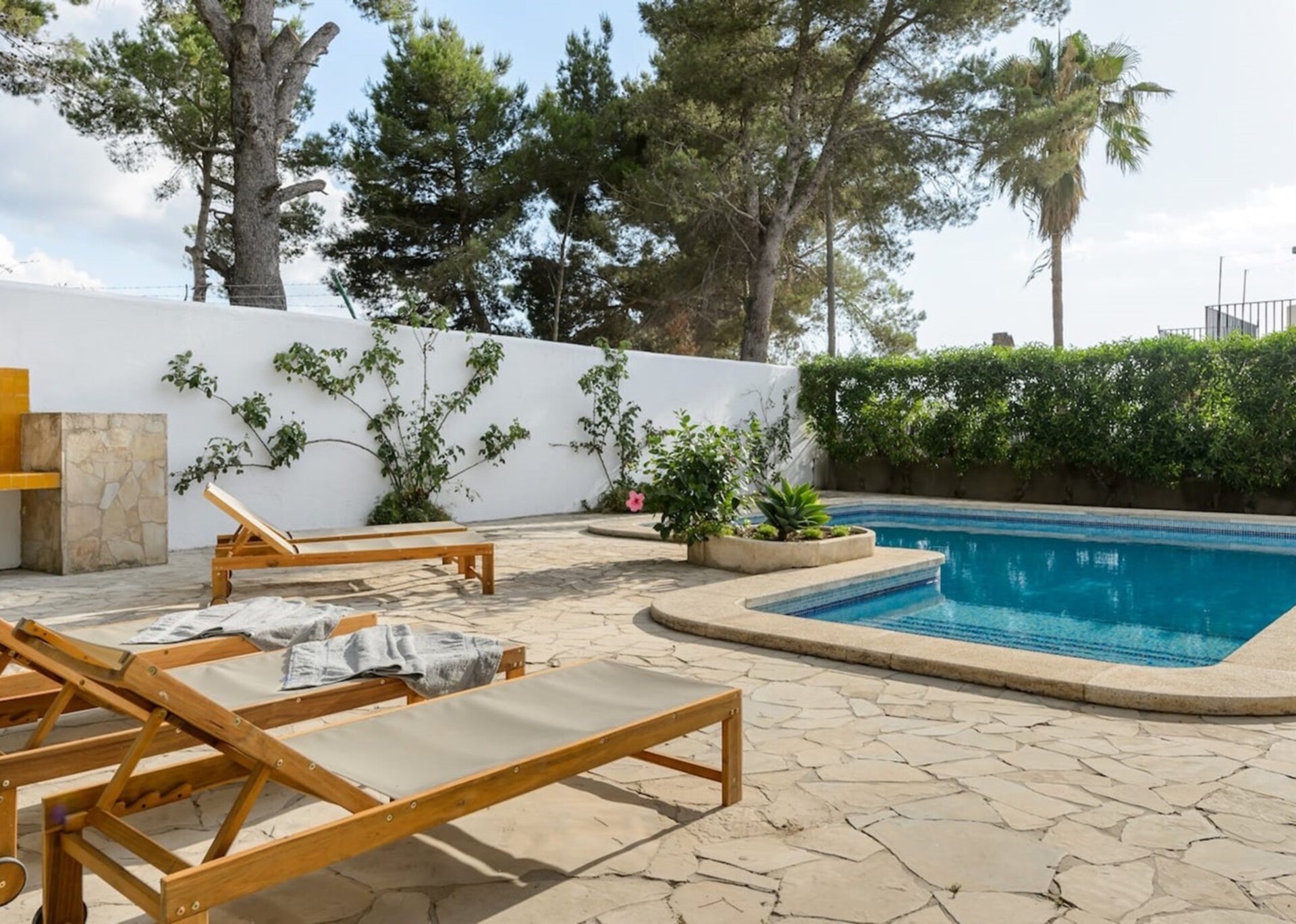 Occupying a serene hillside location, this family home assures privacy throughout your stay. Its central positioning between San Rafael and San Antonio in the countryside makes it an ideal base for exploring the entire island. Just a short 10-15 minute drive away, the stunning sunset beaches of the West beckon, while charming Ibizan towns like Santa Gertrudis and Santa Agnes await with their delightful tapas and evening meals.