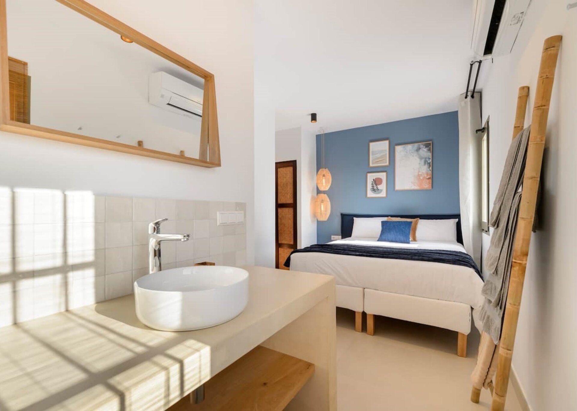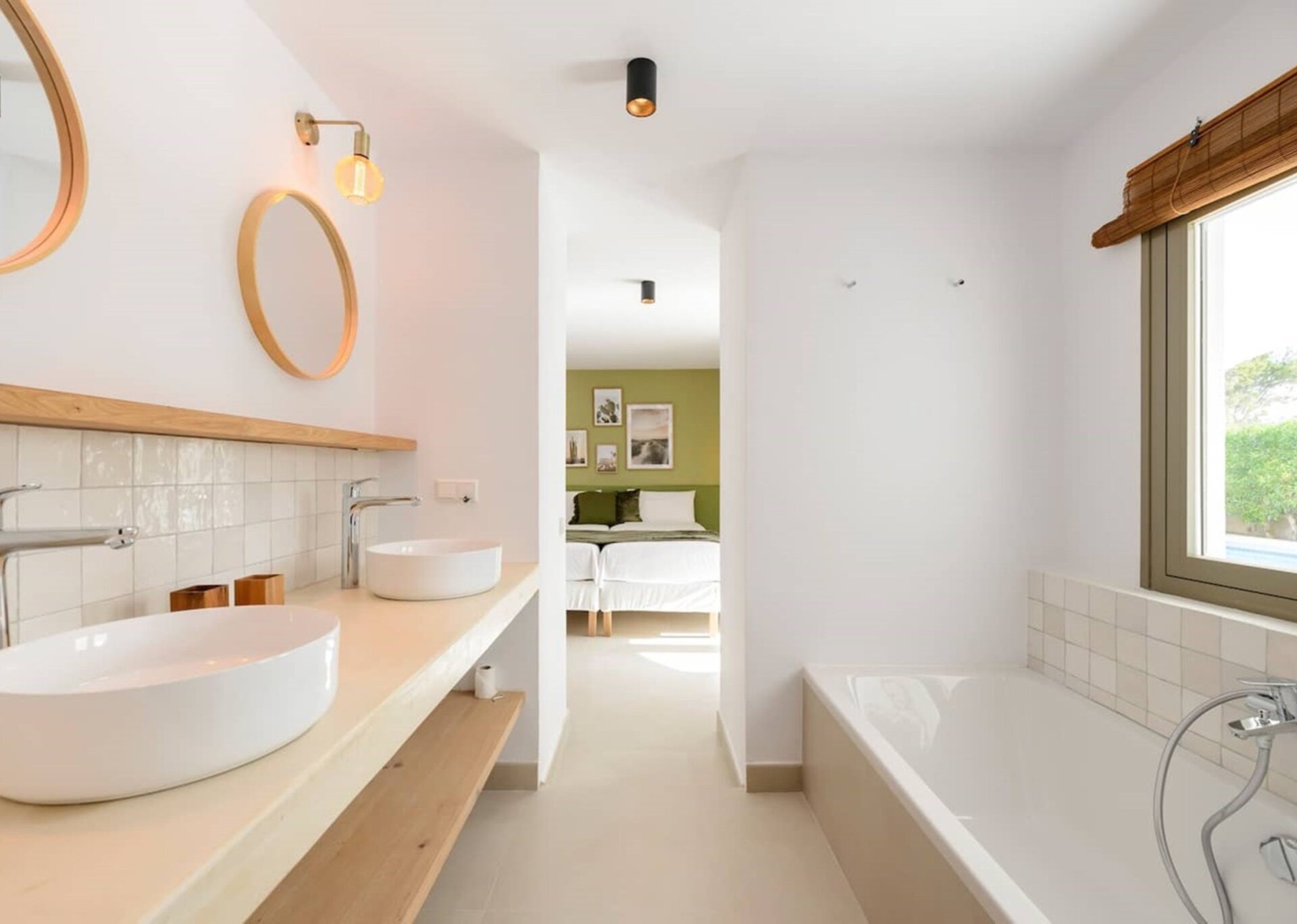 Villa Etheria stands as a pioneering achievement in Ibiza, being the first carbon-neutral house on the island. Recently renovated in 2022, this remarkable villa offers the ultimate sanctuary to unwind and bask in the radiance of the Mediterranean sun. With its eco-friendly features and cutting-edge technology, Villa Hebe is almost self-sustained, harnessing 80% of its energy from solar panels. To further offset any additional CO2 emissions from the grid, the owner actively participates in a non-profit tree planting program.