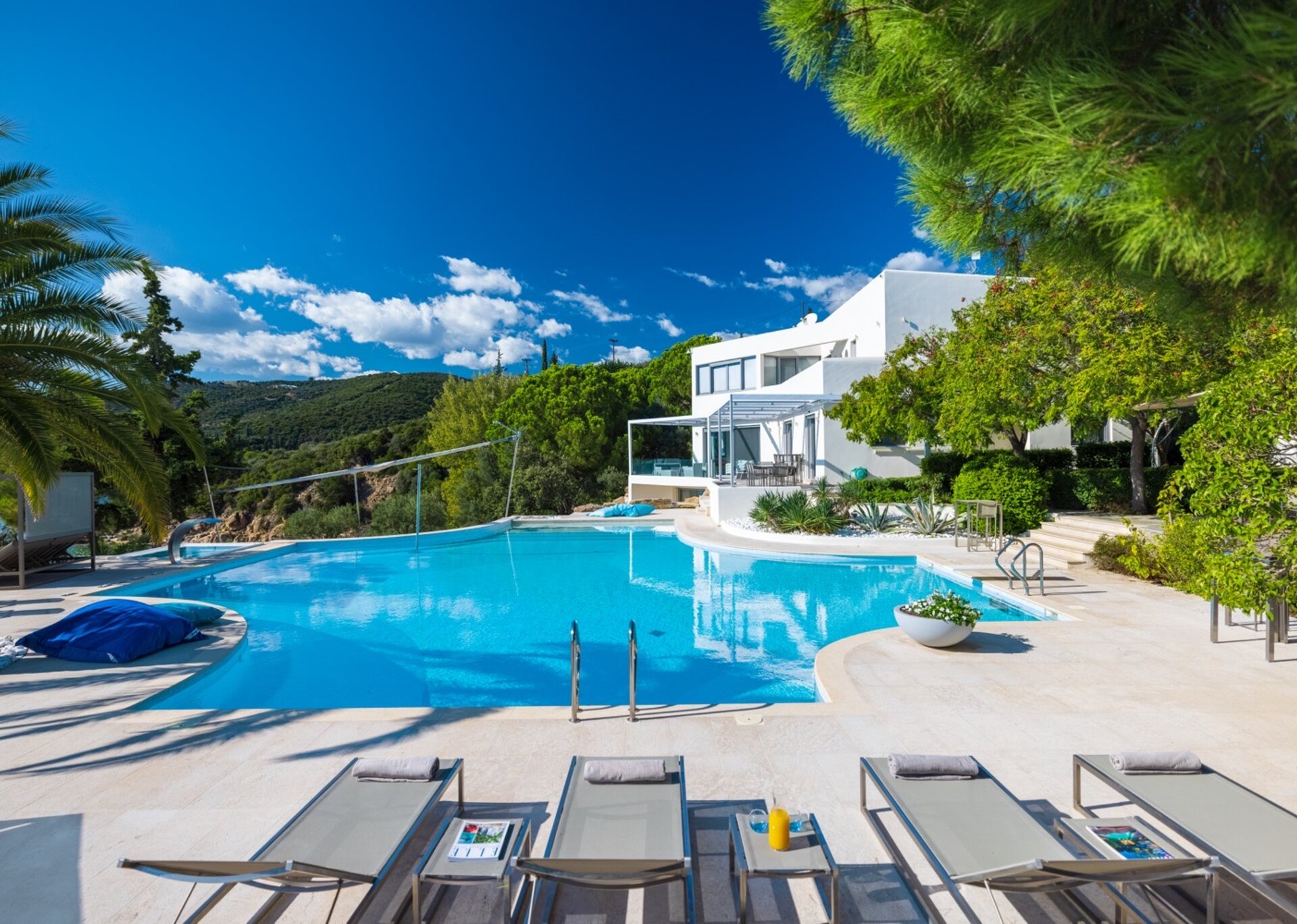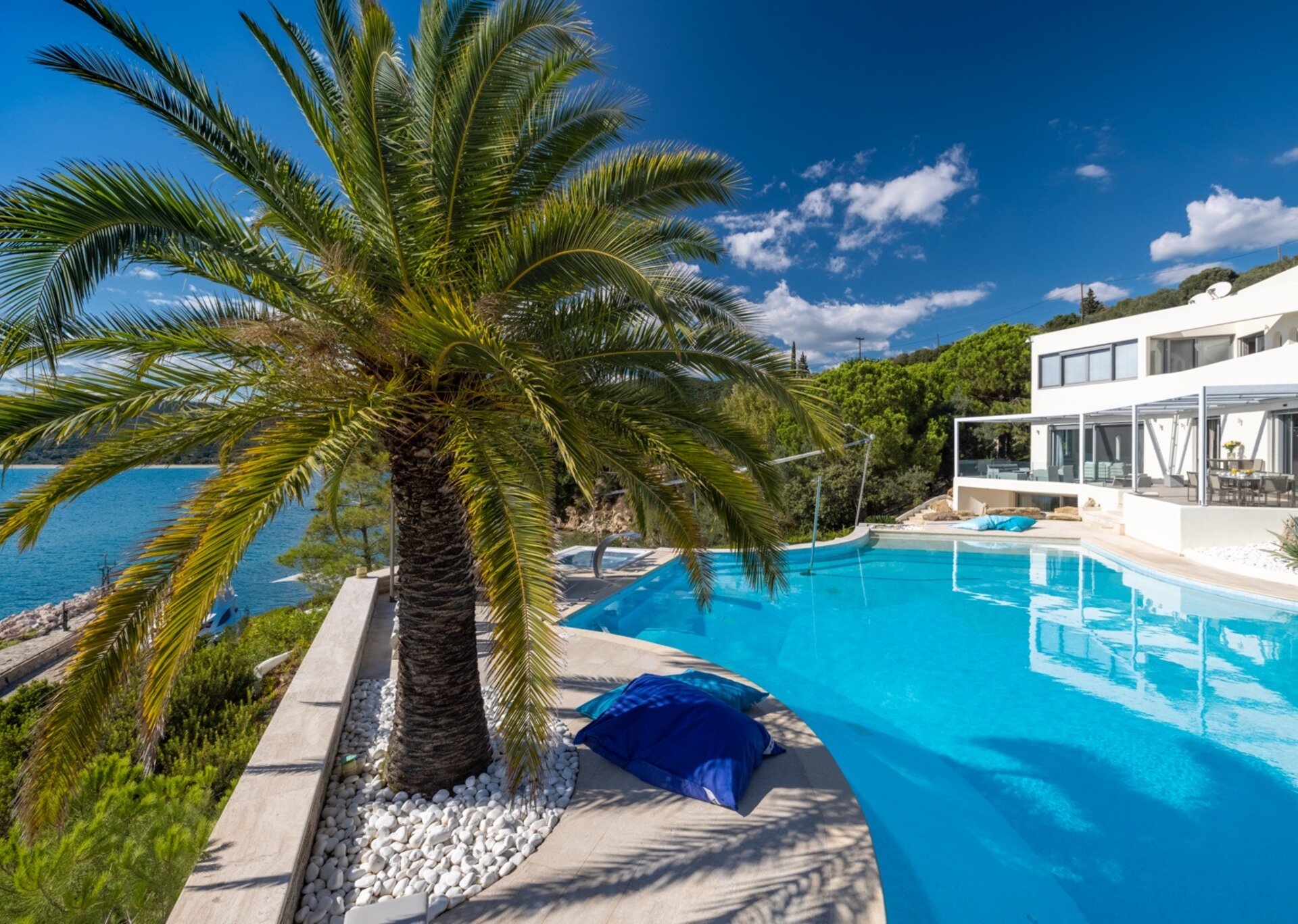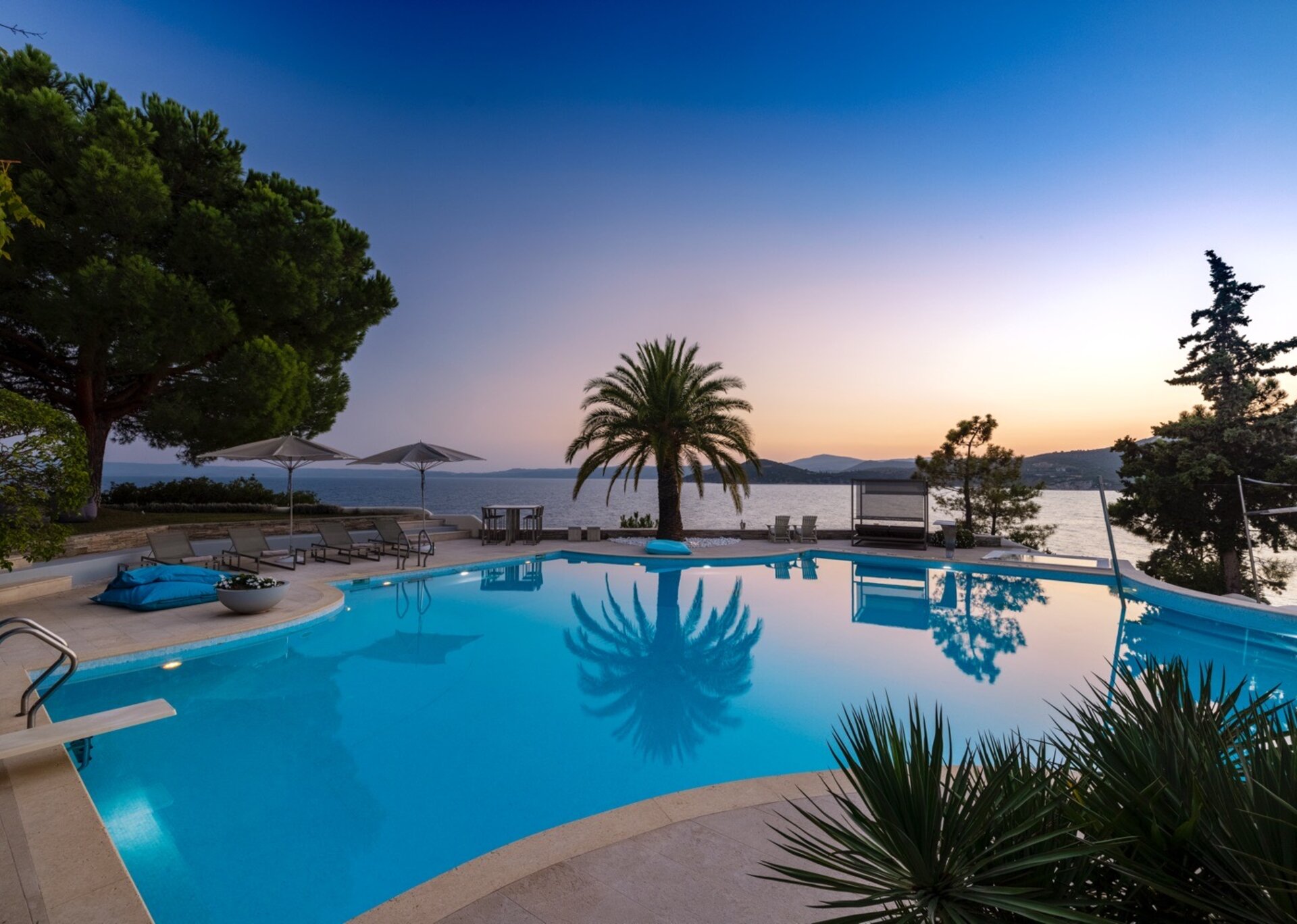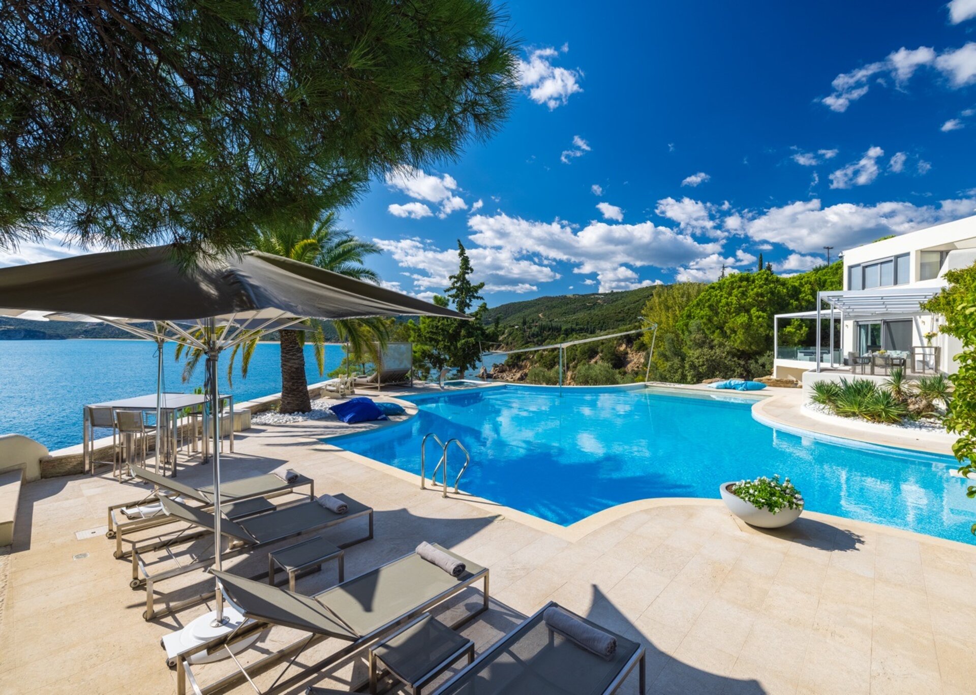 Villa Etienne is an oceanfront estate in Pyrgadikia in Chalkidiki. Etienne offers astonishing sea views and a wonderful soothing ambience of serenity. Outside the property there are several lounging and dining spots, ideal for family gatherings and a large private swimming pool to relax and gaze the sunset vista. Furthermore, the exterior terraces include a BBQ spot near the swimming pool.
