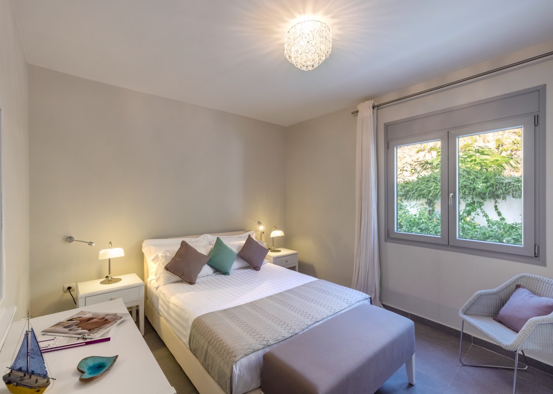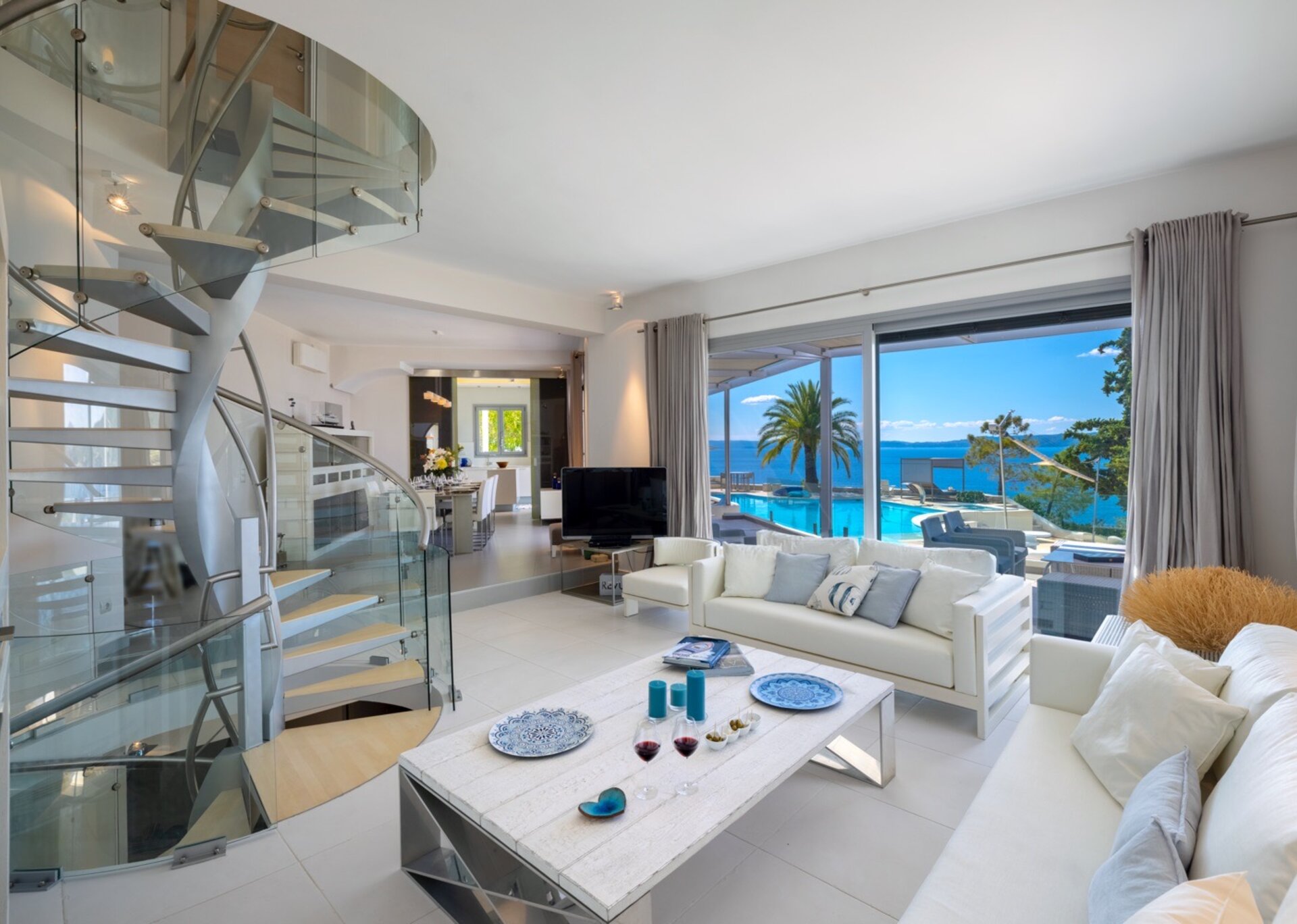 Inside the villa, the decoration is luxurious and the mood is sumptuous. The living room is cozy and comfortable and there is also a spectacular inside dining area to enjoy a meal and a glass of wine with your guests.