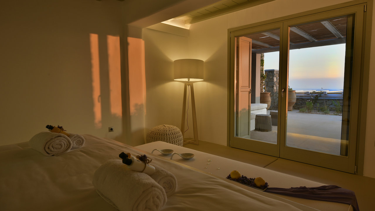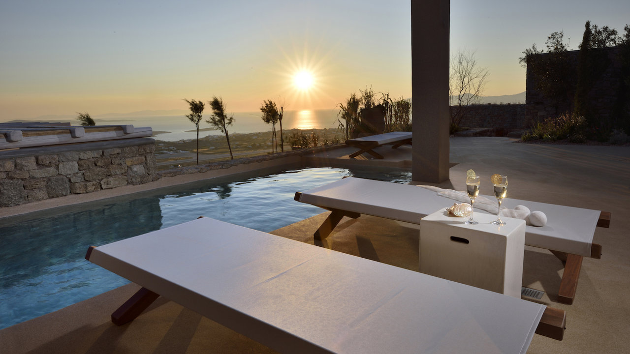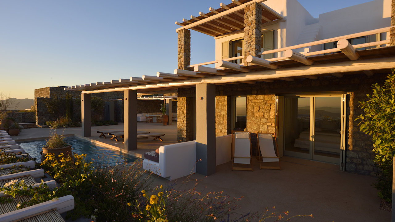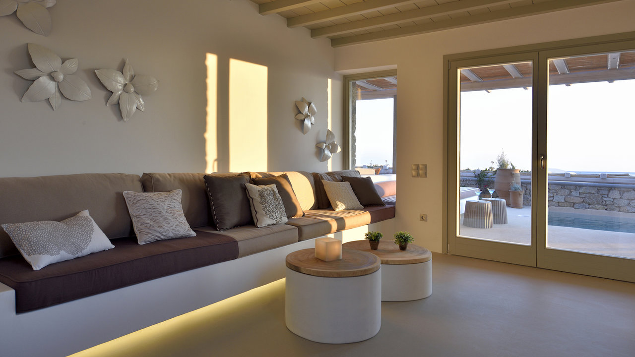 The villa has its own private pool with Jacuzzi (30sqm), magnificent outdoor dining and sitting areas that spread over the 170sqm. The marvelous plantations match perfectly the scenery of Kounoupas hill and provide the isolation needed from other guests in the complex.