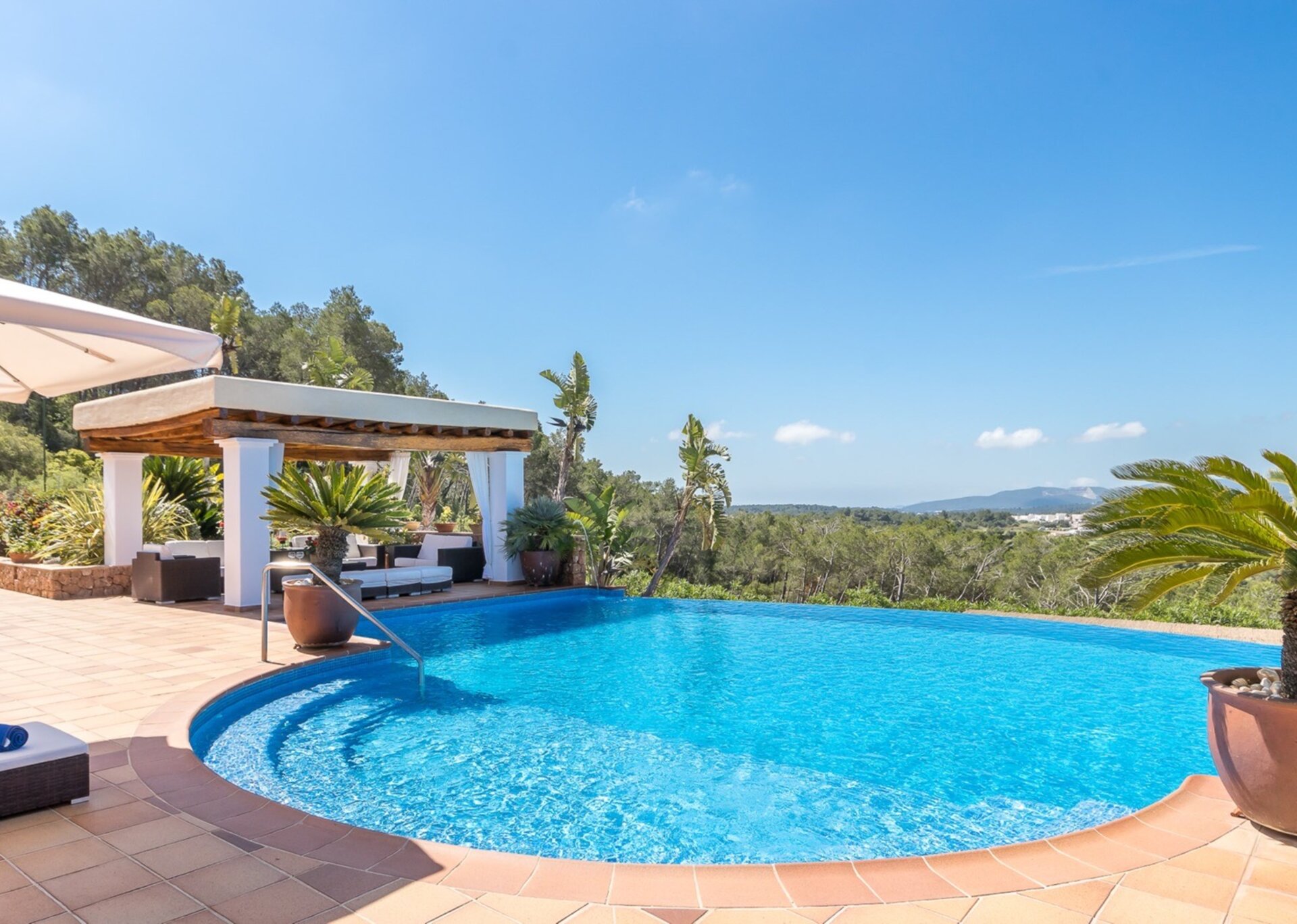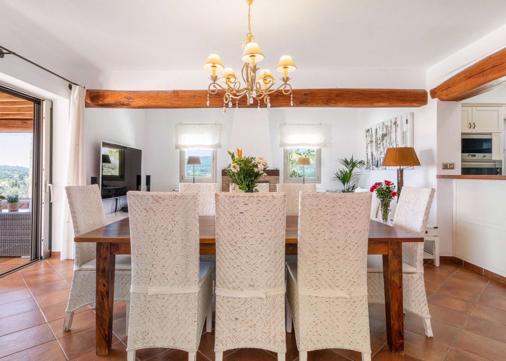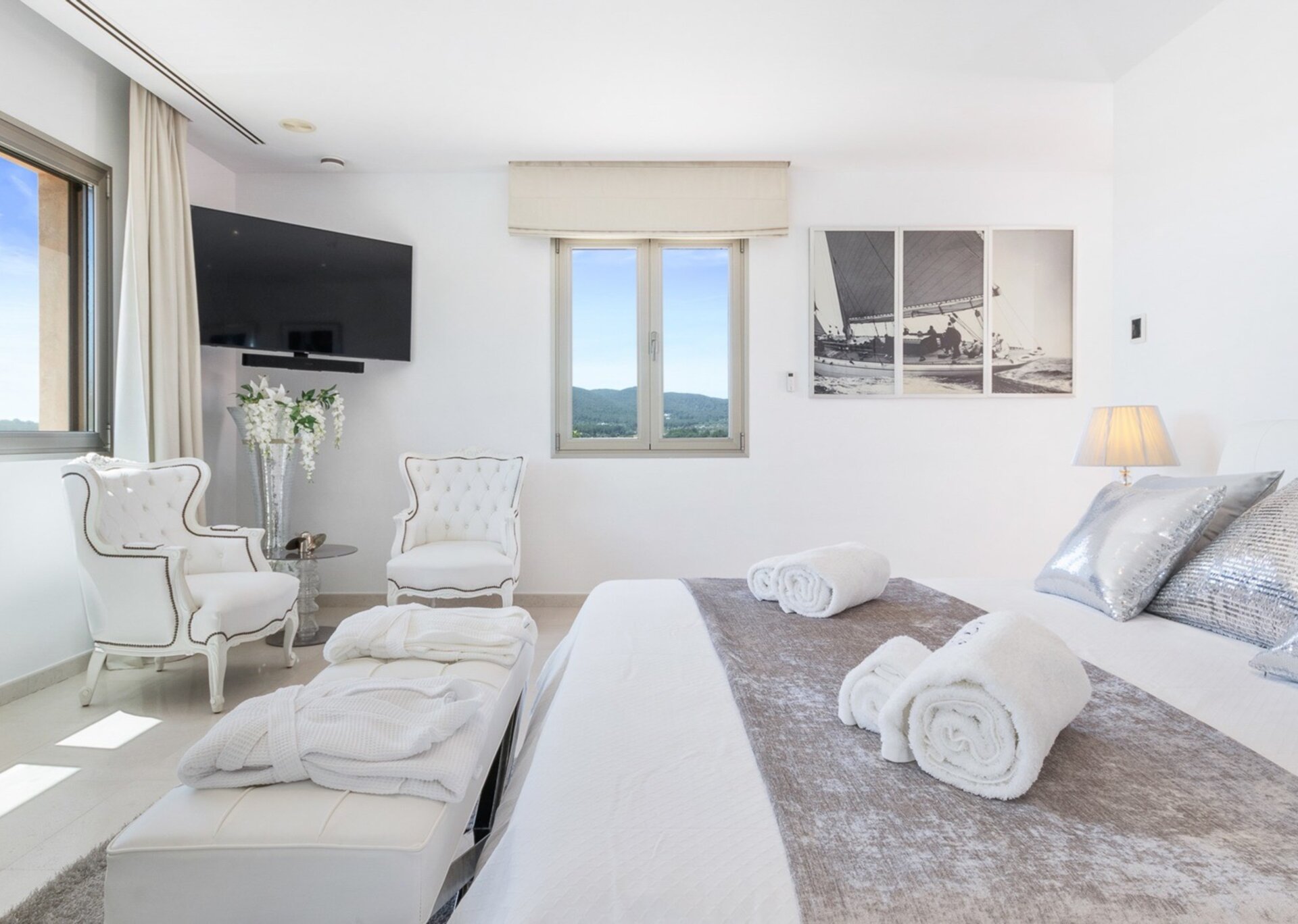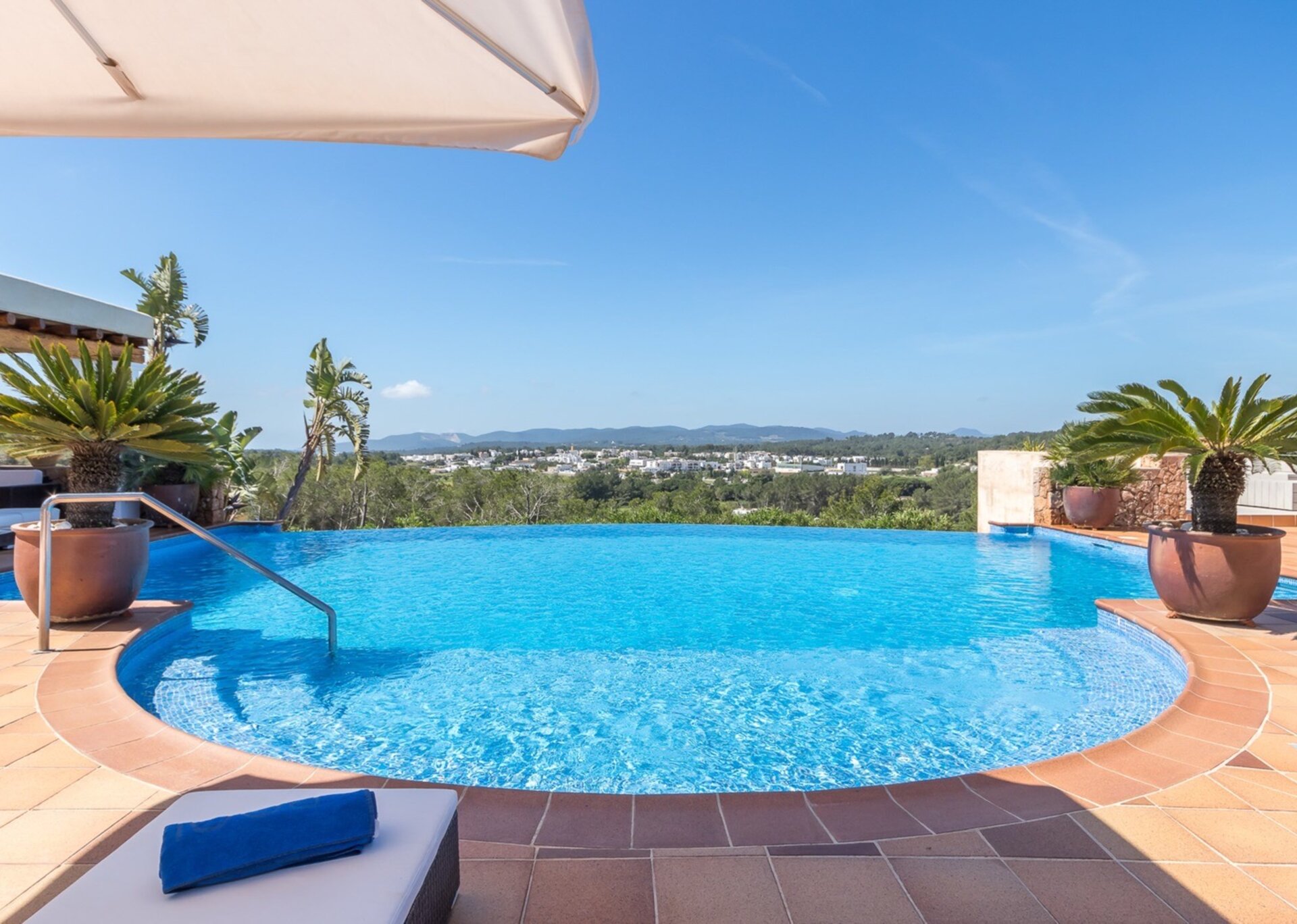 Finca is an exquisite Ibicenco farmhouse located near the bohemian village of Santa Gertrudis, renowned for its vibrant cafe culture. Just a short drive away lies the lively town of Santa Eulalia, brimming with an array of shops, bars, and restaurants. This stunning 6-bedroom villa offers guests breathtaking views of the surrounding valleys, countryside, and the sparkling Mediterranean Sea in the distance, stretching towards Formentera.