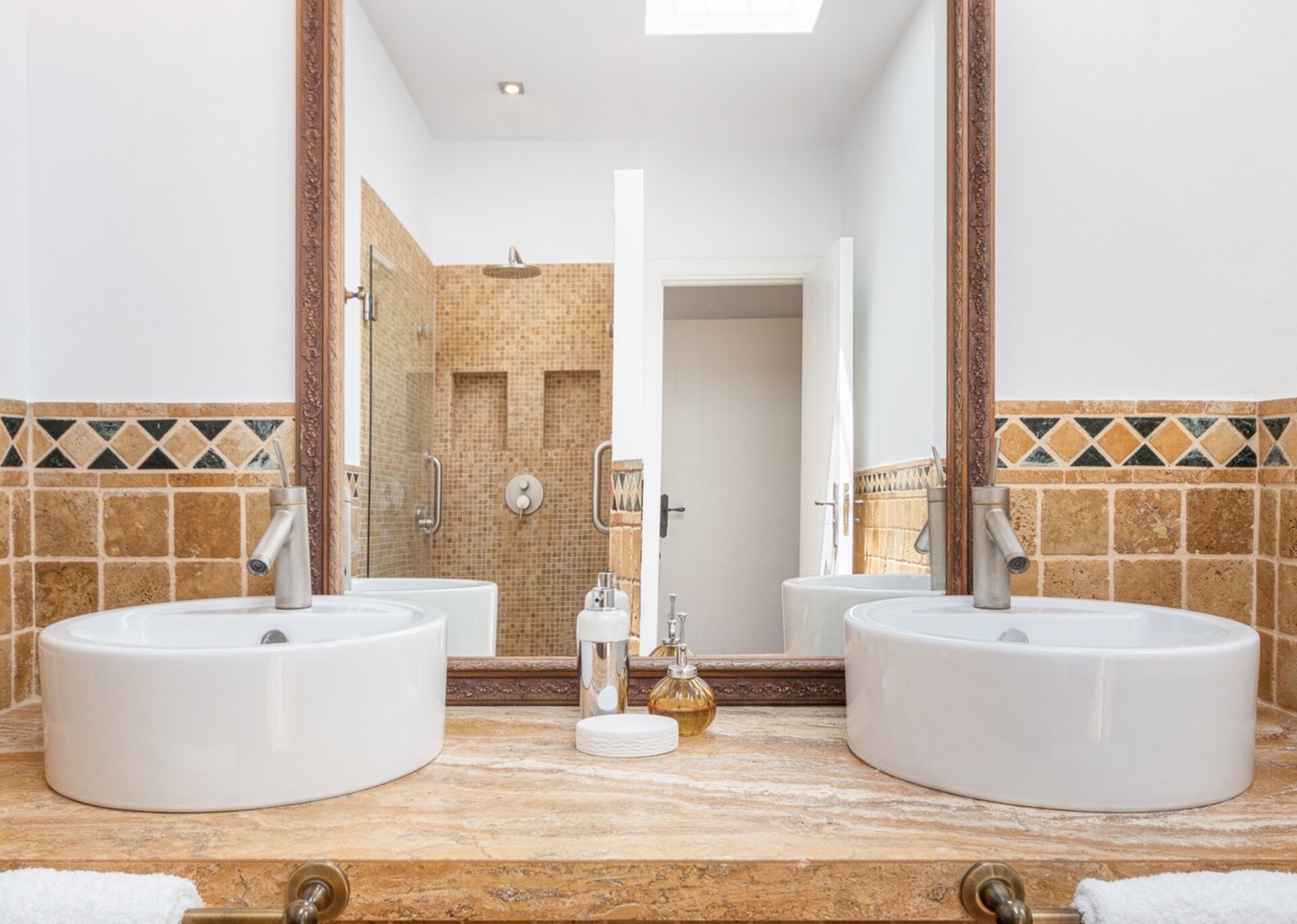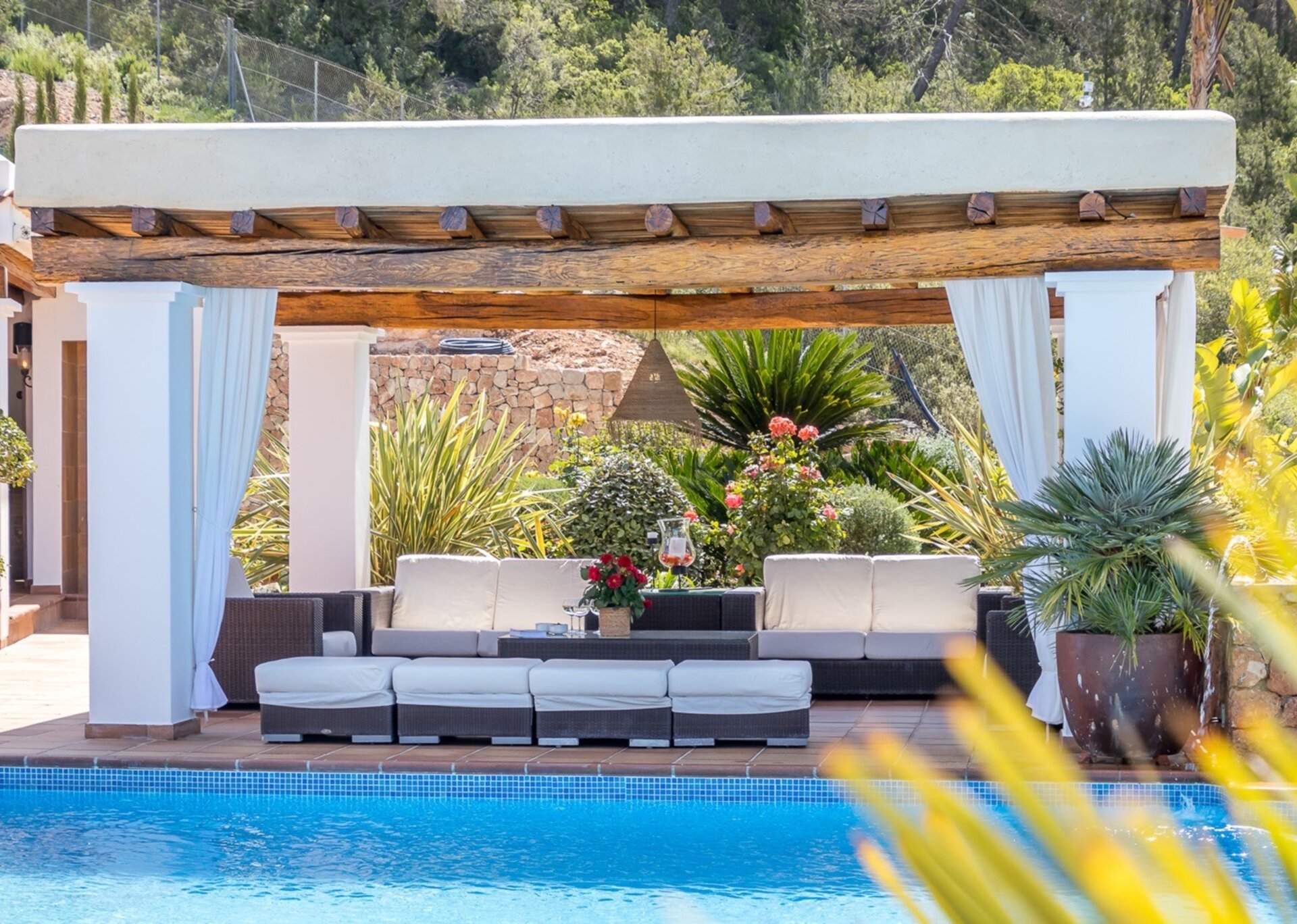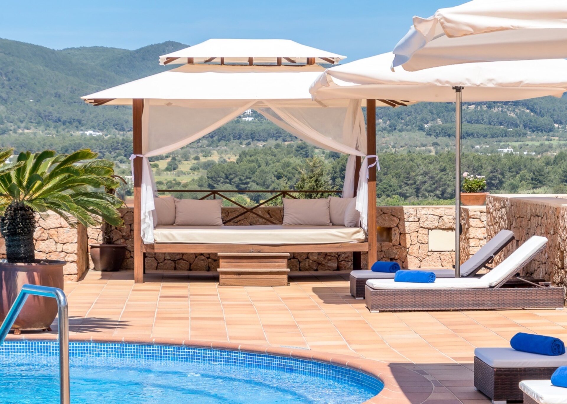 Outside, Finca enchantingly presents an abundance of outdoor terraces. Discover an infinity swimming pool, a heated Jacuzzi, luxurious Balinese beds, and ample sun loungers, enticing you to relax and luxuriate under the sun. Multiple chill-out areas beckon, while two captivating dining areas, complete with a BBQ, wood-burning oven, and a fully equipped outdoor kitchen, invite you to savor al fresco dining in true style from dawn till dusk. To add to the allure, a bespoke bar stands as the perfect spot to enjoy sunset cocktails.