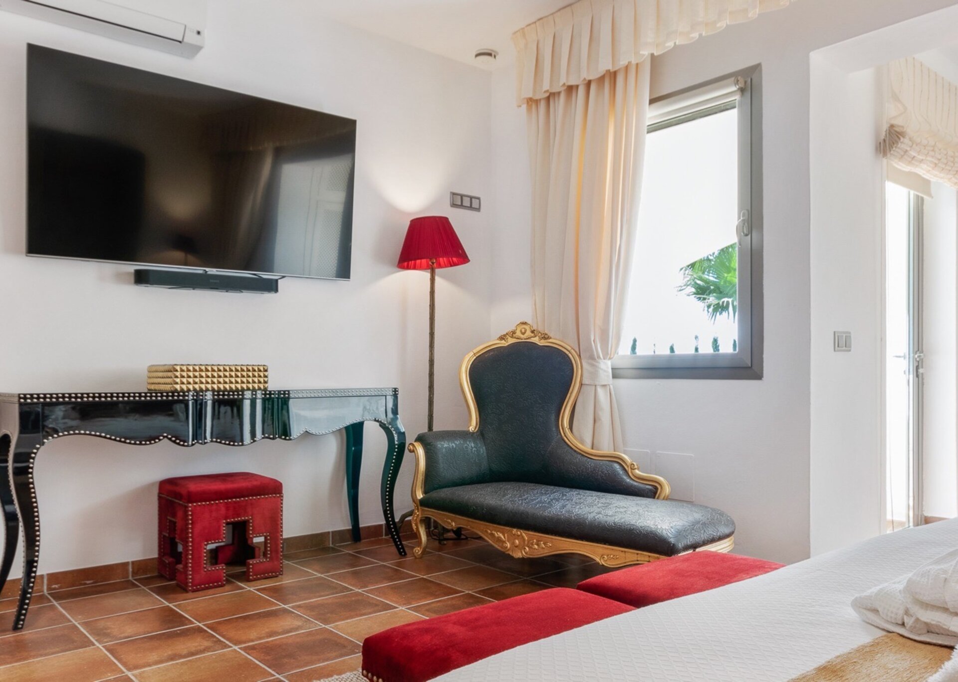 Set amidst lush grounds, Finca boasts an elegant two-floor design. The spacious interiors exude an authentic charm, combining traditional finishes with an opulent and eclectic array of exquisite furniture.