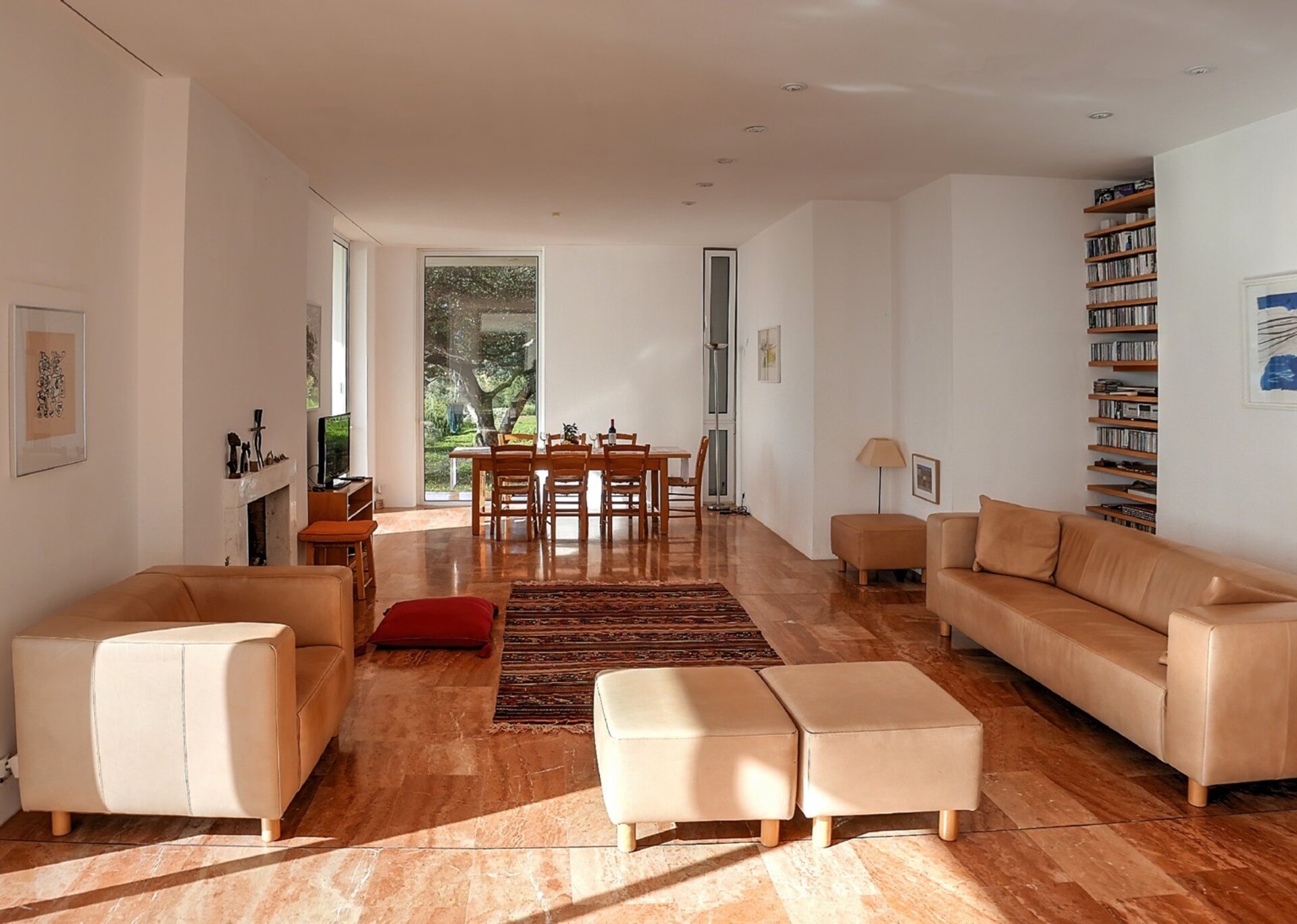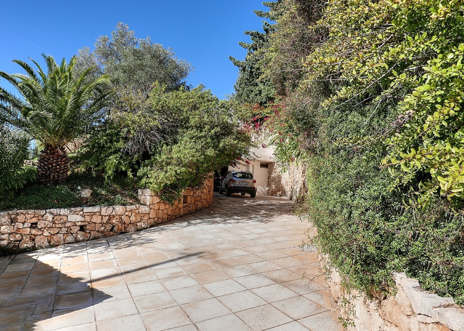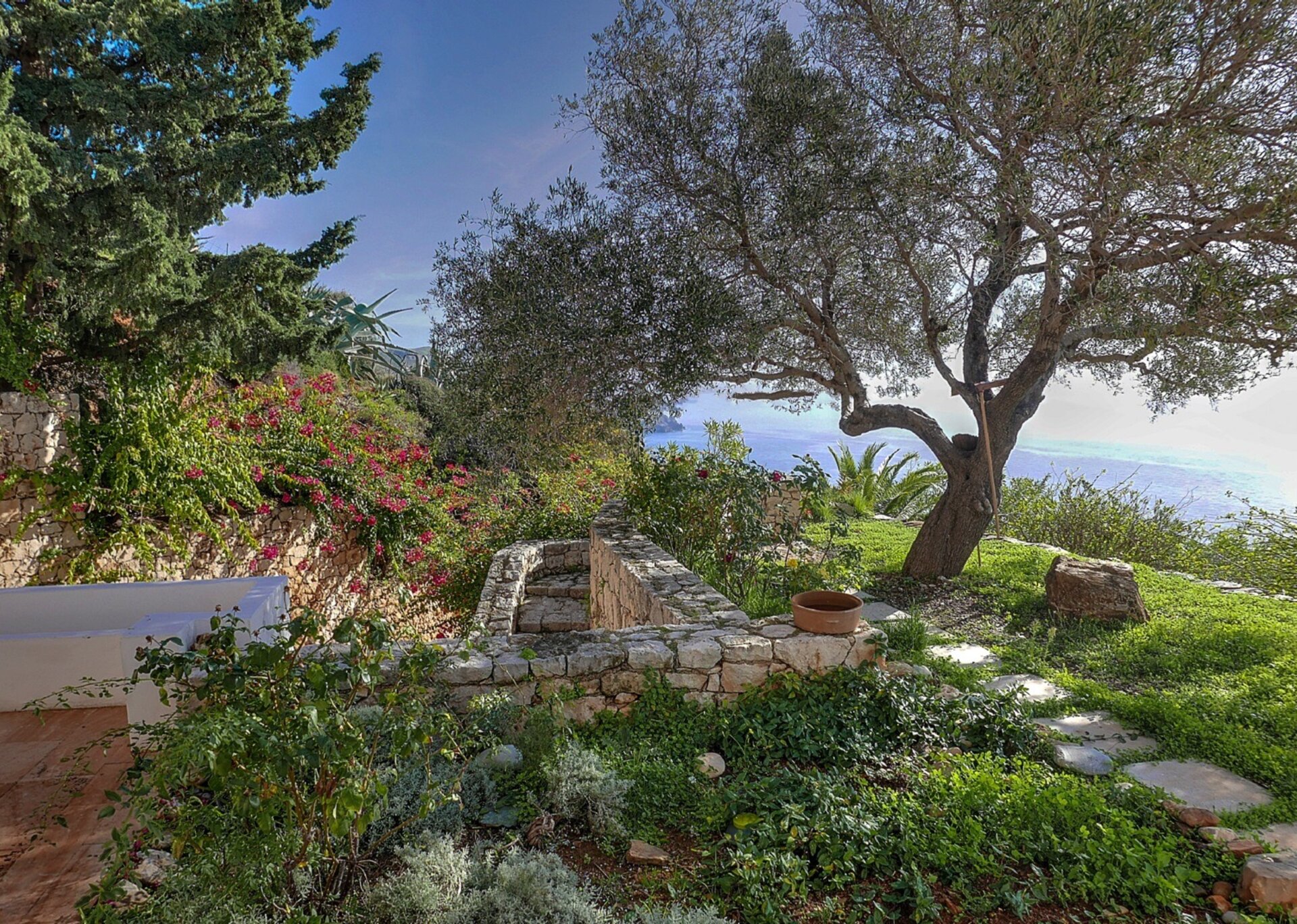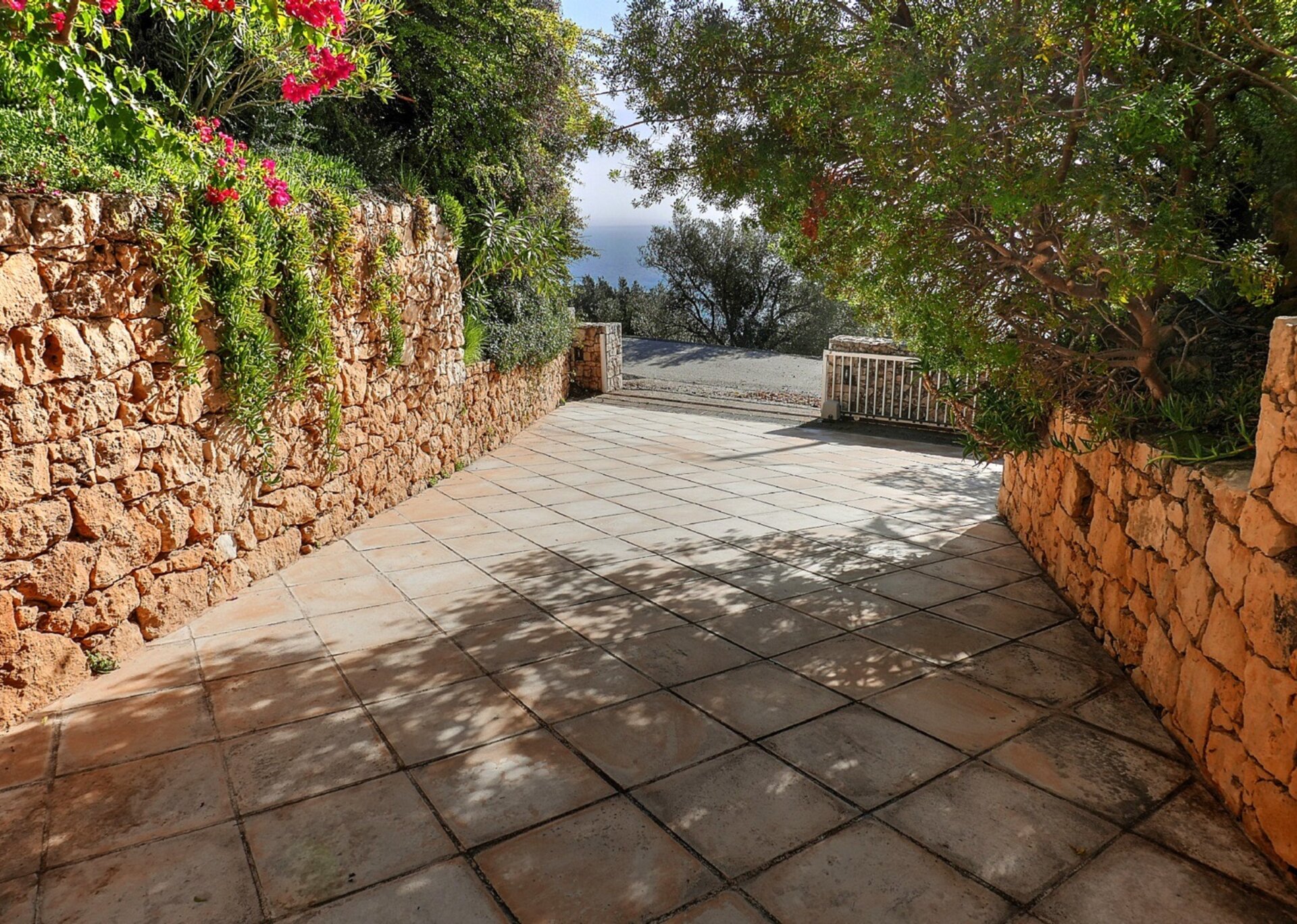 The outdoor area is also designed with great attention to detail and offers a beautiful terrace with a view of the sea and the mountains. The villa is surrounded by a large garden with Mediterranean plants and trees.