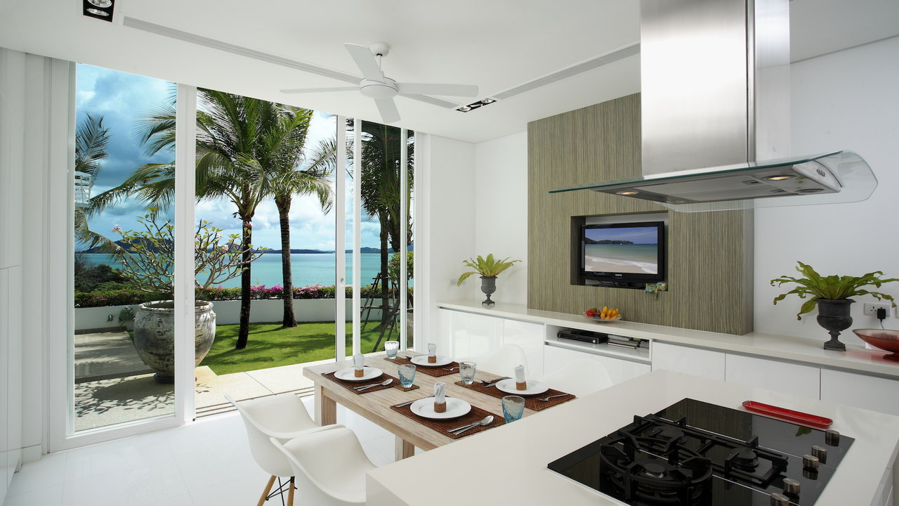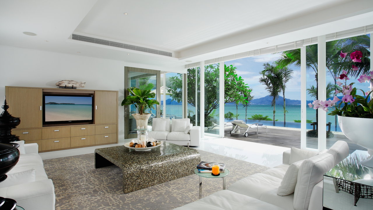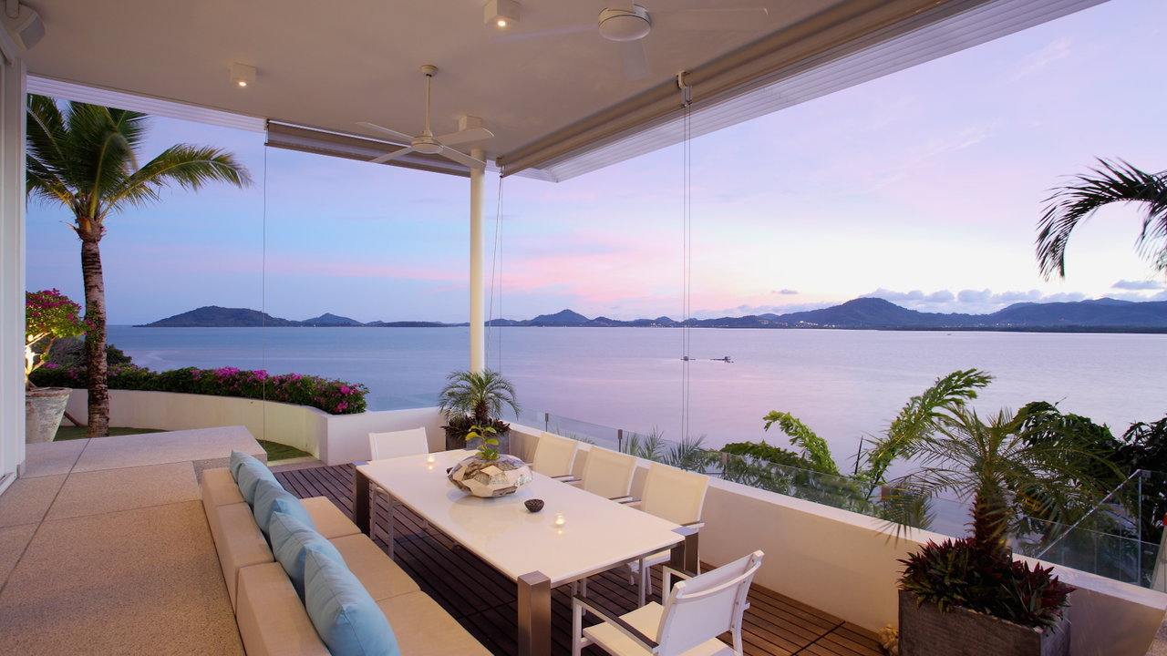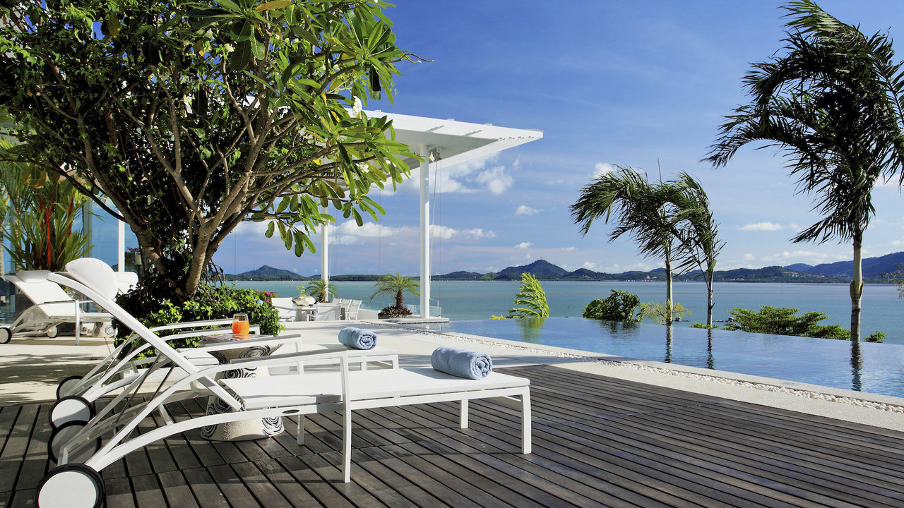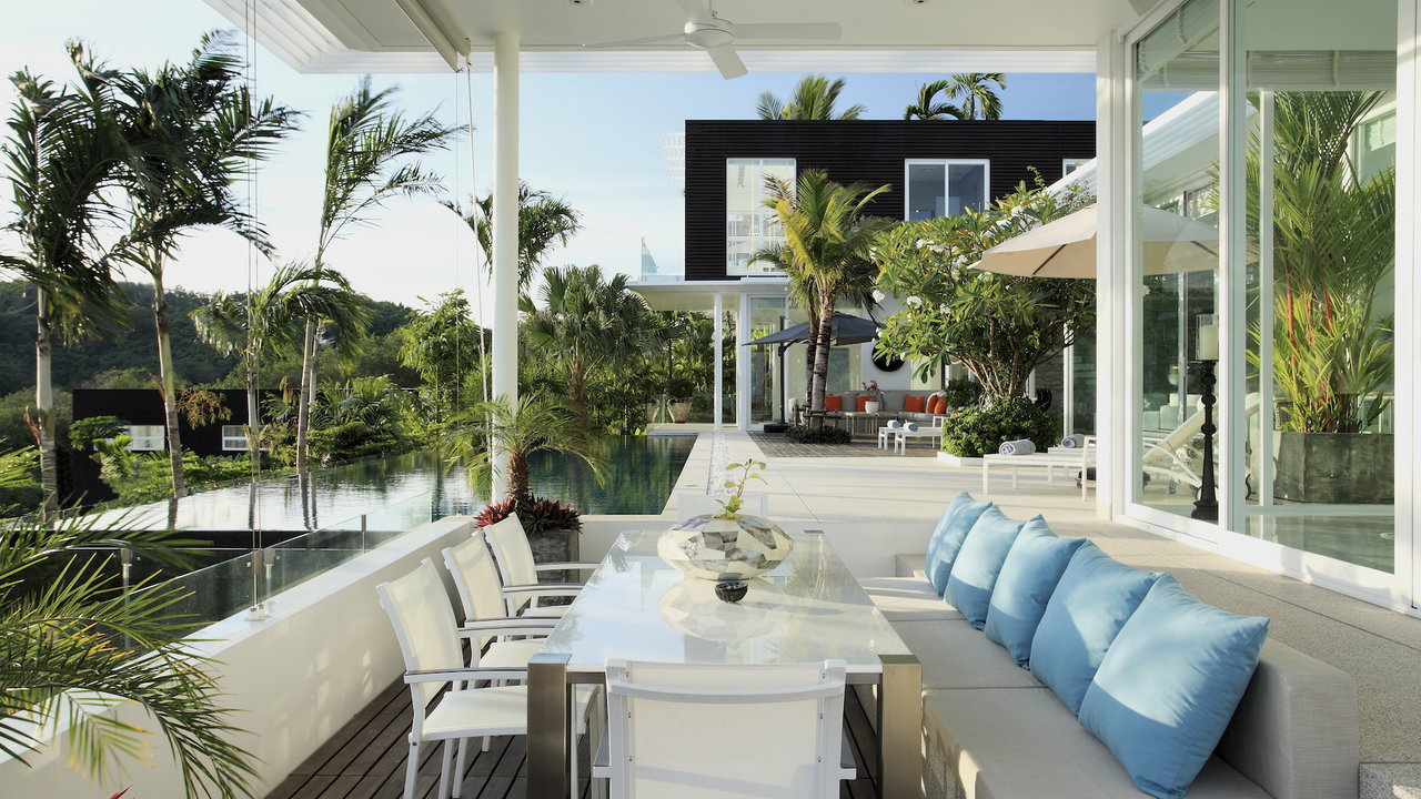 Situated on the scenic east coast of Cape Yamu Phuket, this luxury villa boasts a beautiful panoramic view of the ocean and surrounding foothills to soothe your senses. Here you can witness a dramatic atmosphere with its magnificent view of the sunset vanishing behind the sculpted mountains of Phuket. Villa Fonseca is well elevated and perfectly positioned to maintain it’s privacy and an uninterrupted sight of the scenery and landscape overlooking the luxurious villa. From the main entrance, to the living room, dining, infinity pool, and each bedrooms, you will be welcomed by the panorama of the turquoise blue waters of the Andaman Sea and Phuket Bay, along with the outstanding view of two islands, namely Koh Rang Yai and Koh Maprao.