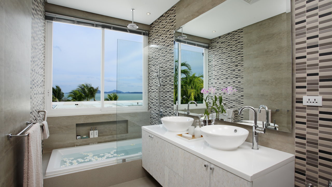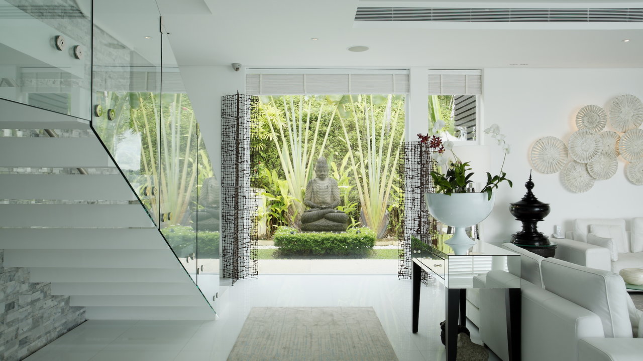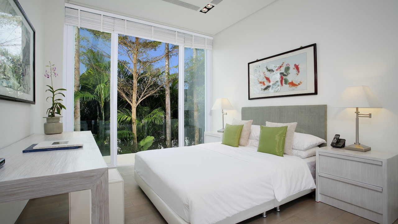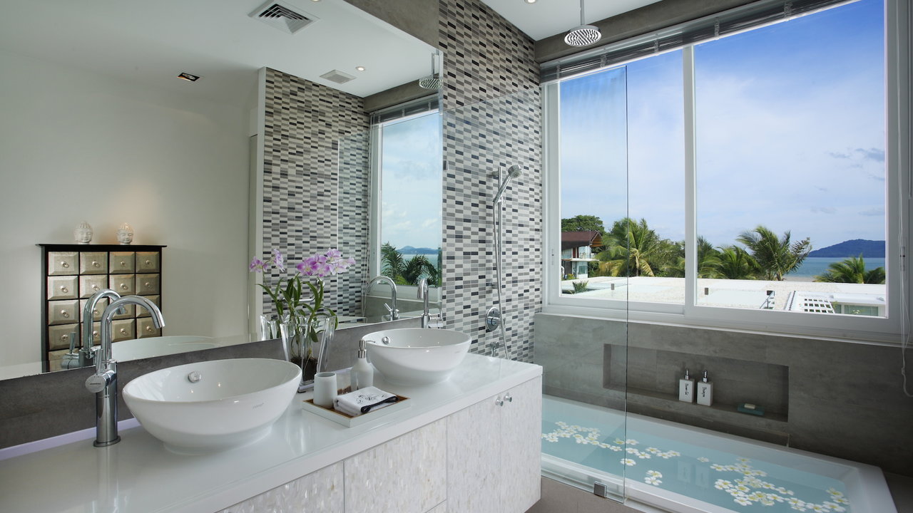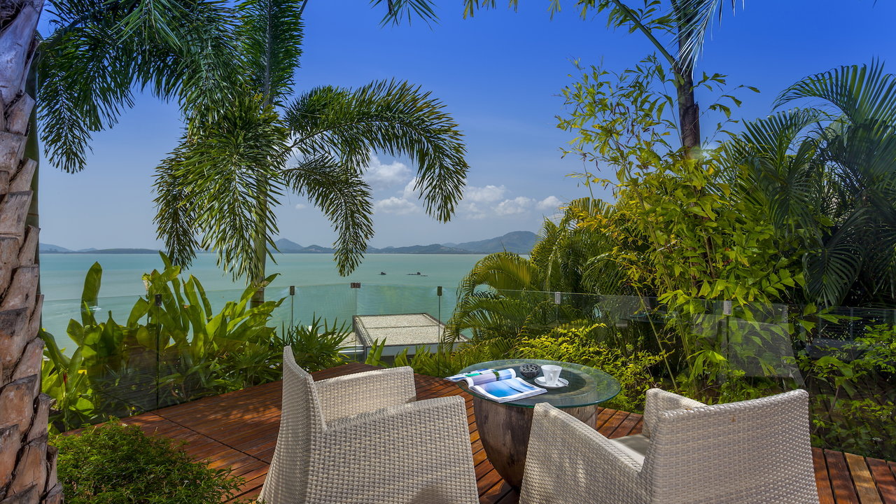 Situated on the scenic east coast of Cape Yamu Phuket, this luxury villa boasts a beautiful panoramic view of the ocean and surrounding foothills to soothe your senses. Here you can witness a dramatic atmosphere with its magnificent view of the sunset vanishing behind the sculpted mountains of Phuket. Villa Fonseca is well elevated and perfectly positioned to maintain it’s privacy and an uninterrupted sight of the scenery and landscape overlooking the luxurious villa. From the main entrance, to the living room, dining, infinity pool, and each bedrooms, you will be welcomed by the panorama of the turquoise blue waters of the Andaman Sea and Phuket Bay, along with the outstanding view of two islands, namely Koh Rang Yai and Koh Maprao.