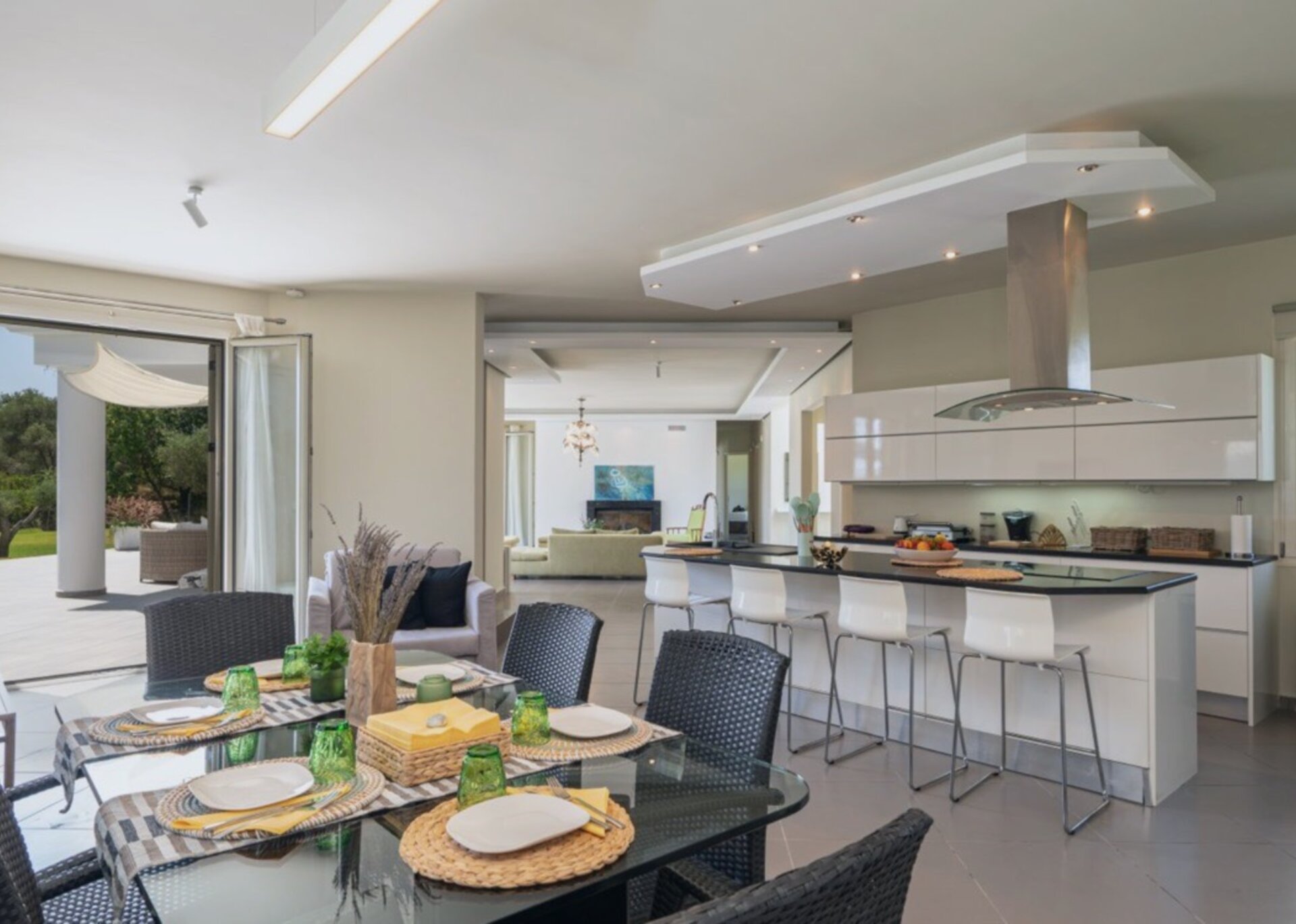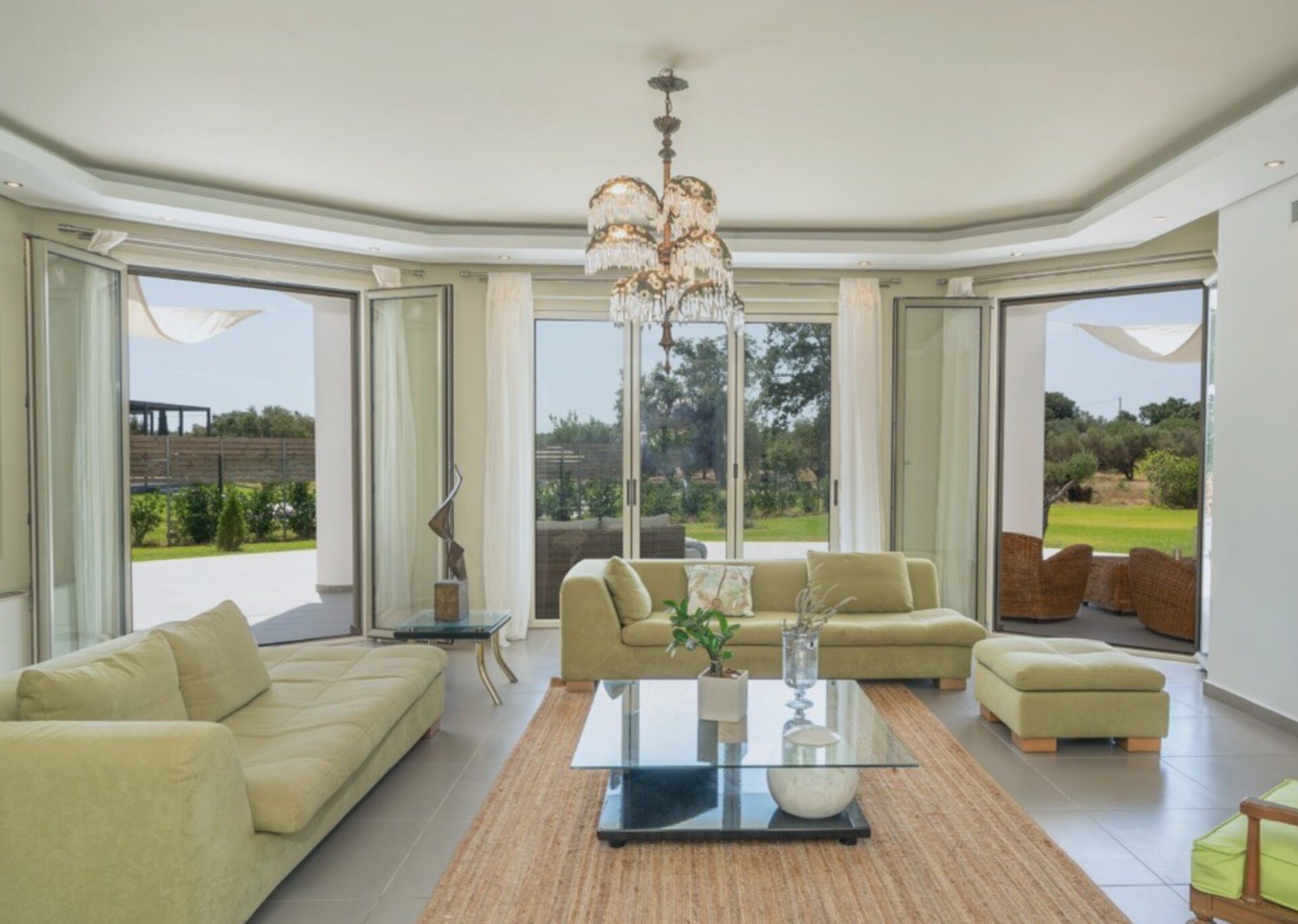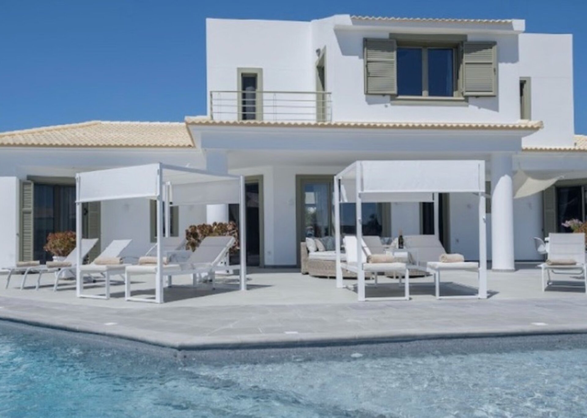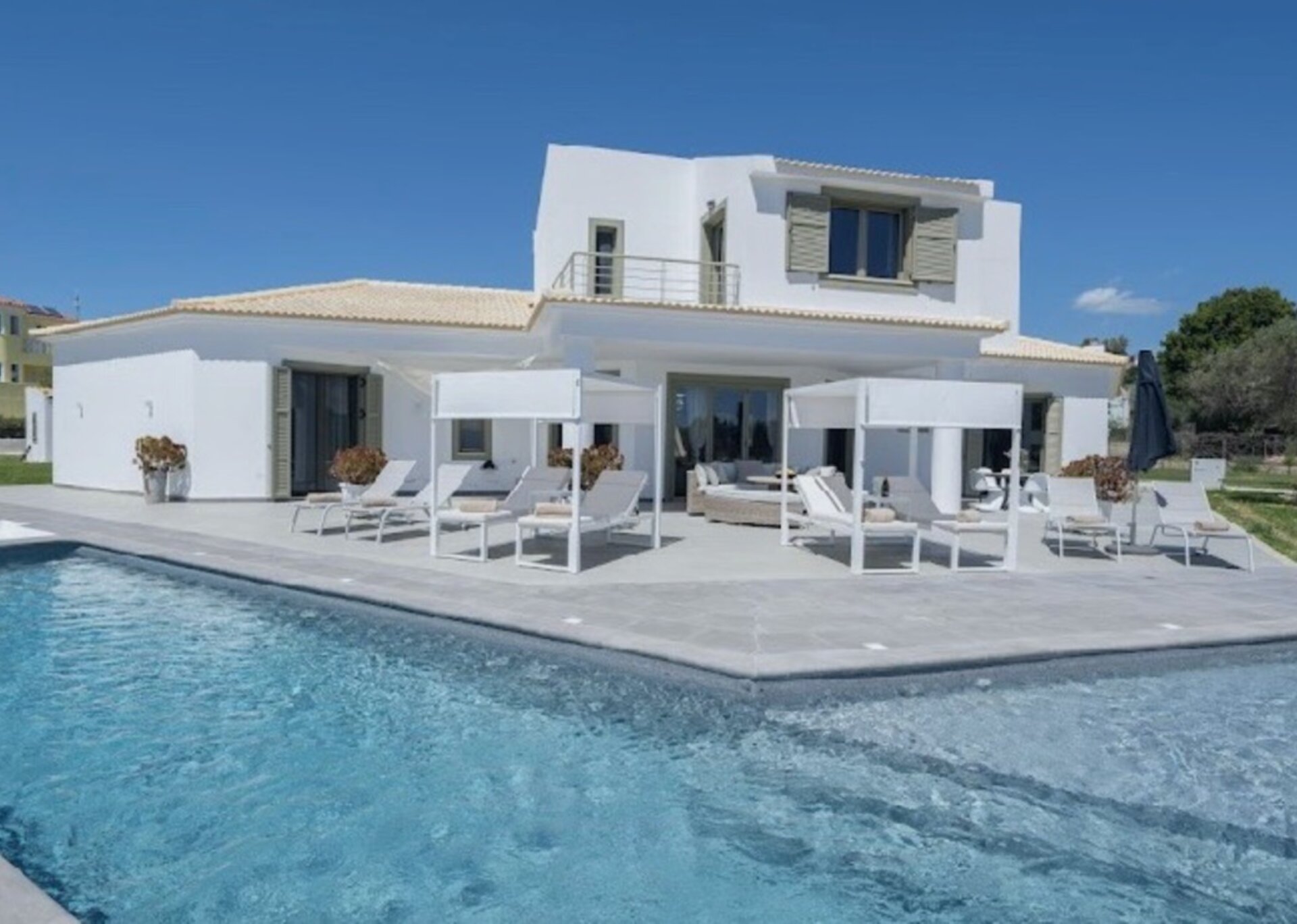 The villa measures 350 m² of interior space featuring in total 4 bedrooms and 4 bathrooms which can comfortably accommodate 6-8 guests and 750 m² of exterior space.Villa Francis boasts a Panoramic pool view and its design follows mainly the “open floor” layout principles, giving to its residents easy access to the indoor & outdoor areas.It has a fully equipped kitchen & dining room, a living room, and a library/study room.