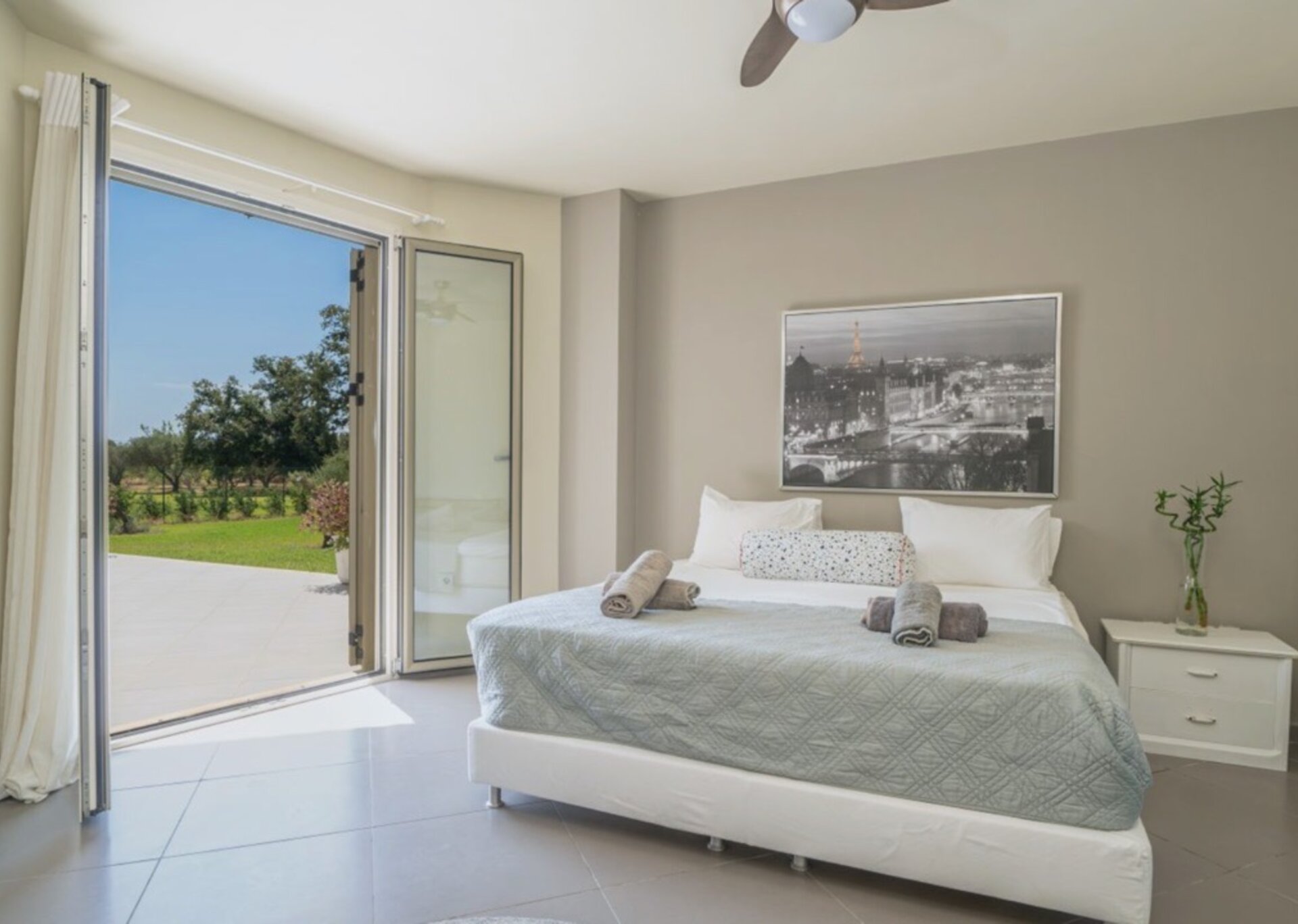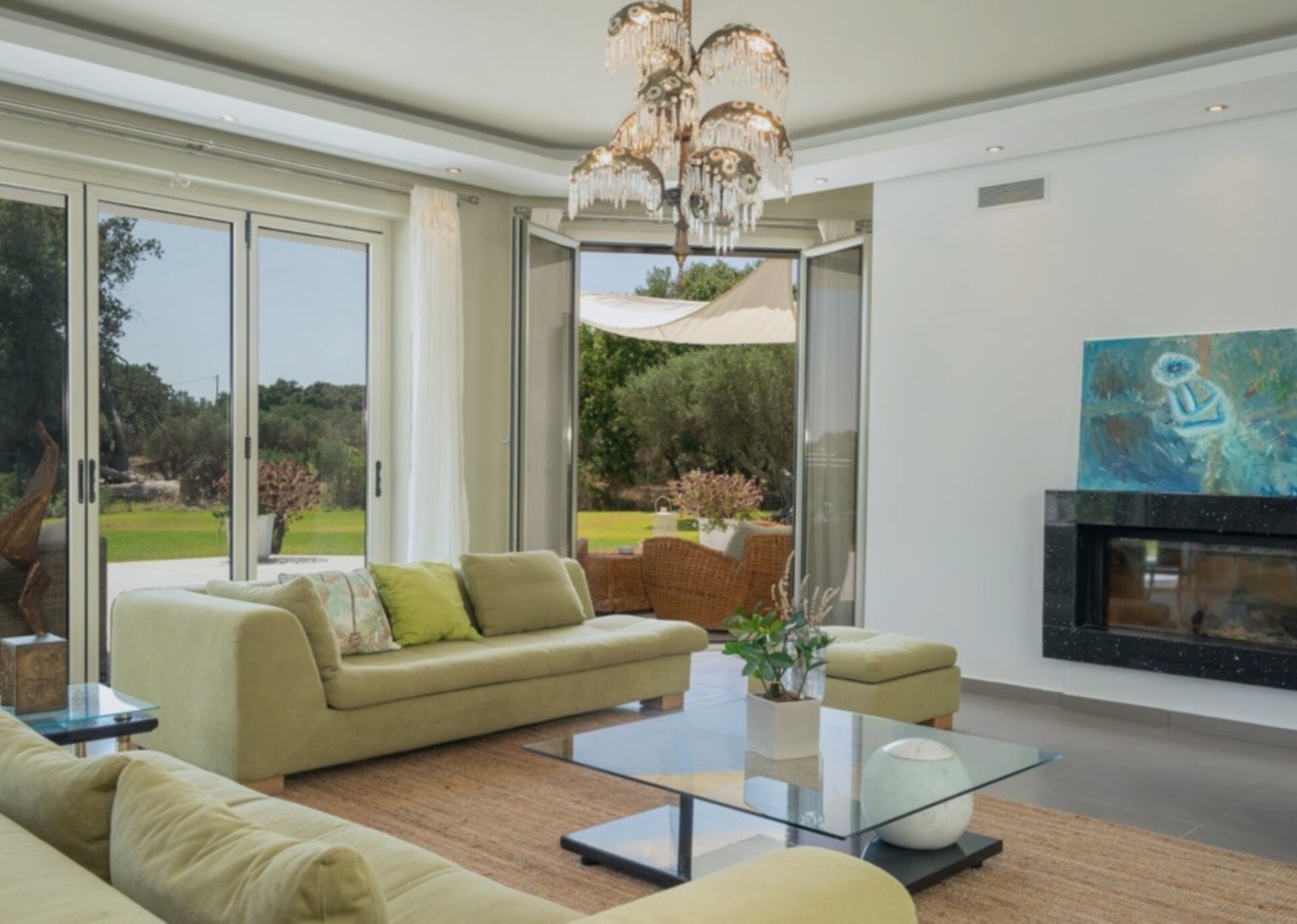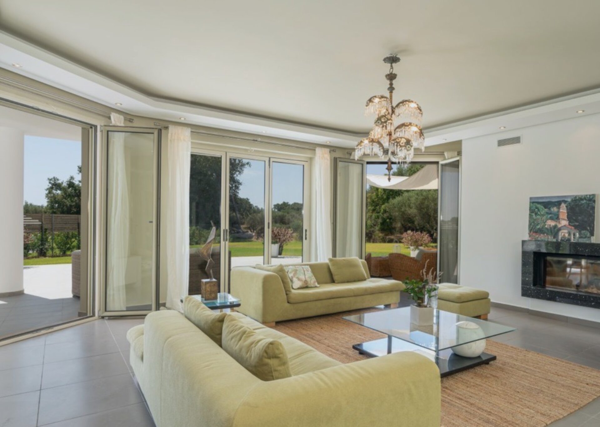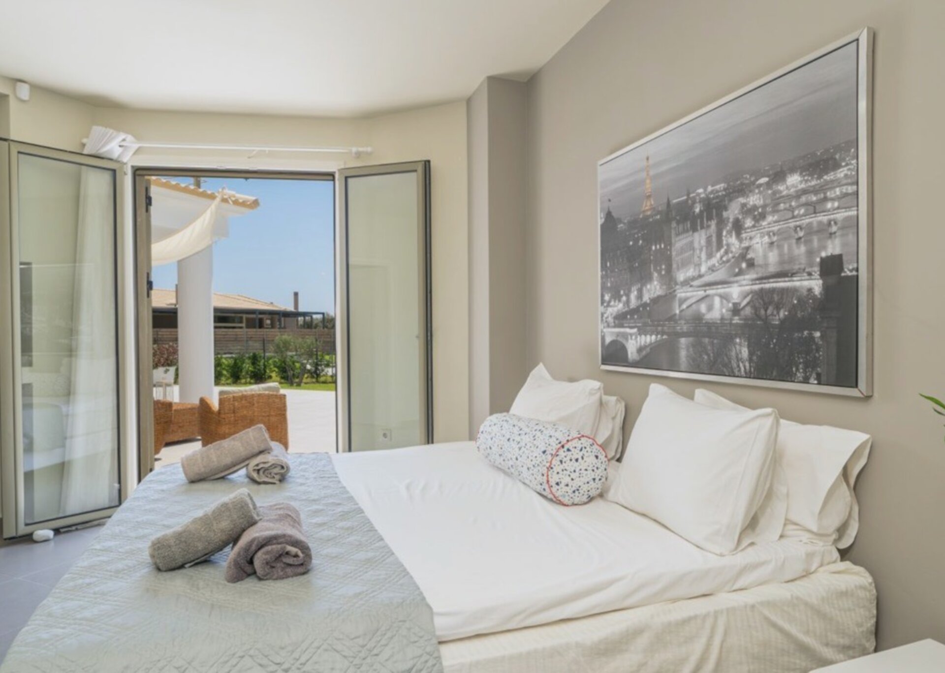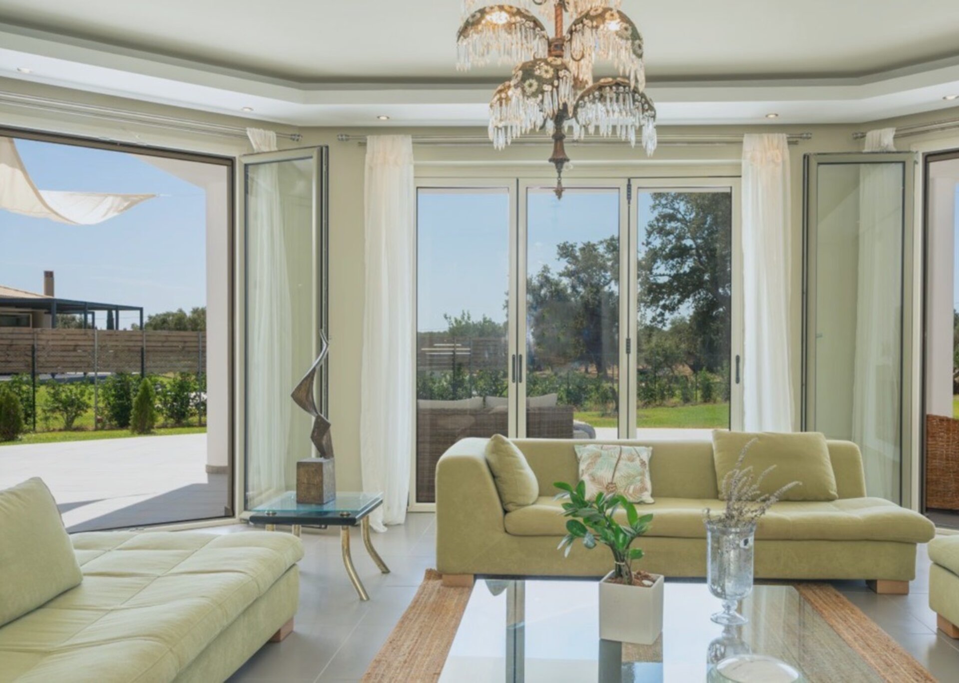 The villa measures 350 m² of interior space featuring in total 4 bedrooms and 4 bathrooms which can comfortably accommodate 6-8 guests and 750 m² of exterior space.Villa Francis boasts a Panoramic pool view and its design follows mainly the “open floor” layout principles, giving to its residents easy access to the indoor & outdoor areas.It has a fully equipped kitchen & dining room, a living room, and a library/study room.