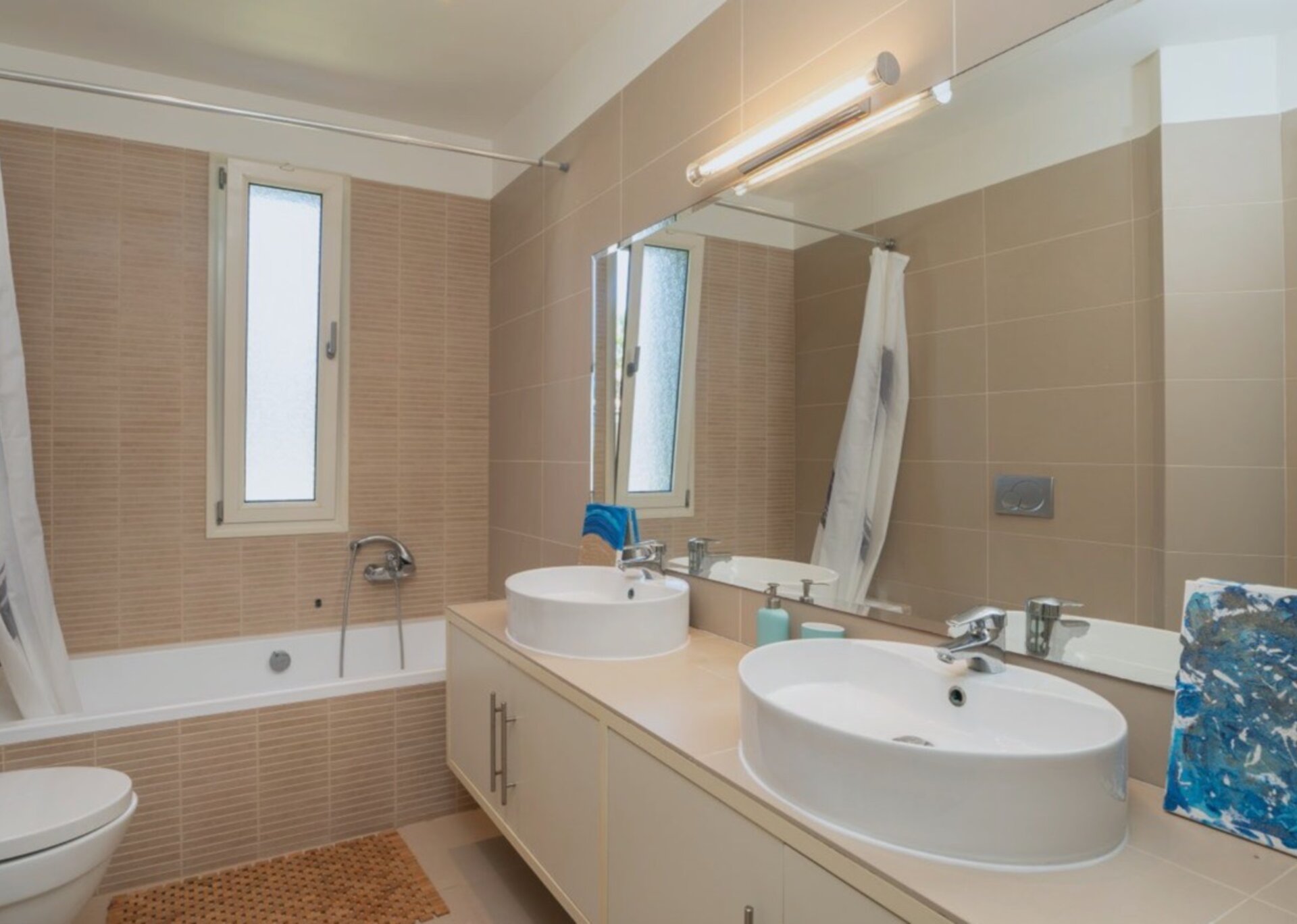 The villa comprises four bathrooms, two of which are equipped with bathtubs and the other two with showers.
