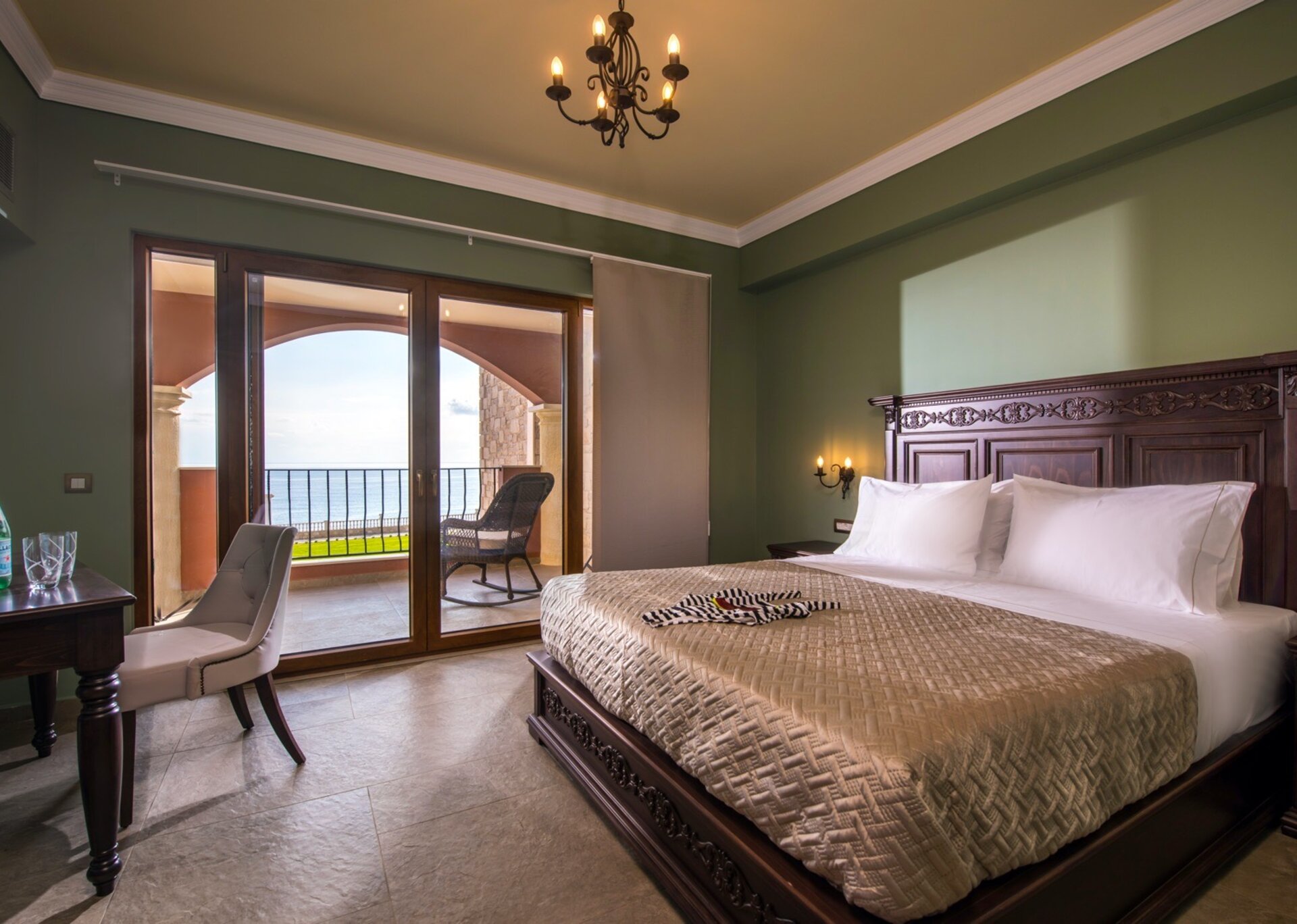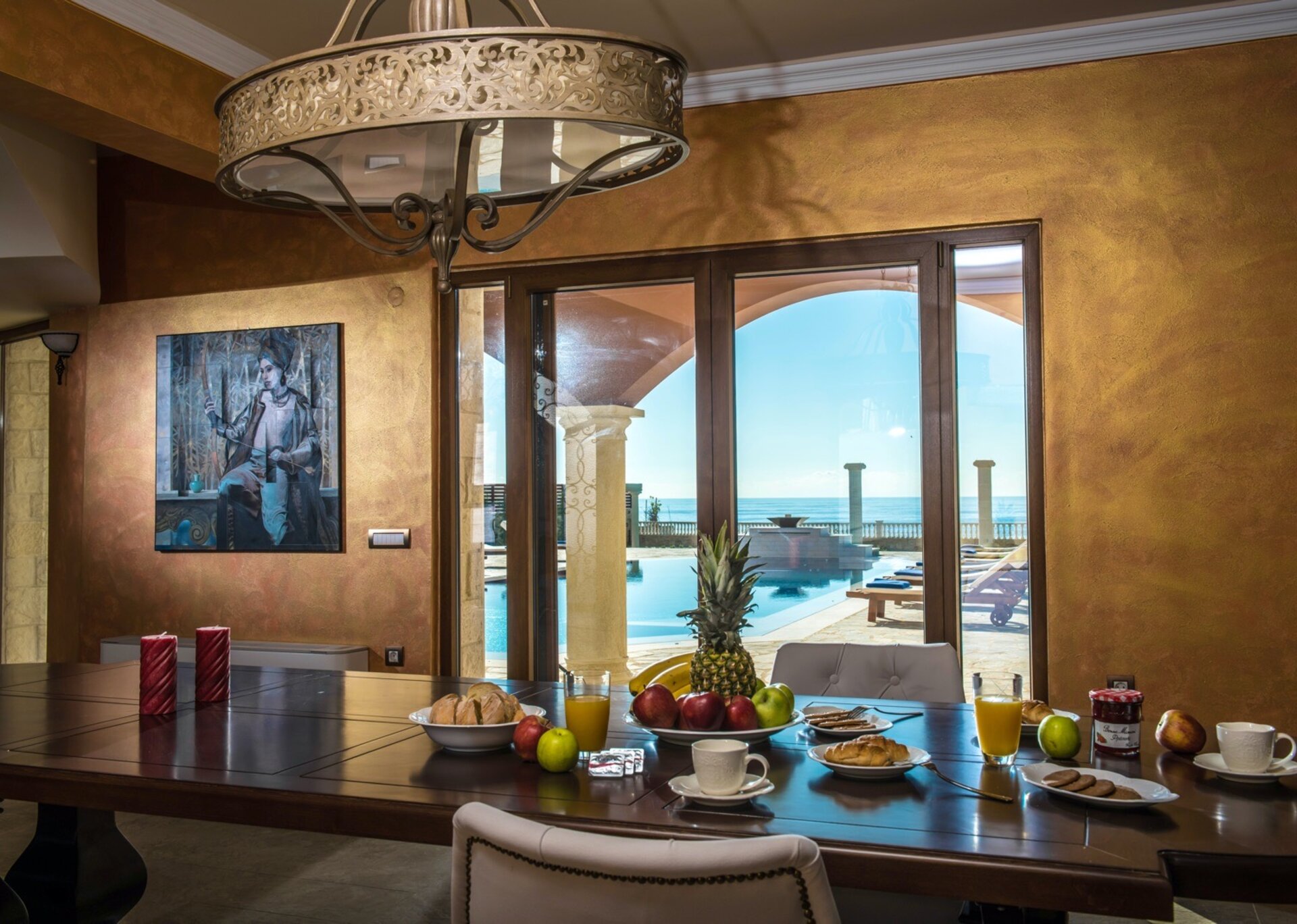 The interior area is lavish with an elegant taste of design. Gabriella is decorated and furnished with pieces and paintings of prominent Italian artists of the highest caliber. The walls are fitted with large windows that invite both the sunlight and the views inside. Gabriella has a cozy living room with comfy sofas and a fireplace while there is a lovely indoor dining area which is perfect for capturing romantic moments with your guests.