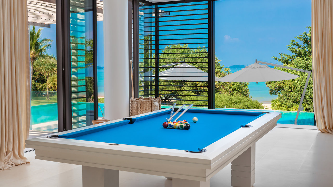 Give your feet a taste of the sun-warmed sand while walking along the property’s beachfront. Or take a swim in the turquoise waters of Phuket’s eastern coast. And if you prefer freshwater, the villa’s enormous infinity pool is readily available. The villa also features a state-of-the-art 10-seater cinema, a game room with a pool table, and a garden play area.