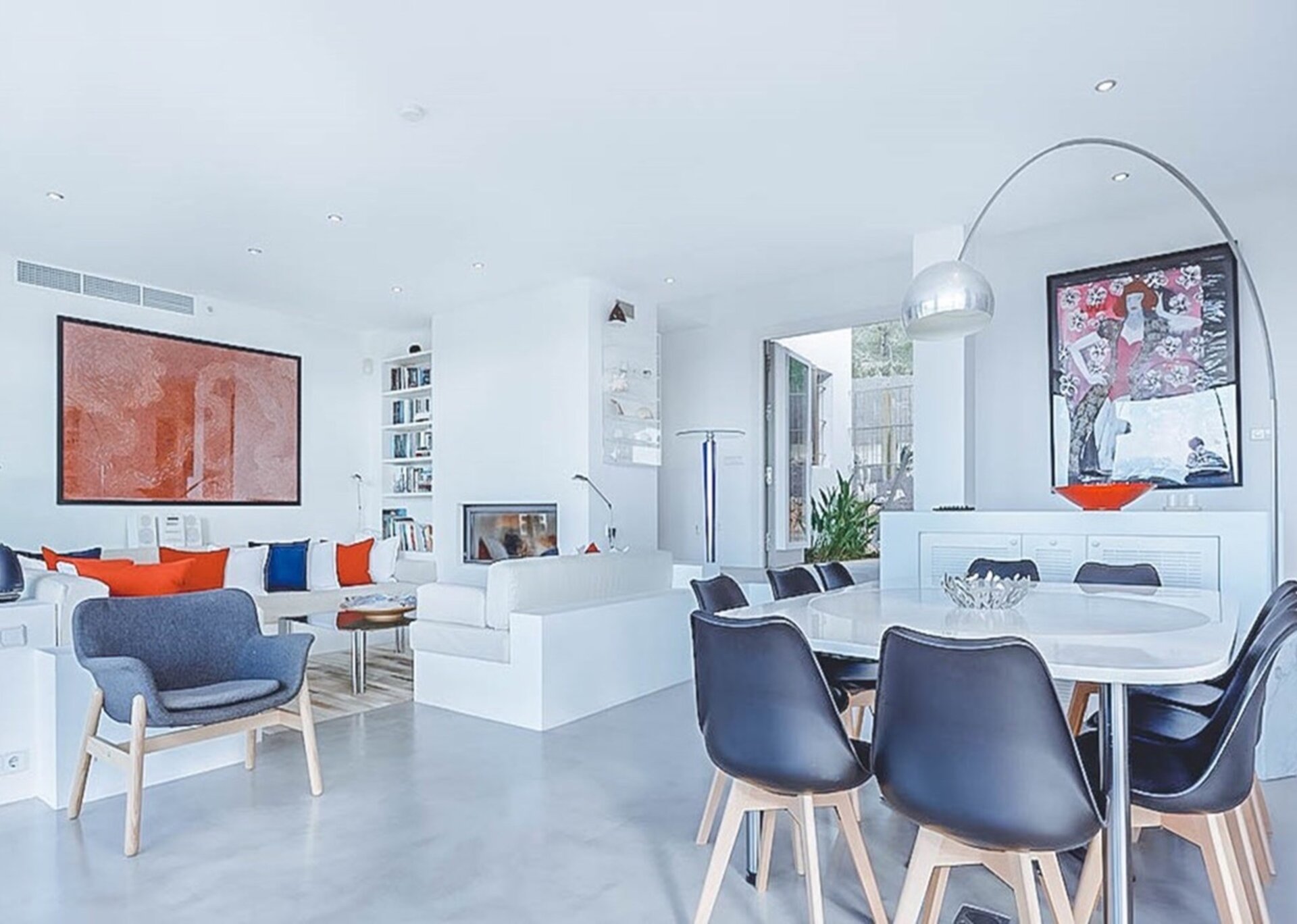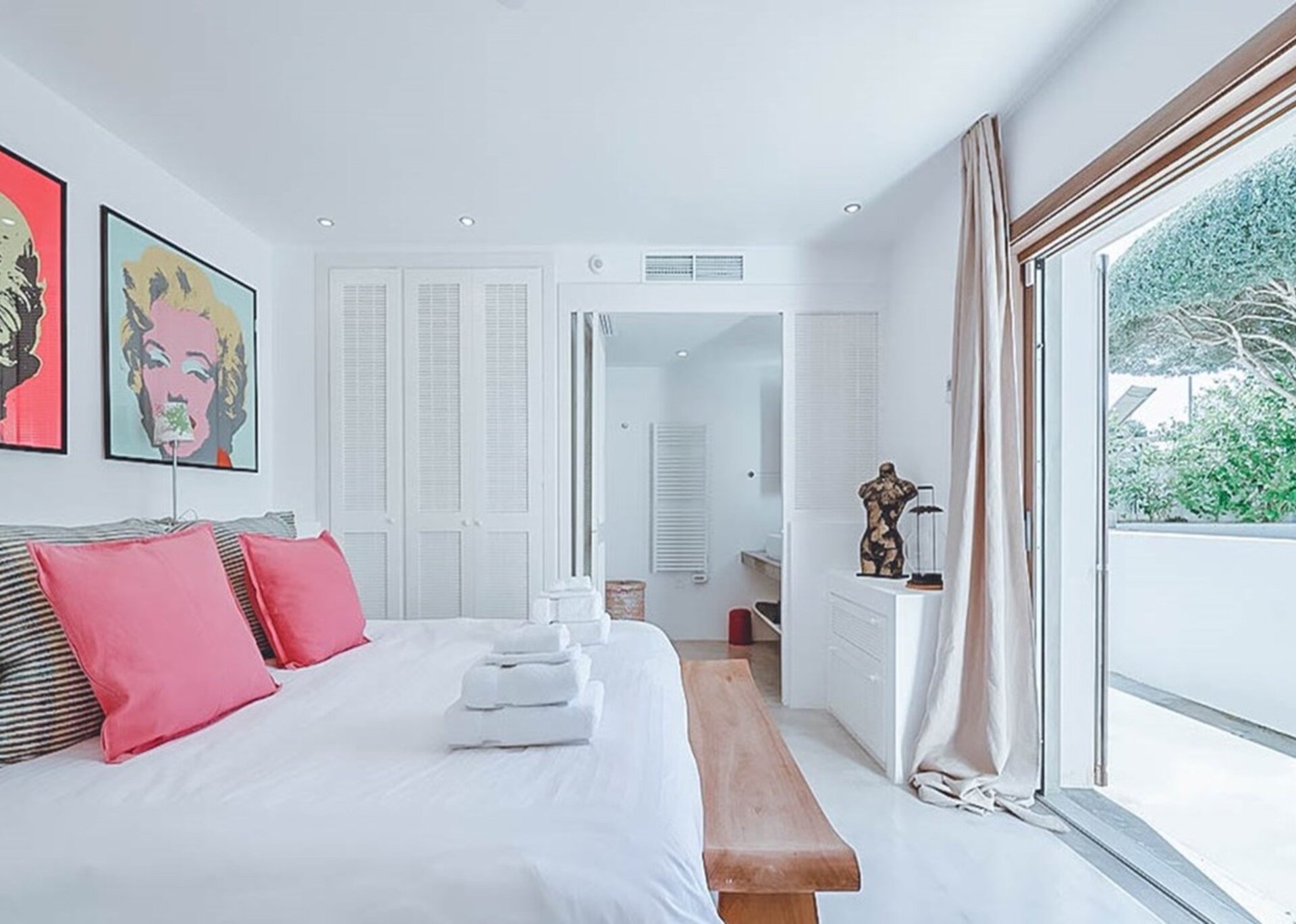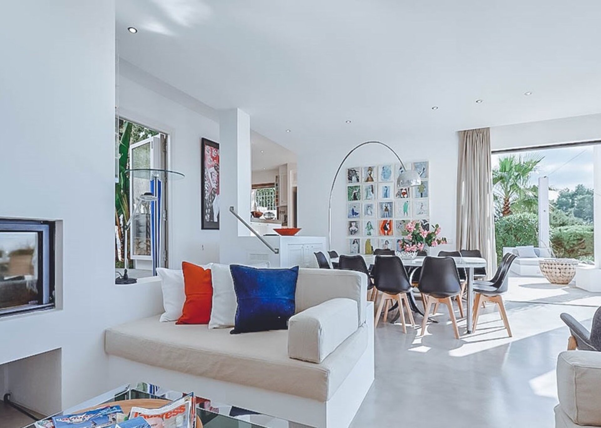 Situated on expansive grounds, Villa Gaultier boasts impeccably landscaped gardens adorned with palm trees, tropical plants, and lush green manicured lawns. The outdoor spaces are as enchanting as the interiors, featuring a breathtaking infinity pool, an alfresco dining area facing the sunset, and various cozy garden chill-out spaces. Ibiza is renowned for its captivating sunsets, and Villa Gaultier provides the perfect setting to fully appreciate this awe-inspiring display of colors illuminating the sky.