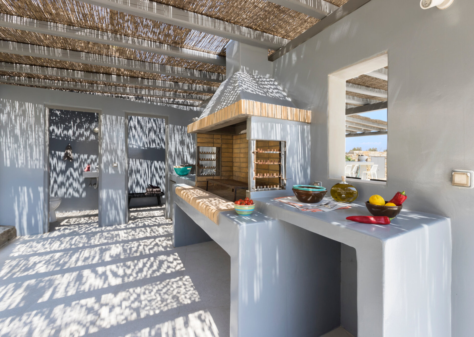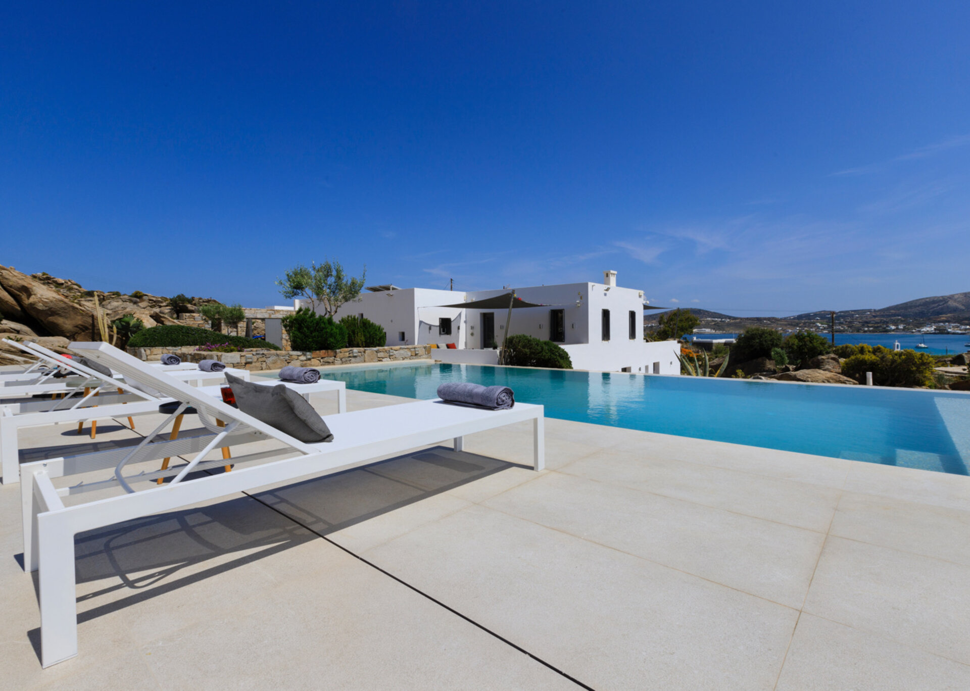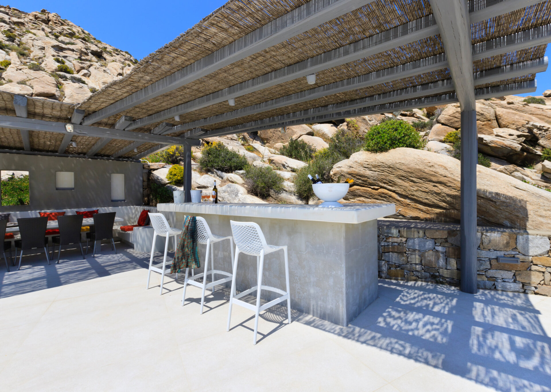 Outdoors, the villa boasts amenities such as an infinity pool, a pool bar, shaded dining and lounging areas, and a BBQ. Guests will revel in the luxurious details and thoughtful design elements that make Villa Giovanna a standout choice for an unforgettable retreat on the mesmerizing island of Paros.