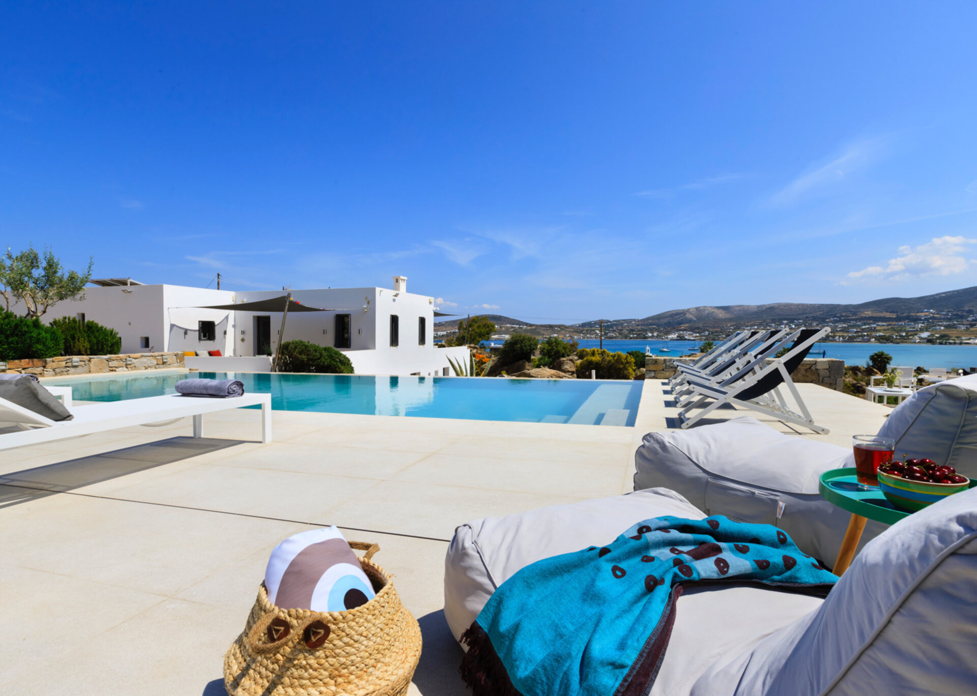 Inviting outdoor lounging areas on various levels, enchanting pergolas for al fresco dining, stone exteriors, and blue accents contrasting with the white interiors create a captivating visual tapestry. This sophisticated 6-bedroom villa beckons guests into a world of captivating experiences infused with the allure of the Greek islands. Renowned as one of Paros' most exquisite luxury retreats, Villa Giovanna spares no effort in ensuring guests' ultimate satisfaction and comfort.