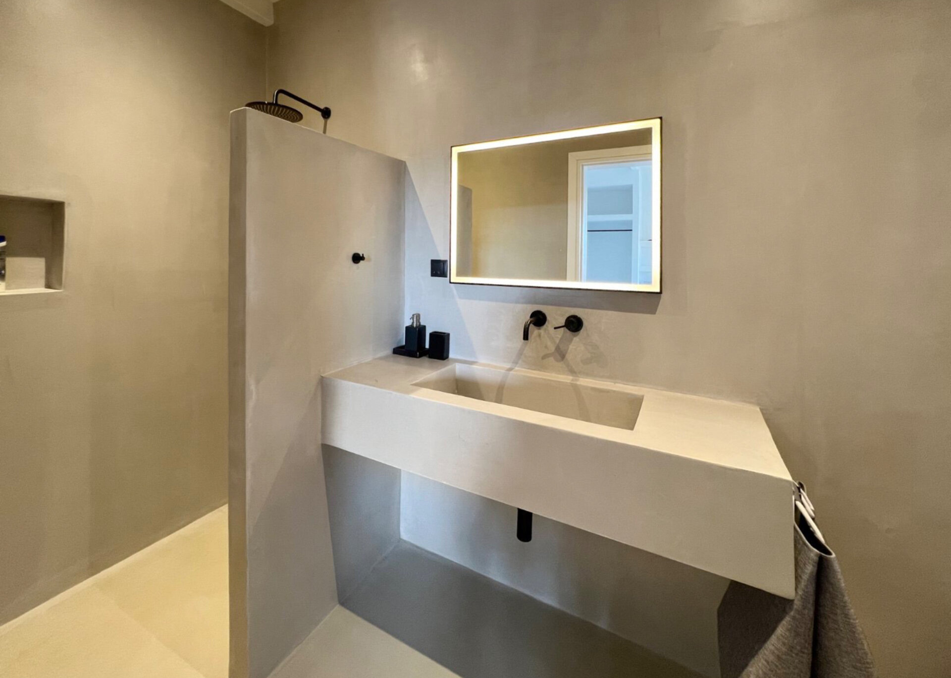 The luxurious bedrooms are divided between two levels, with the upper tier featuring two sumptuous rooms with sea views, and the lower tier offering two additional rooms, each with private entrances and direct outdoor access. For added convenience, a staff room is located on the lower level, catering to guests' needs for concierge services. The chic guest house mirrors the main unit in a more intimate setting, featuring a well-equipped kitchen, an open-plan living area, and two sea-view bedrooms with private terraces and a jacuzzi.
