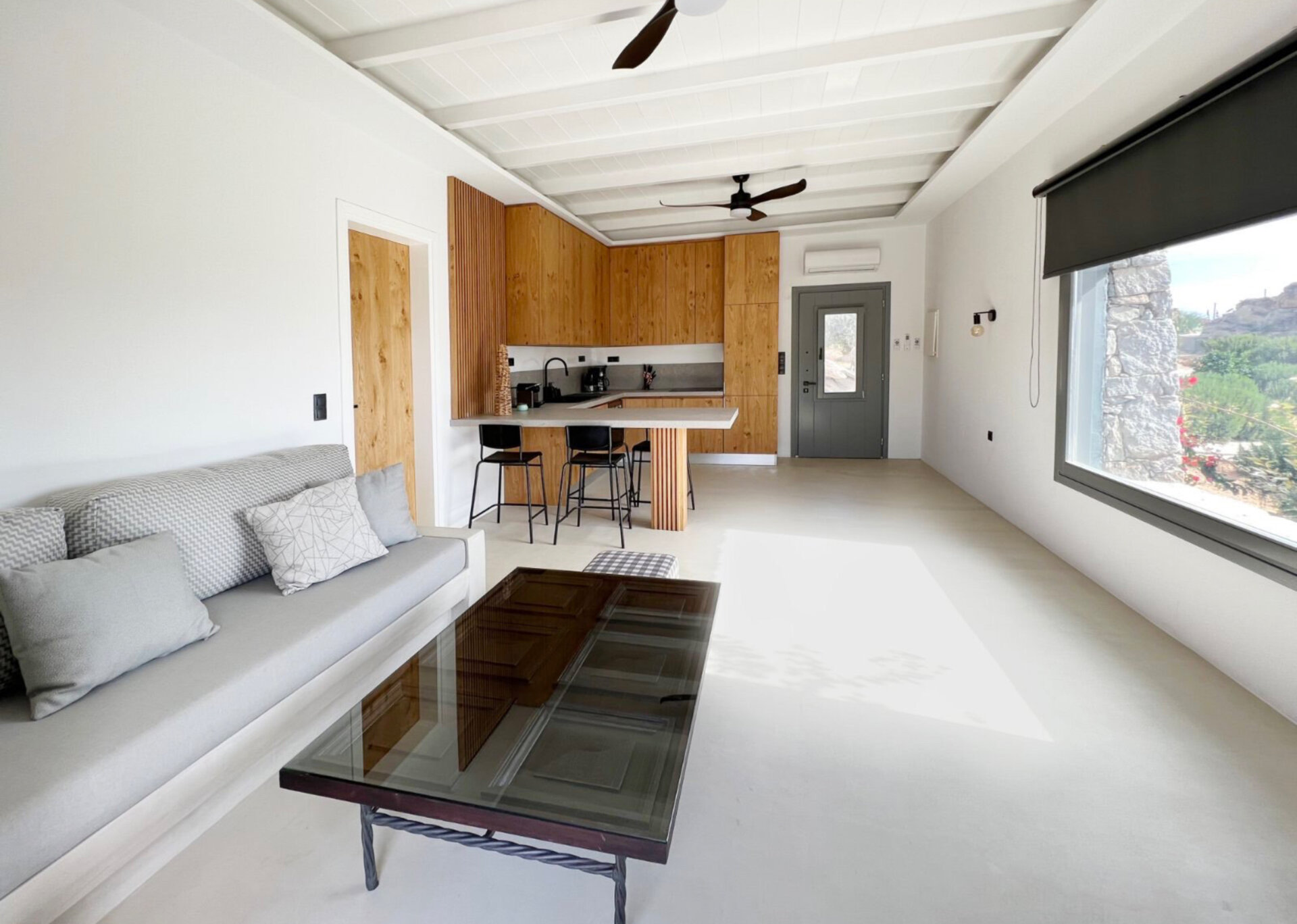 Nestled on the tranquil slopes of a hill in the sought-after Kolimbithres area, Villa Giovanna embodies refined design and understated luxury. This stunning villa is embraced by Paros' unique landscape, blending rugged terrain with lush surroundings. Seemingly integrated with its natural setting, Villa Giovanna exudes transparency, its pristine whitewashed walls standing beneath the azure Mediterranean sky, offering breathtaking vistas of the Aegean Sea.