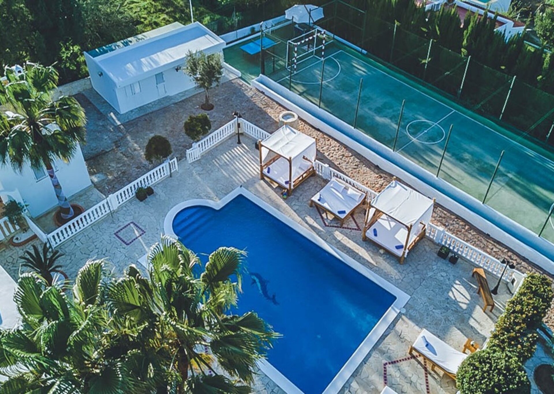 Giuseppe is conveniently located near San Rafael and Ibiza town, making it an ideal spot for groups and families. Recently renovated, this expansive property features 5 bedrooms and 5 bathrooms, offering guests all the comforts of a modern home. Its central location allows easy access to the wonders of Ibiza, from its picturesque beaches to its renowned nightlife.