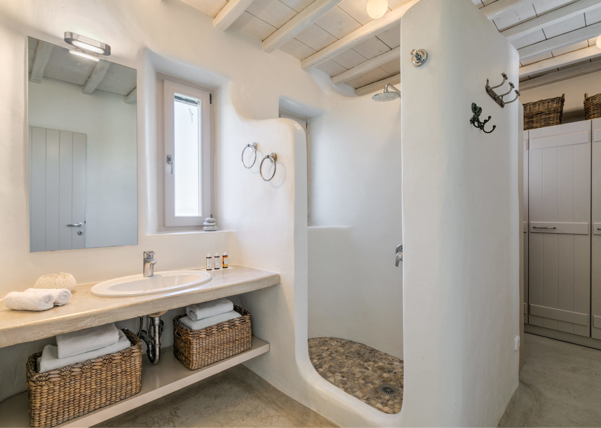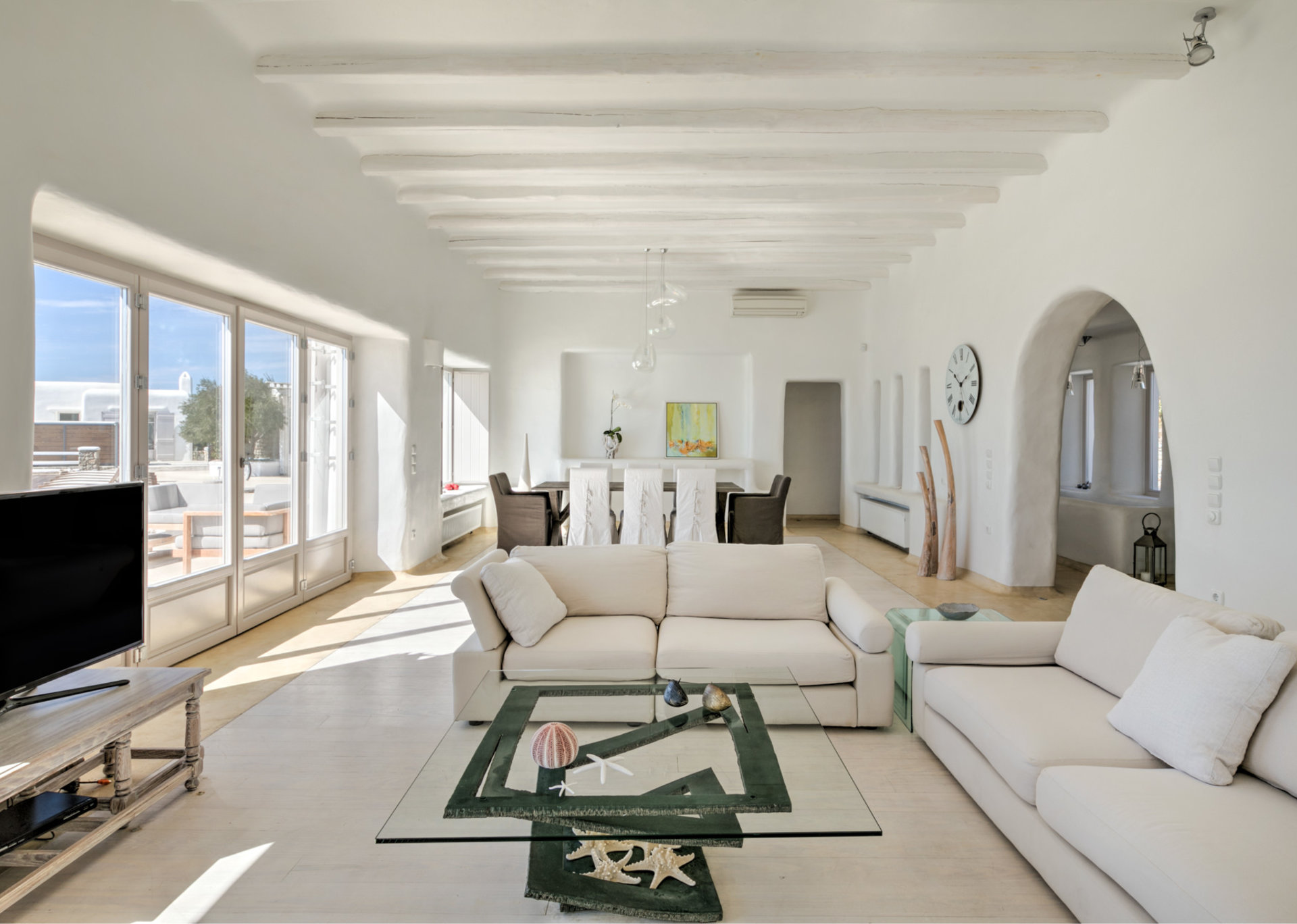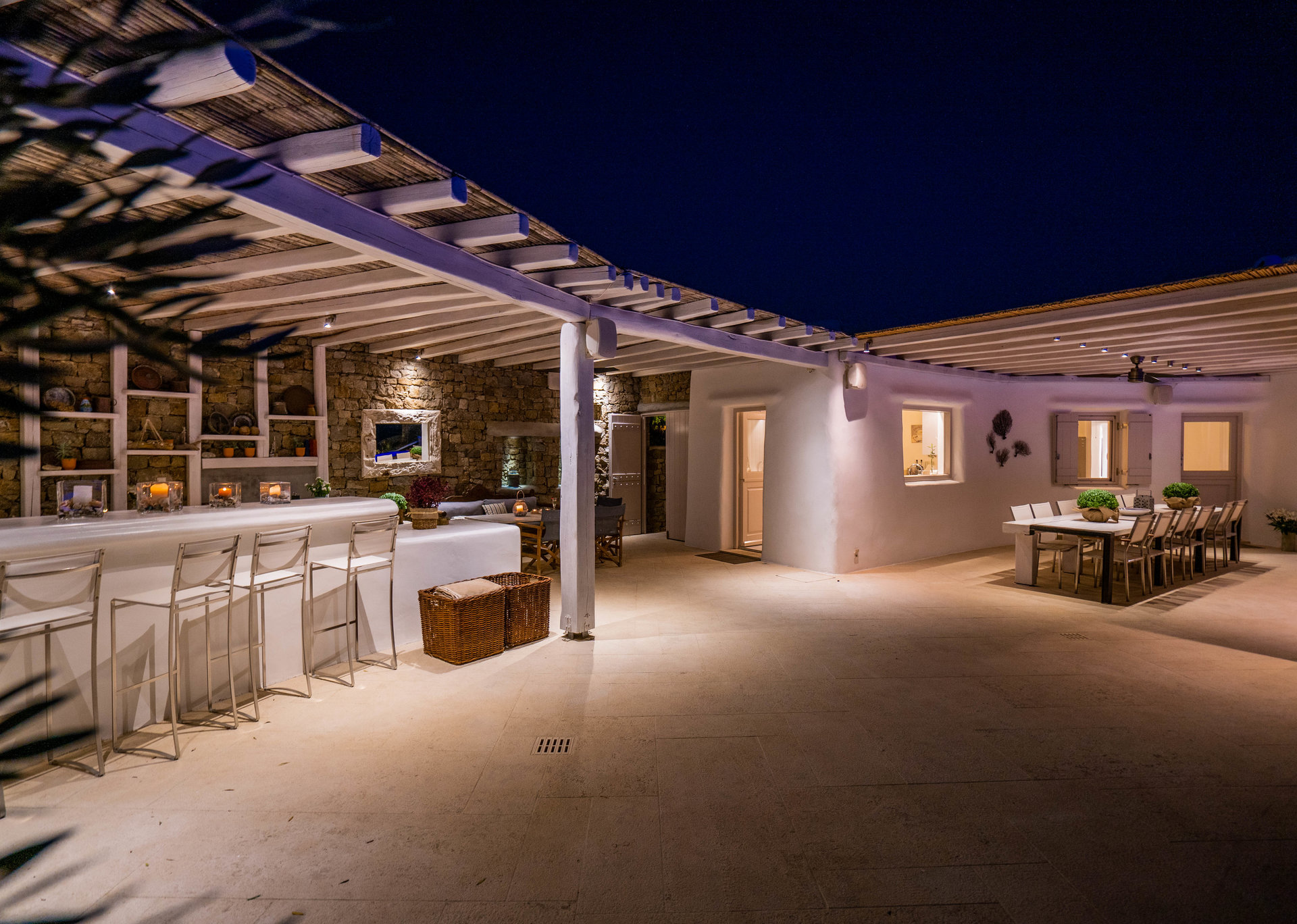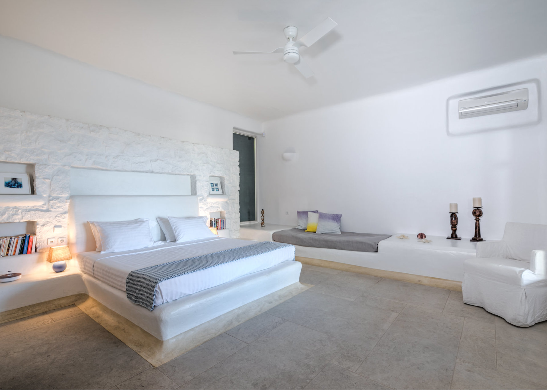 The villa is distinctive in its ability to accommodate VIP guests, families, or large groups, promising an airy and spacious retreat that seamlessly combines modern aesthetics with traditional charm. Revel in the seamless blend of contemporary luxury and the timeless allure of Mykonos.
