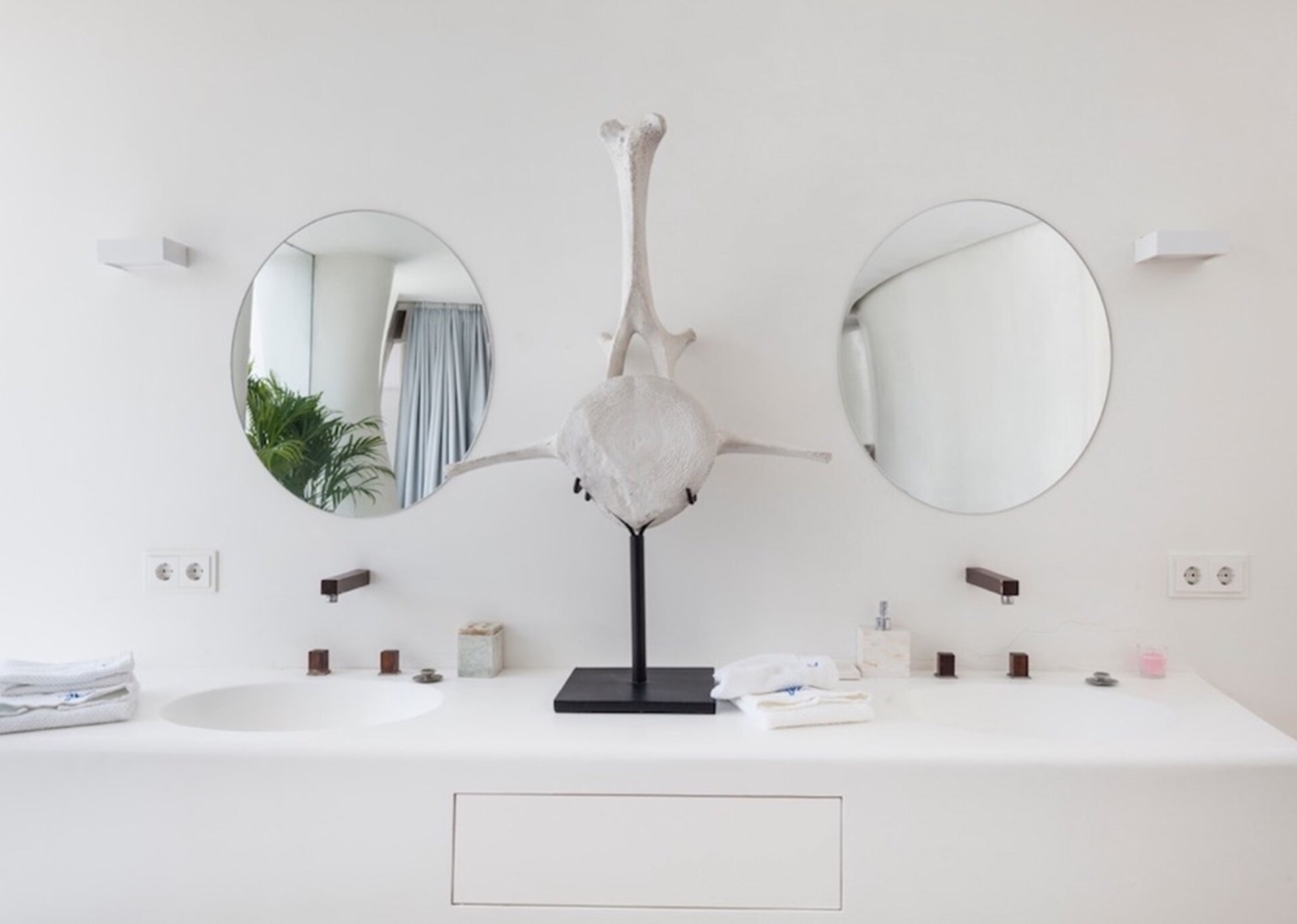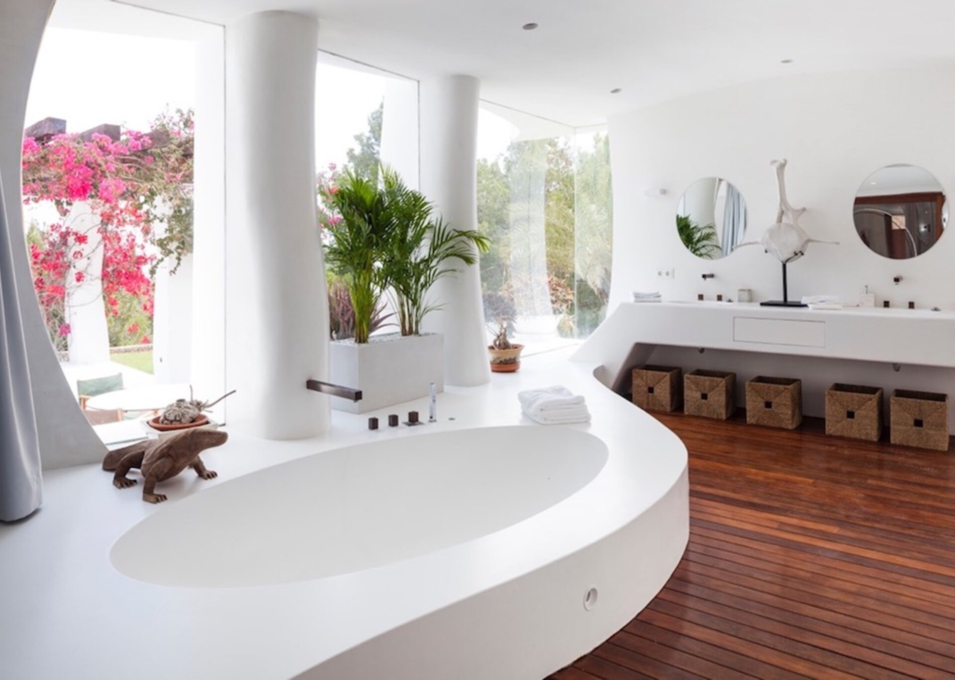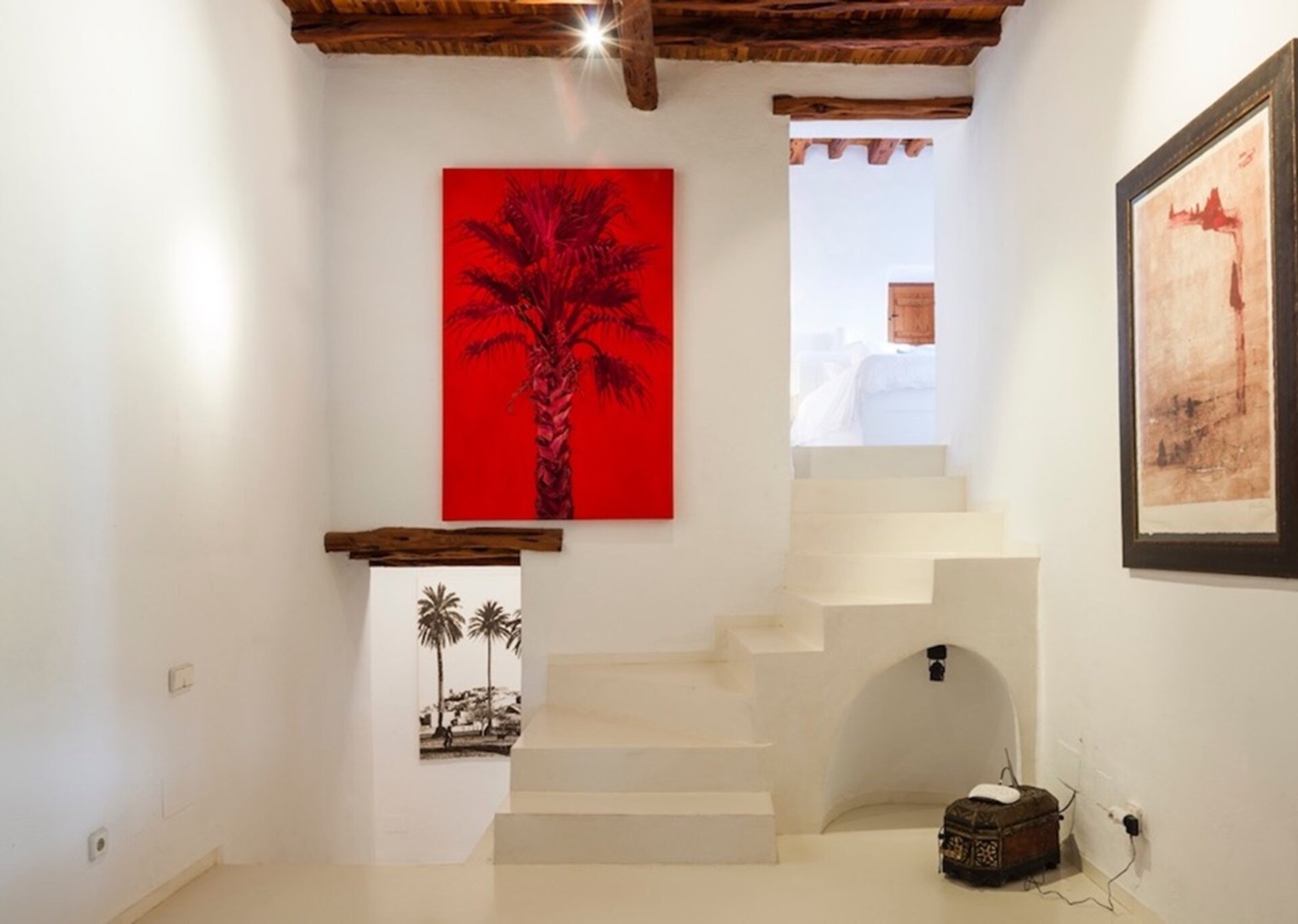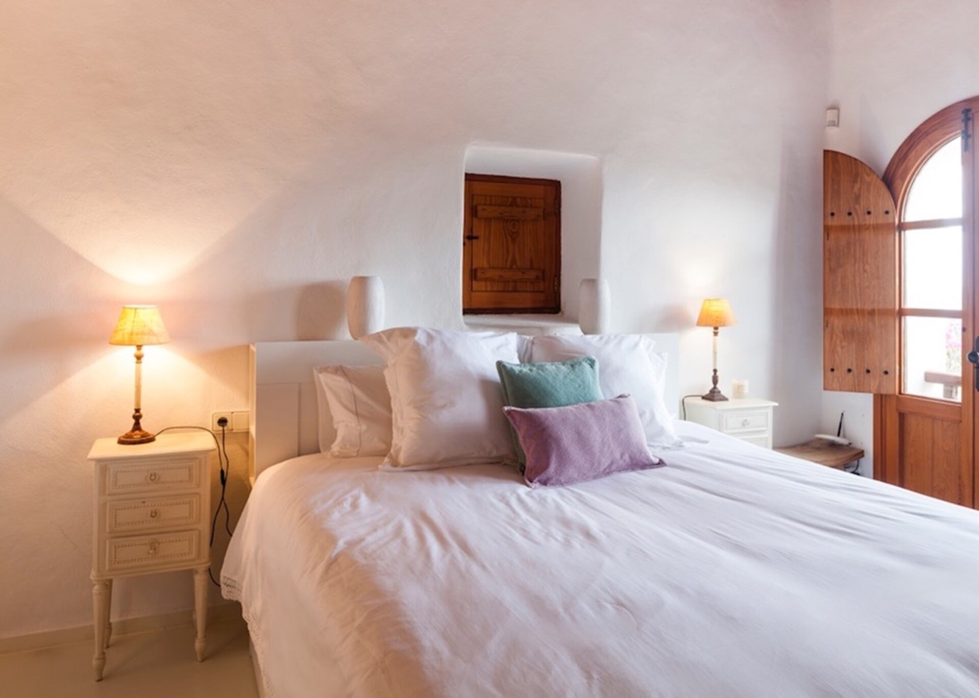The main suite is spacious and airy. Elevated above the expansive infinity pool and orientated south towards Formentera, the national park of Salinas and enjoying excellent quality of natural light at all hours of the day. The suite is detached from the main house and300 m2 located on the top of the hill, with one of the most beautiful views of the island. Just beside there is a separate massage room.