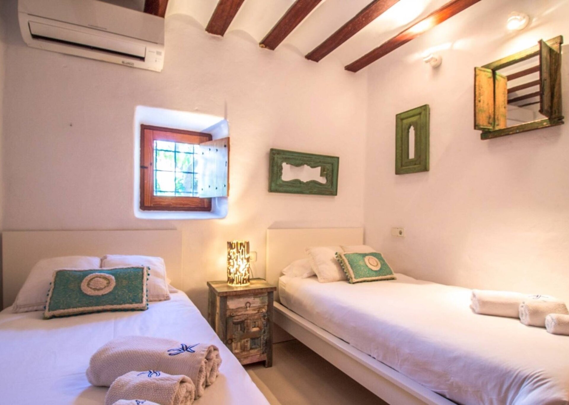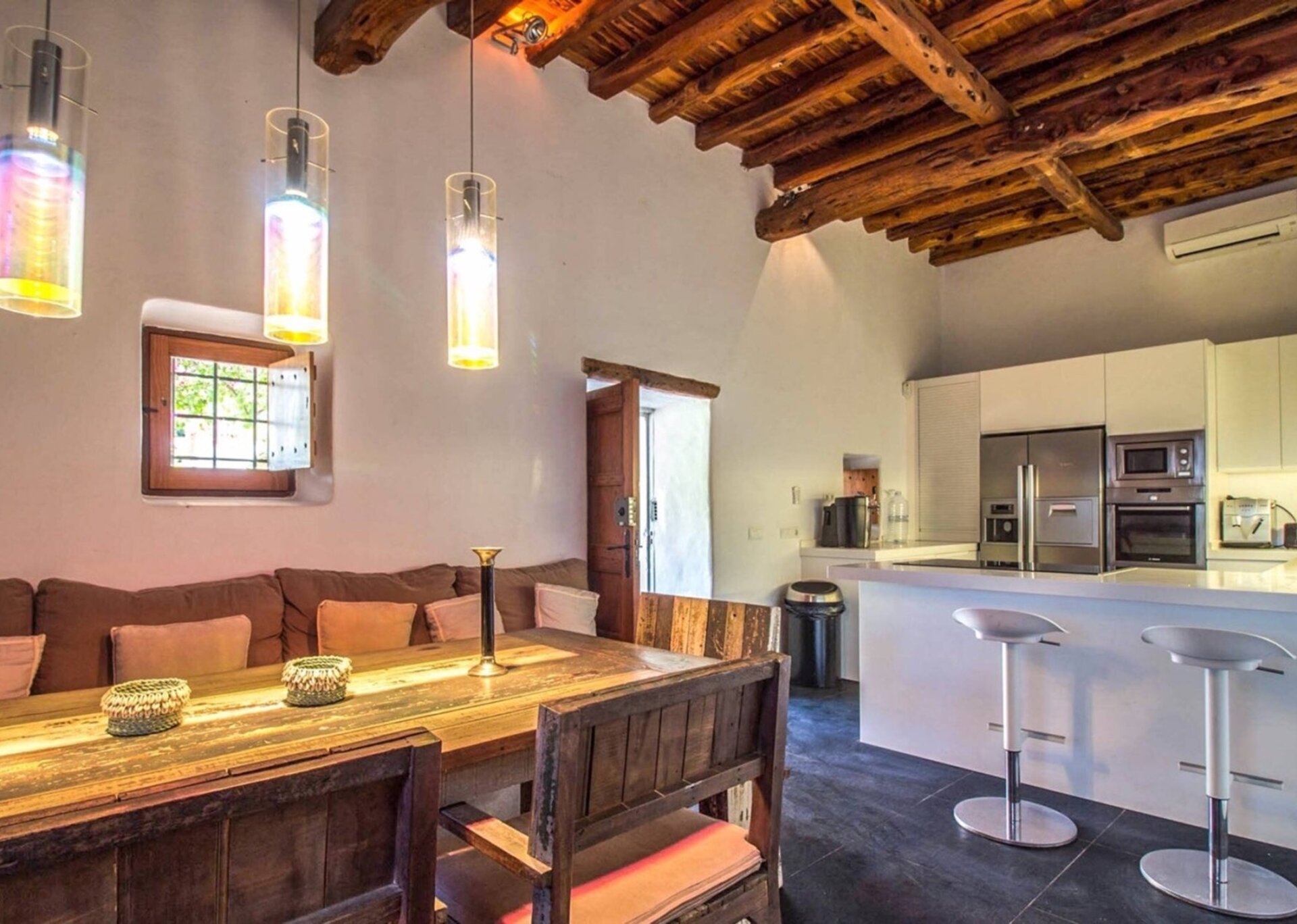 The farmhouse is a 200 year-old traditional finca that has been immaculately refurbished. The home interiors are finished with a blend of contemporary and traditional styles. The main house has a fully equipped modern kitchen with a spacious sunlit living-room, generous lounging sofas, a pool table and an additional bar. It also offers in house night club (permission required for use) equipped with the latest music technology, DJ cabin and lighting.