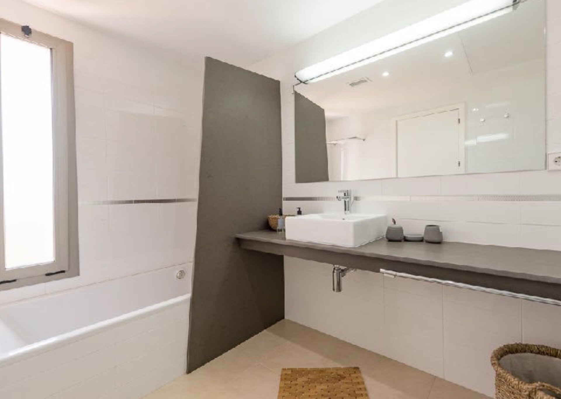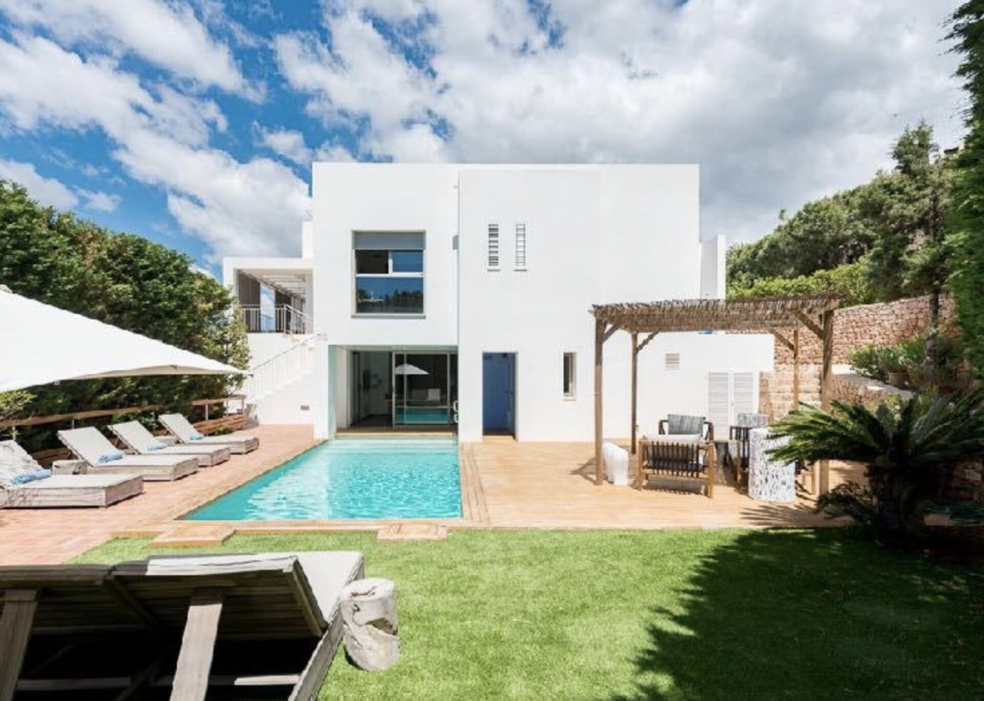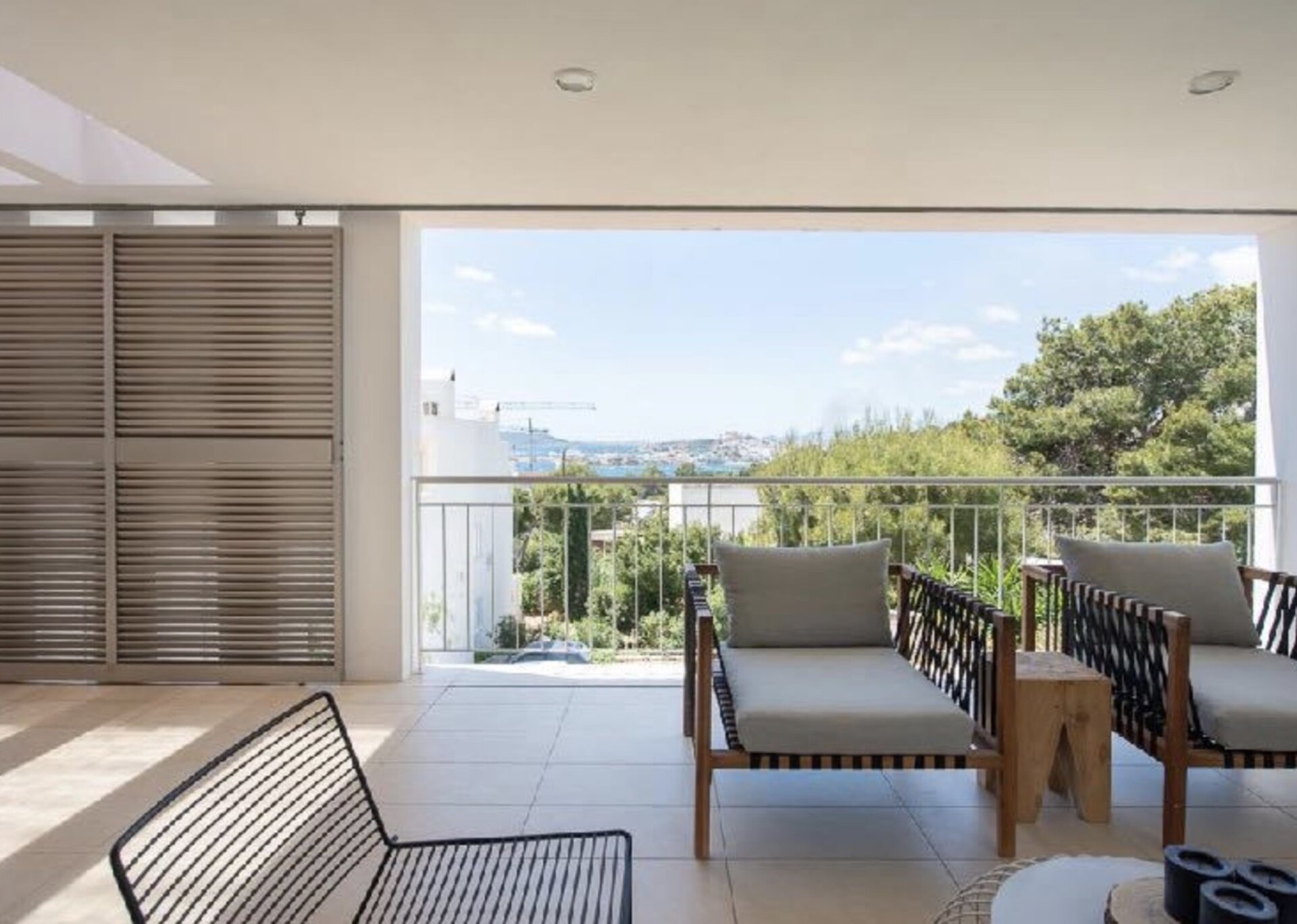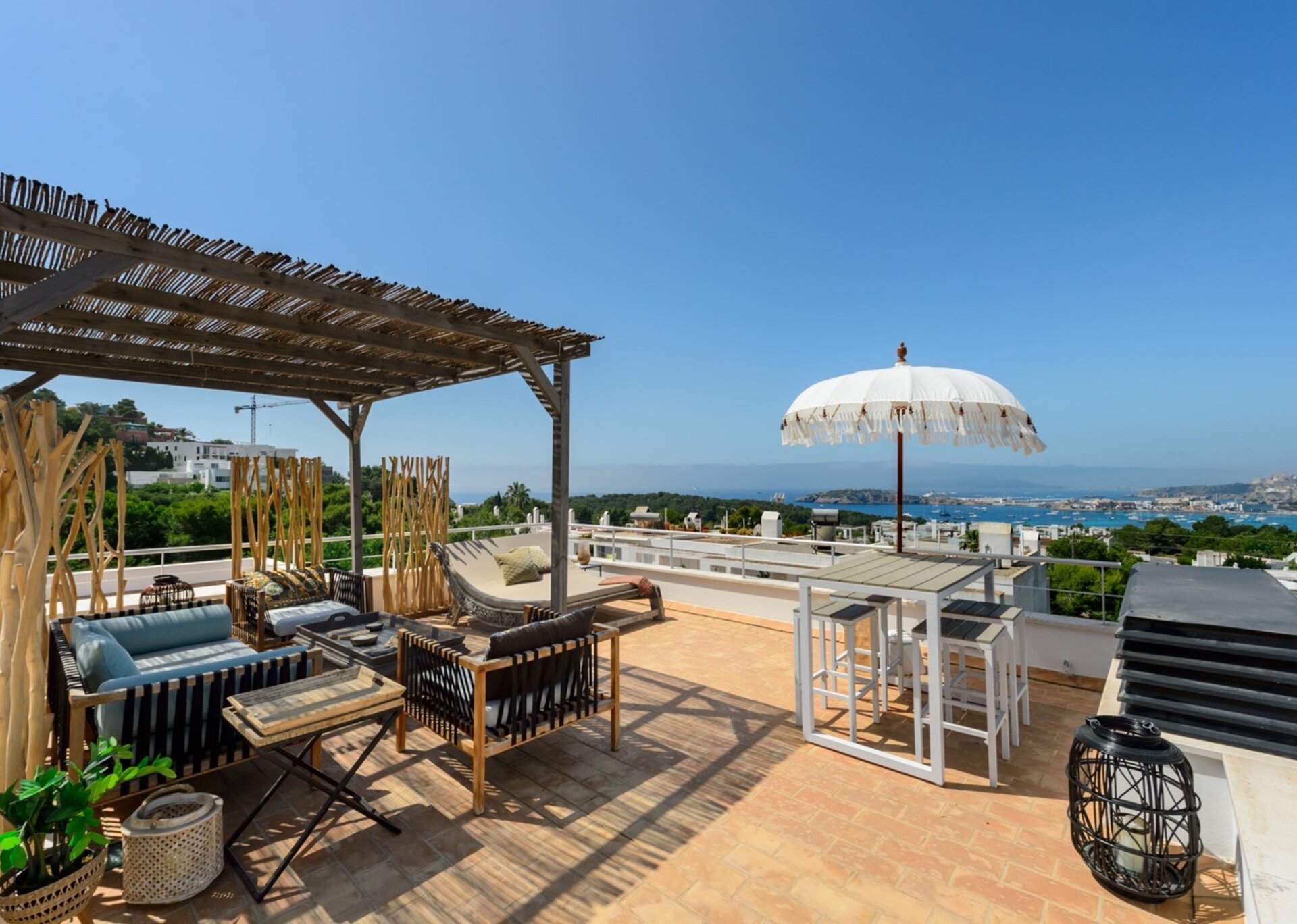 Villa Gustavo is a contemporary, recently refurbished duplex townhouse in Can Pep Simo. It boasts a prime location, just minutes away from both the beach and the center of Ibiza. Situated in a serene residential area, this remarkable vacation home offers stunning views of the Mediterranean, Formentera, Talamanca Bay, and Ibiza Old Town. The nearest beach is a mere 2-minute drive away.