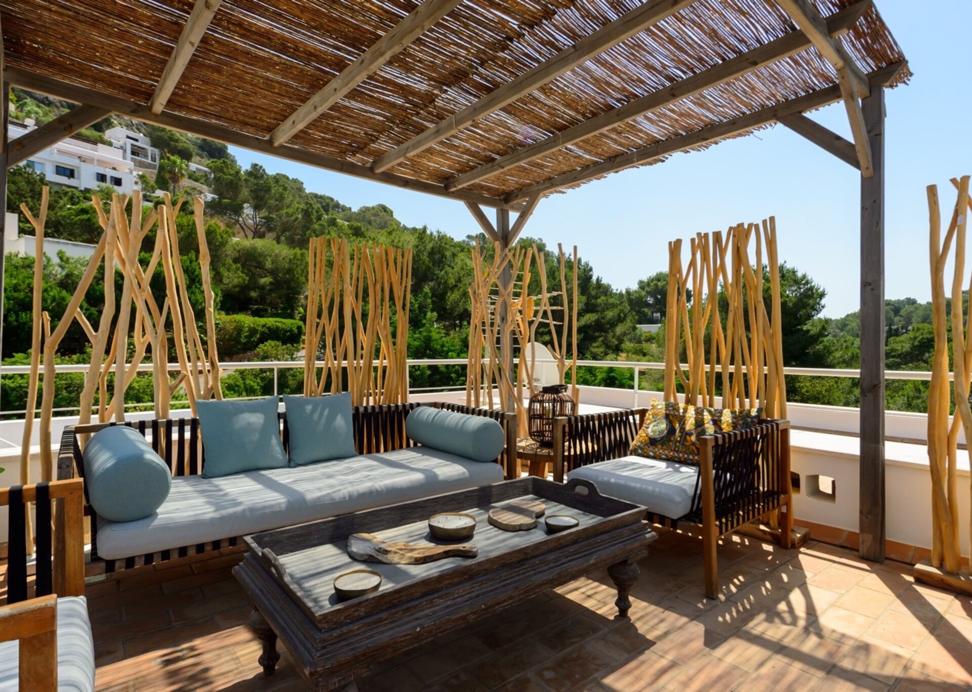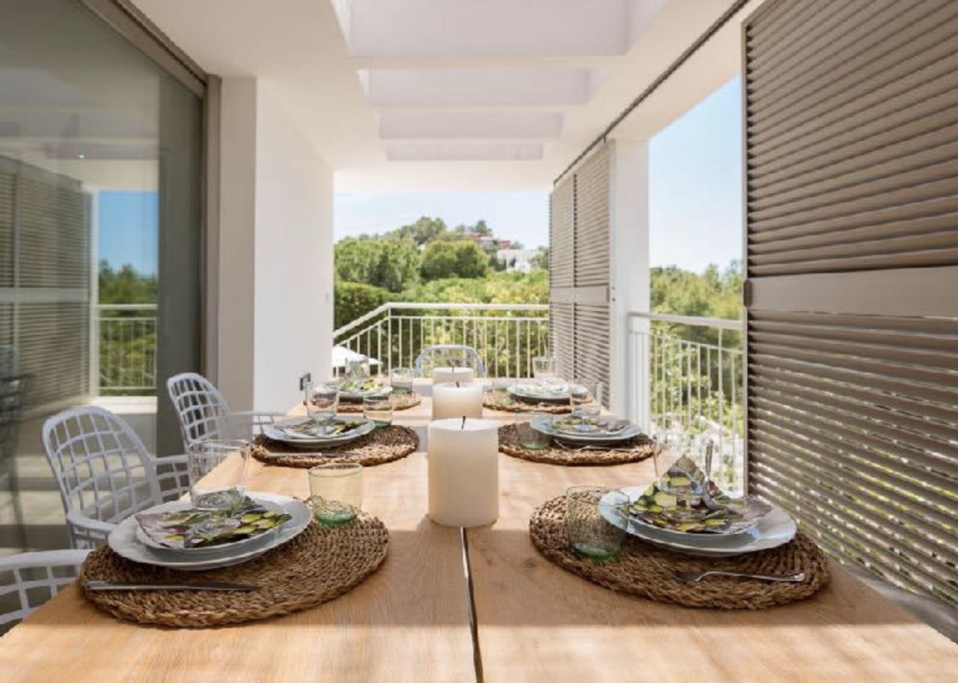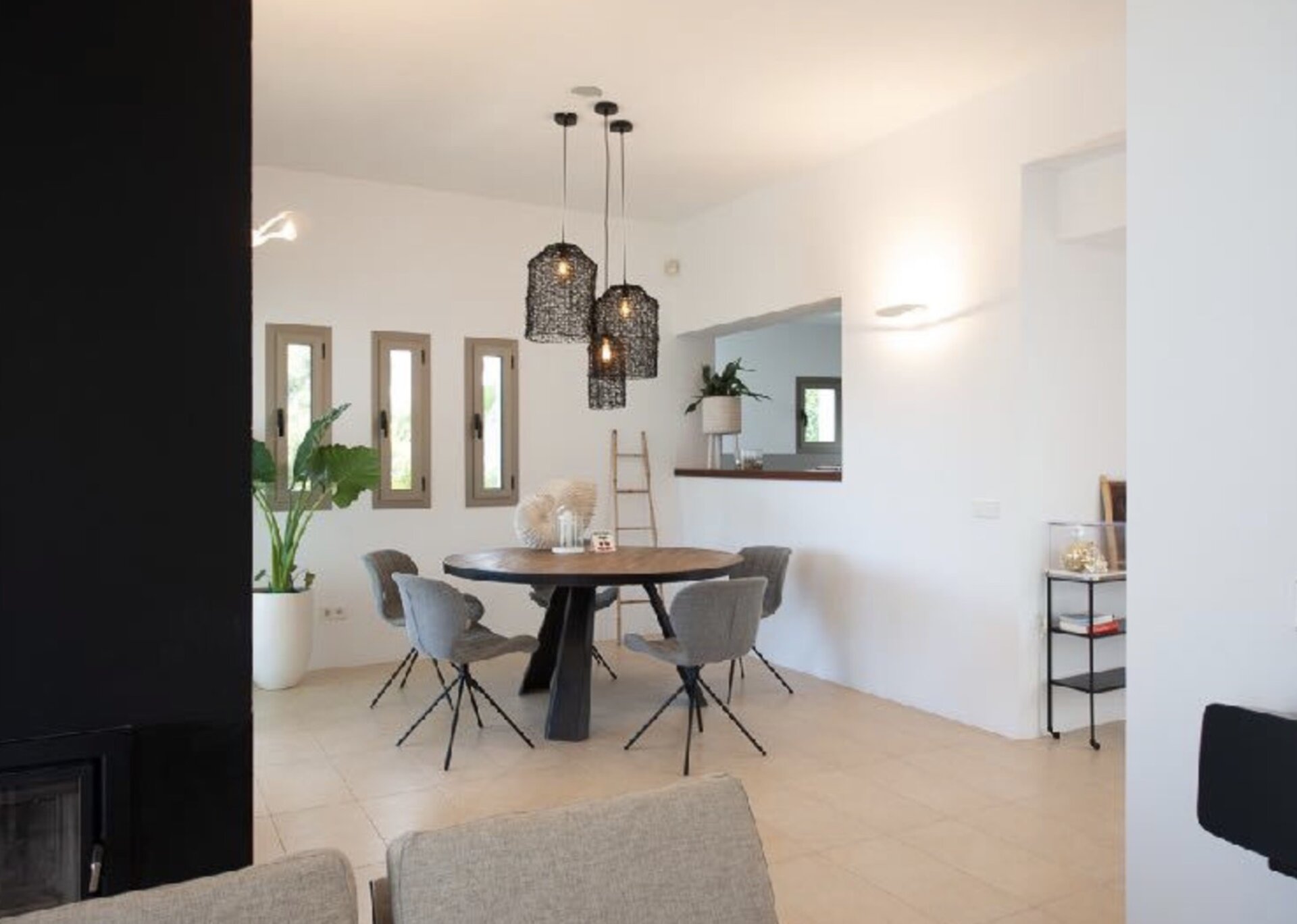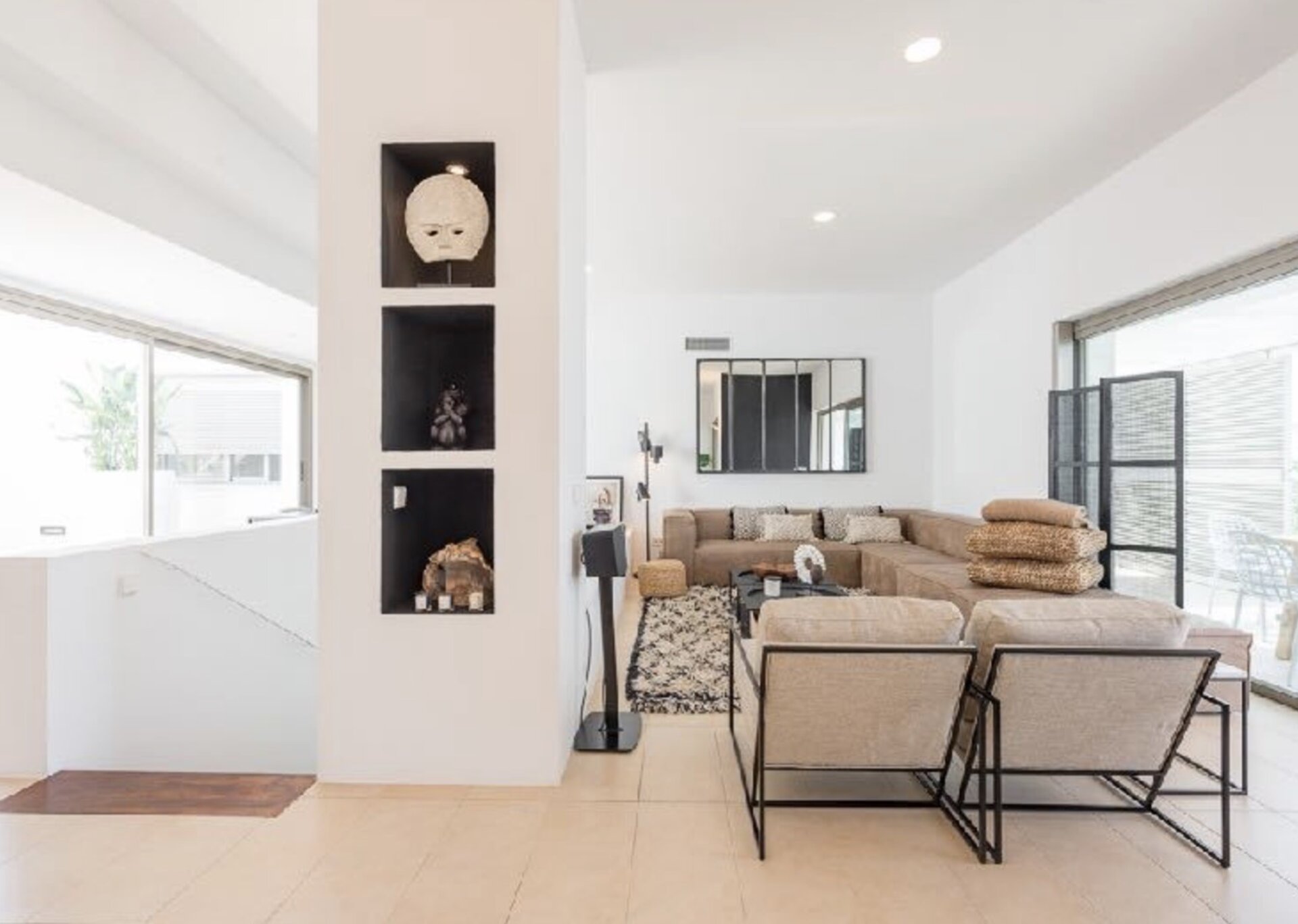 Villa Gustavo is a contemporary, recently refurbished duplex townhouse in Can Pep Simo. It boasts a prime location, just minutes away from both the beach and the center of Ibiza. Situated in a serene residential area, this remarkable vacation home offers stunning views of the Mediterranean, Formentera, Talamanca Bay, and Ibiza Old Town. The nearest beach is a mere 2-minute drive away.
