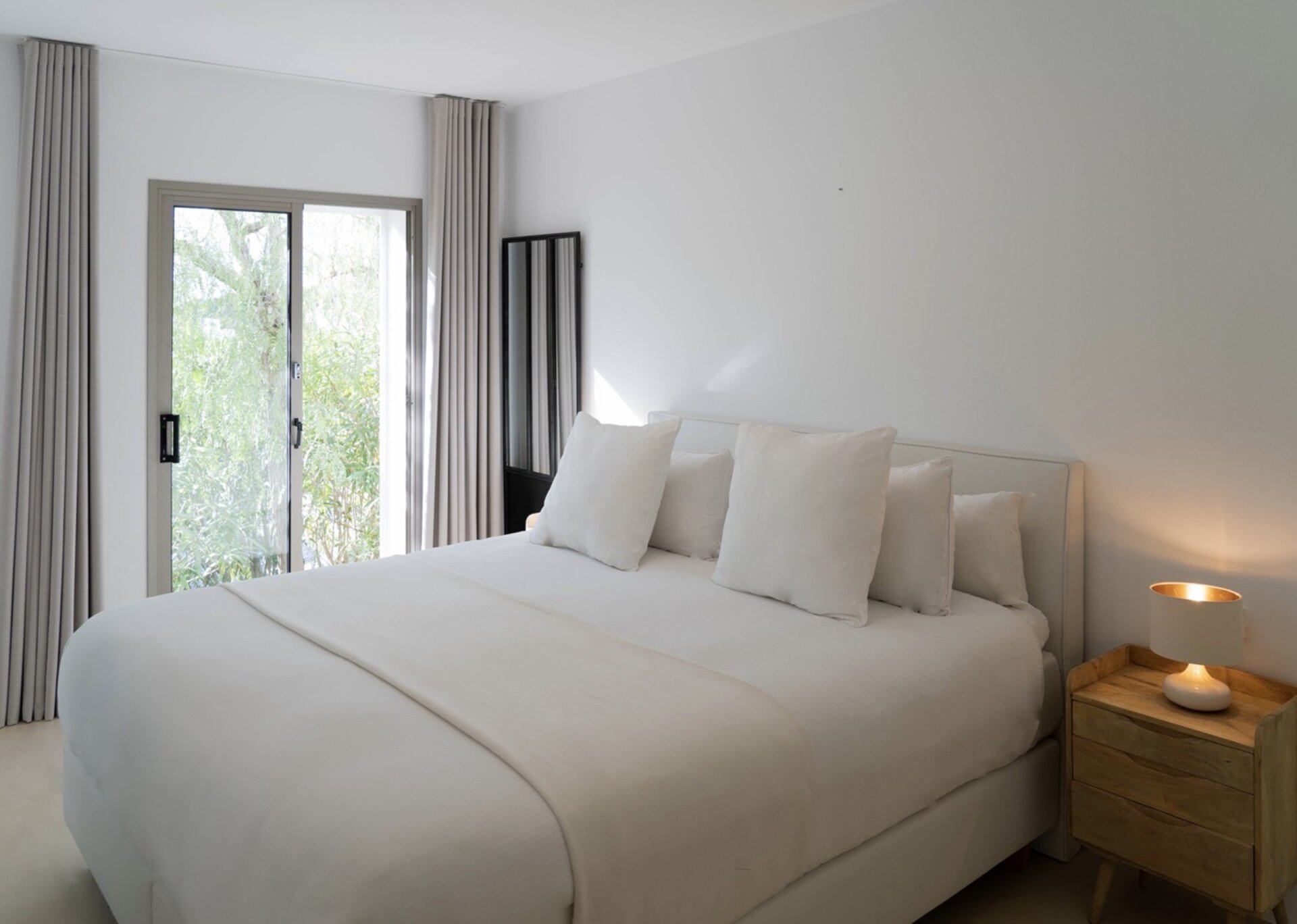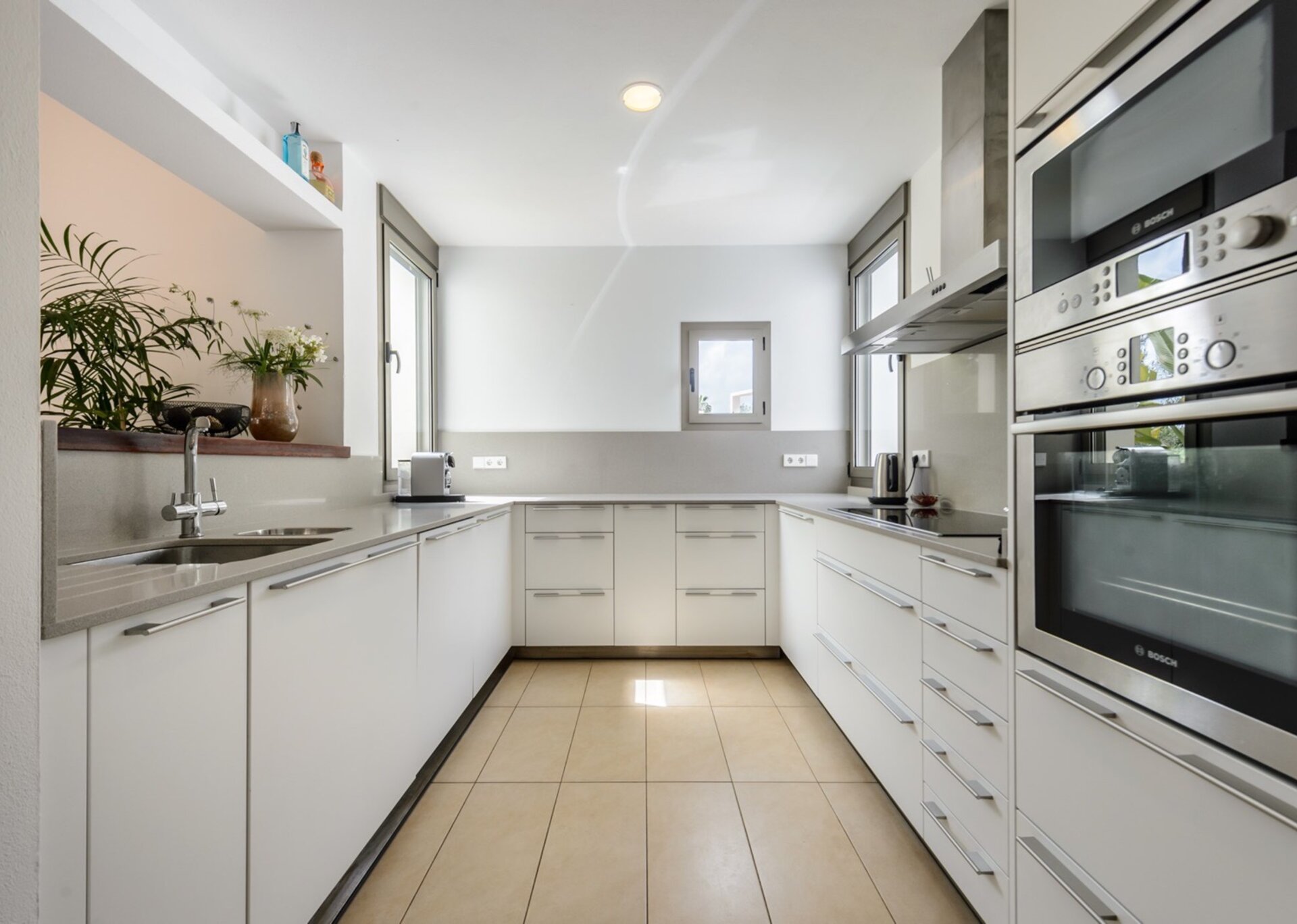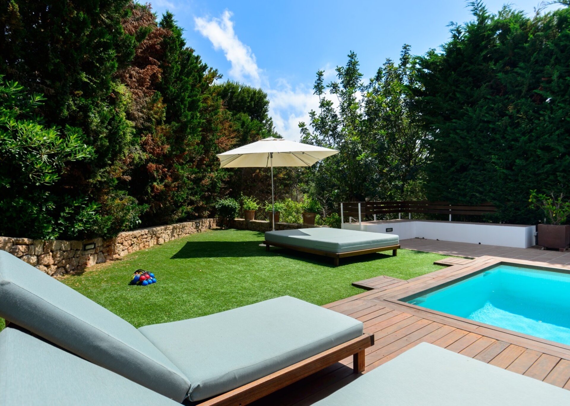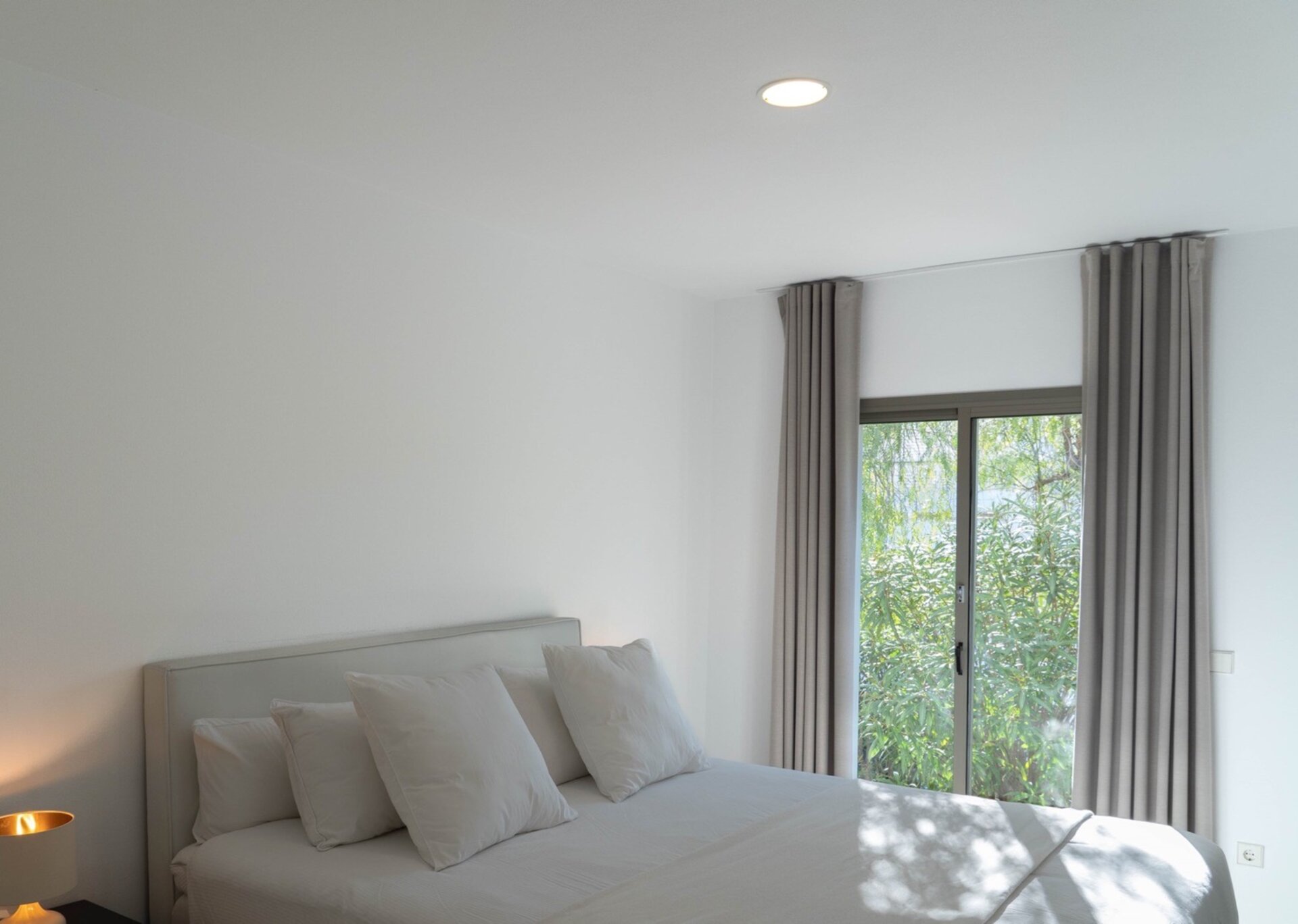 Villa Gustavo is a contemporary, recently refurbished duplex townhouse in Can Pep Simo. It boasts a prime location, just minutes away from both the beach and the center of Ibiza. Situated in a serene residential area, this remarkable vacation home offers stunning views of the Mediterranean, Formentera, Talamanca Bay, and Ibiza Old Town. The nearest beach is a mere 2-minute drive away.