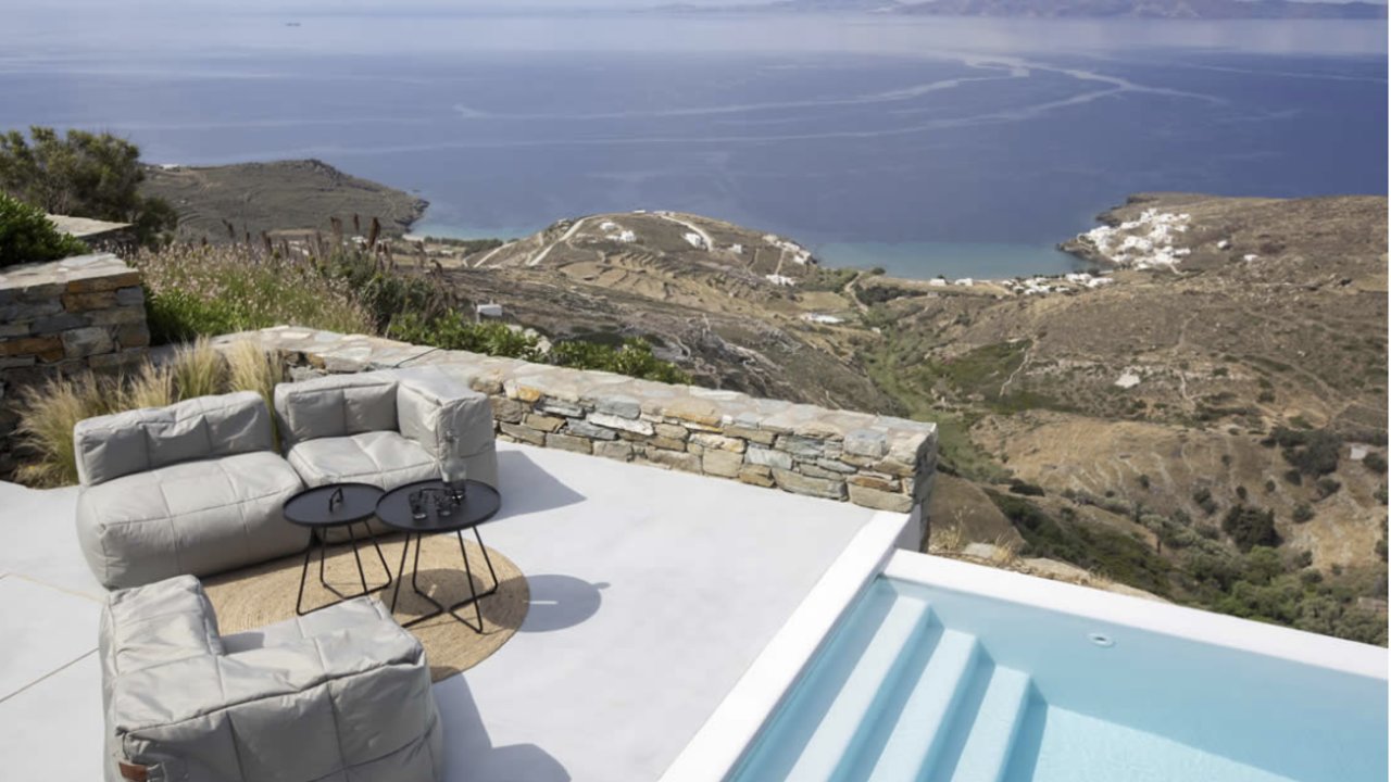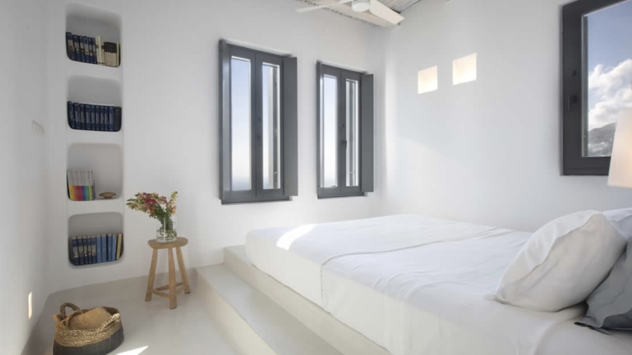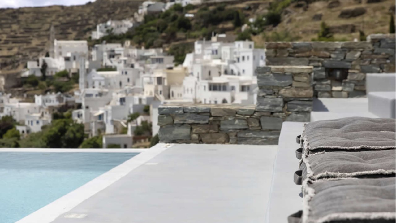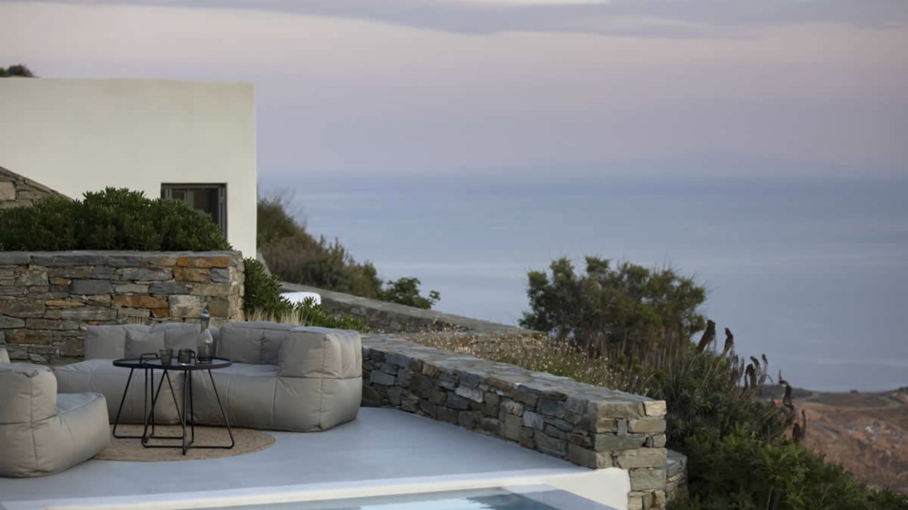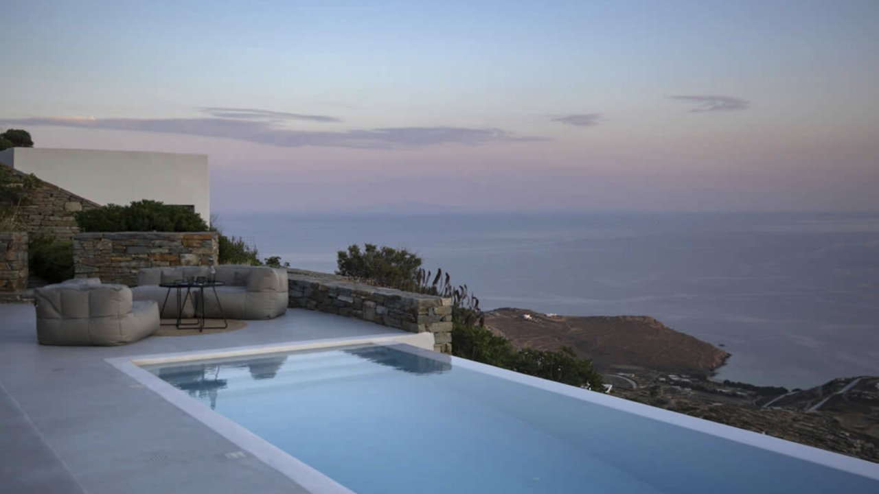 Overlooking the lovely small village of Kardiani, Villa Hera is the beloved sister of Villa Dione. Spoiling its guests, the villa grants awe-inspiring views from a private swimming pool and a fresh, airy ambiance from every distinct spot. The upper level, with a living room and a master bedroom is given out to light; a stylish kitchen and an unpretentious outdoors “patio” dining area indulge guest’s whims. Enduring charm and timeless spirit are swathed around by the wonderfully white walls of this modern Cycladic gem. Elegant Villa Hera lives by every rule of nature’s principle, embraces the sea, the sky, the wind and the sun and is simply perfect in every way. At the lower level a double bedroom with a private bathroom, like a secret spot, offers a secluded view to the charming village of Kardiani. Outdoors the stunning view from the private swimming pool invite guests to sit back and roll over to the undisturbed tranquility and allure of the moment.