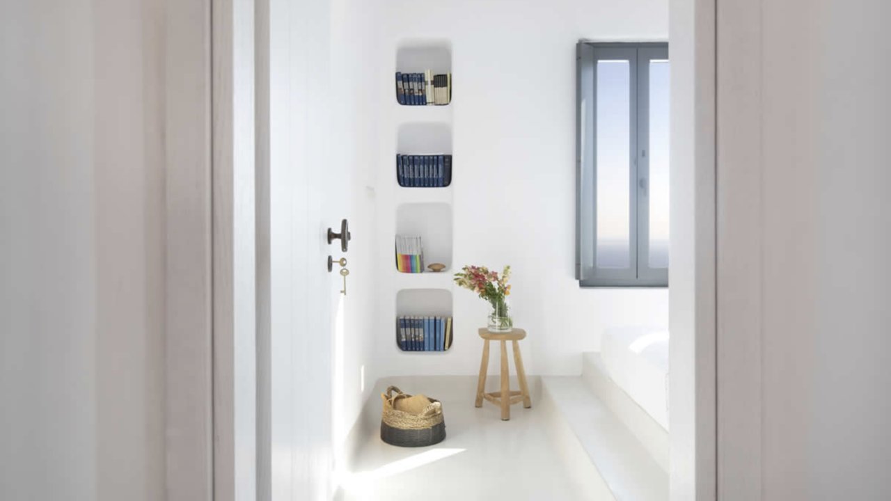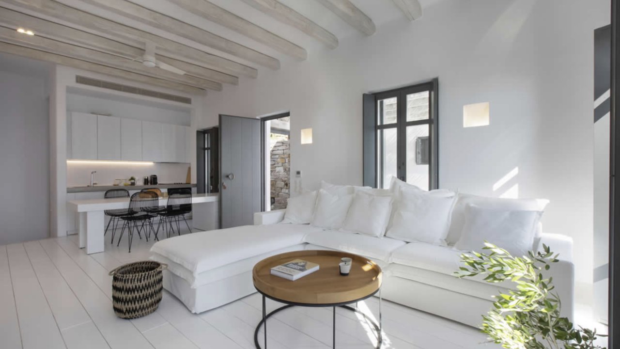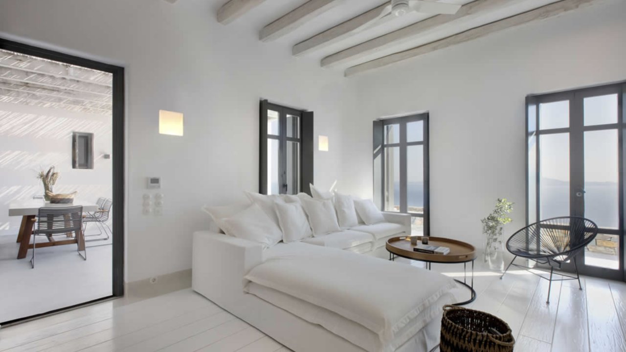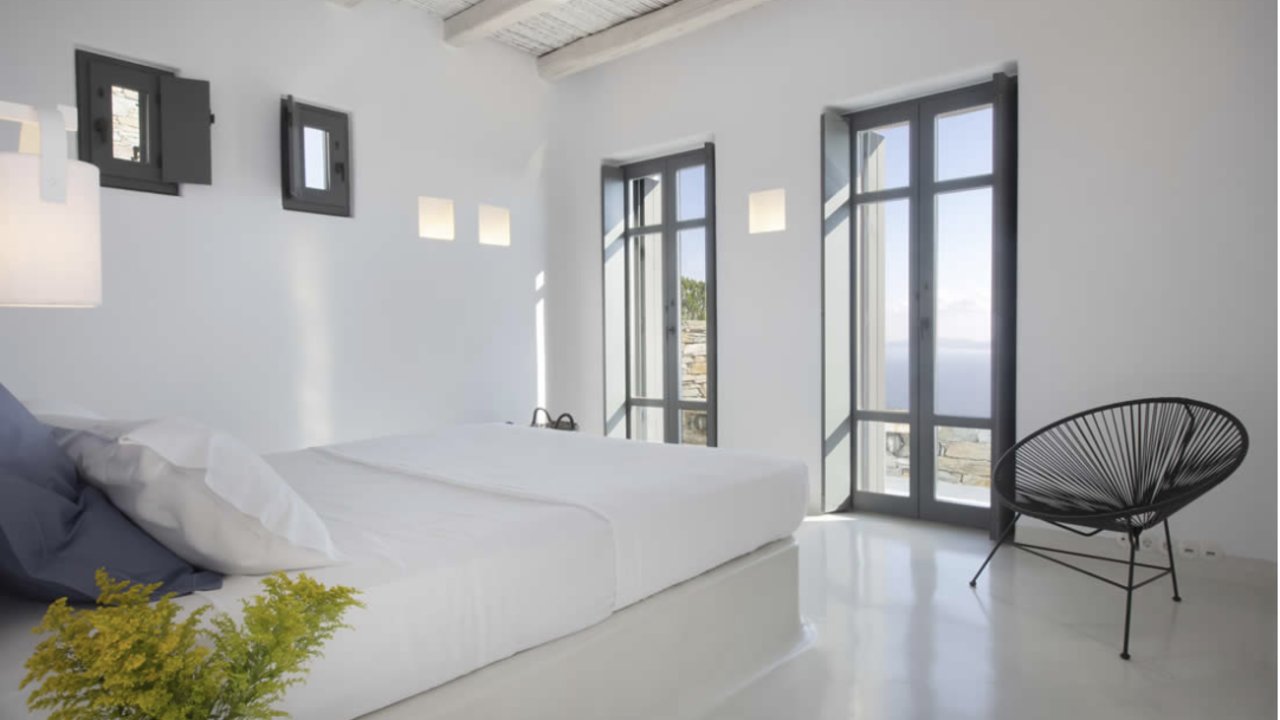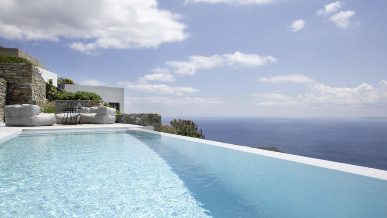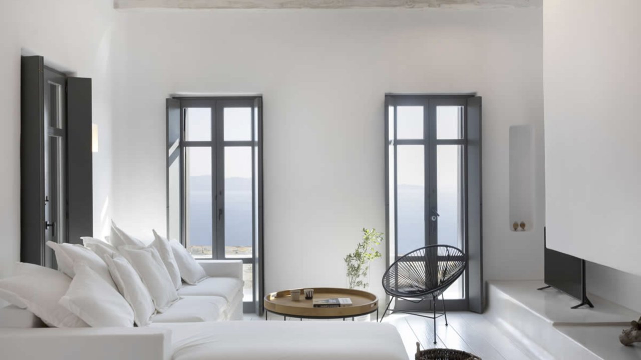 Overlooking the lovely small village of Kardiani, Villa Hera is the beloved sister of Villa Dione. Spoiling its guests, the villa grants awe-inspiring views from a private swimming pool and a fresh, airy ambiance from every distinct spot. The upper level, with a living room and a master bedroom is given out to light; a stylish kitchen and an unpretentious outdoors “patio” dining area indulge guest’s whims. Enduring charm and timeless spirit are swathed around by the wonderfully white walls of this modern Cycladic gem. Elegant Villa Hera lives by every rule of nature’s principle, embraces the sea, the sky, the wind and the sun and is simply perfect in every way. At the lower level a double bedroom with a private bathroom, like a secret spot, offers a secluded view to the charming village of Kardiani. Outdoors the stunning view from the private swimming pool invite guests to sit back and roll over to the undisturbed tranquility and allure of the moment.
