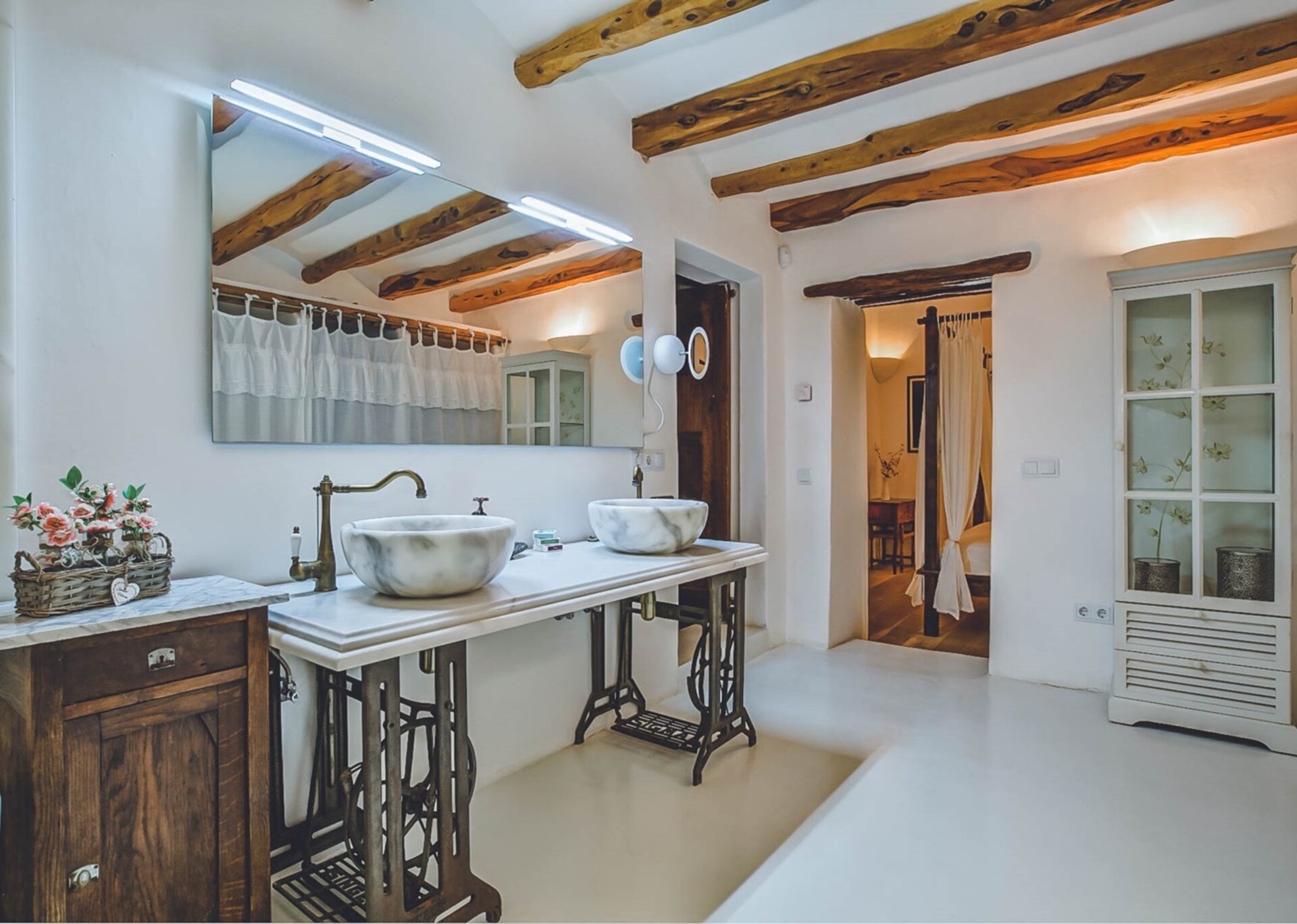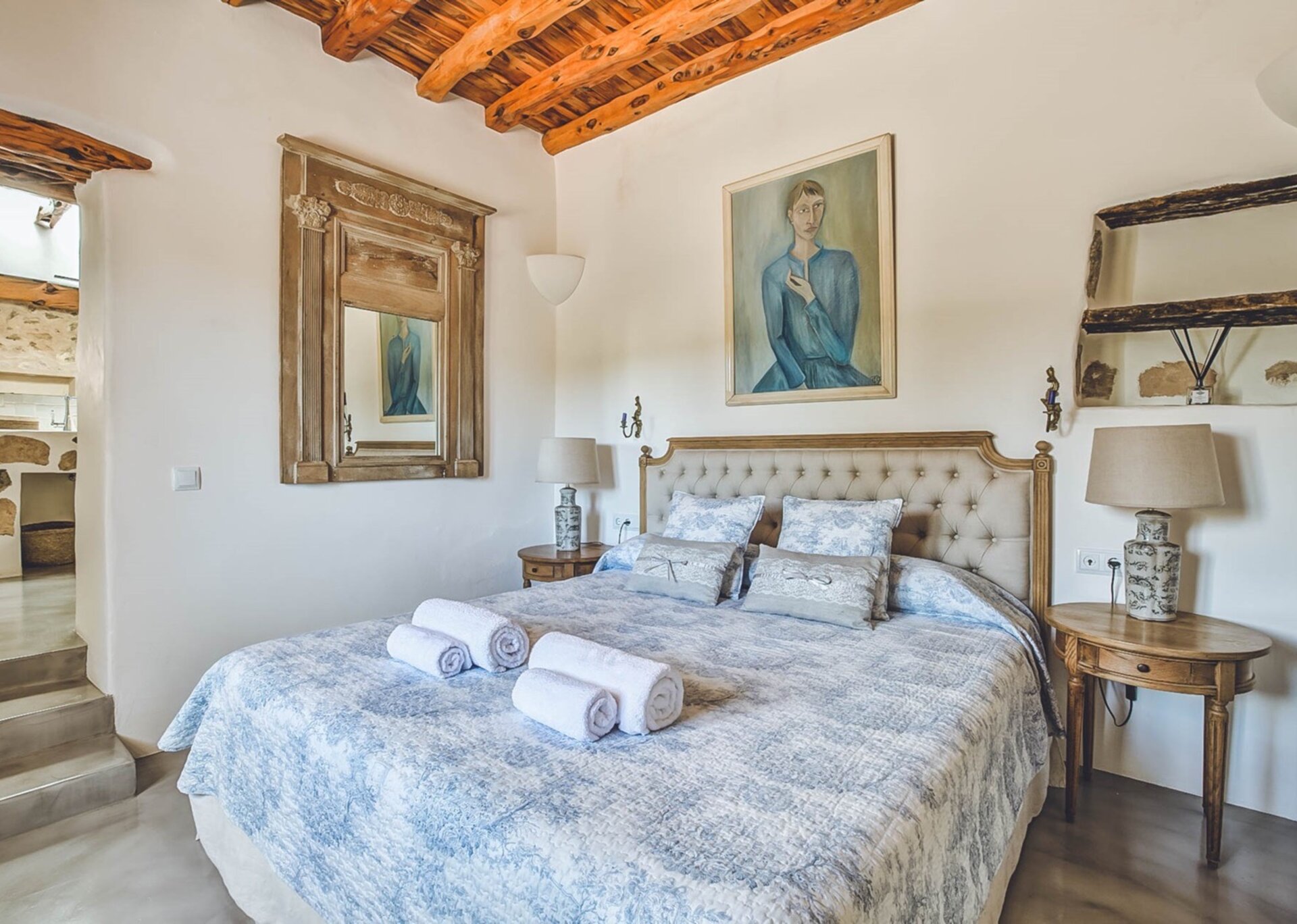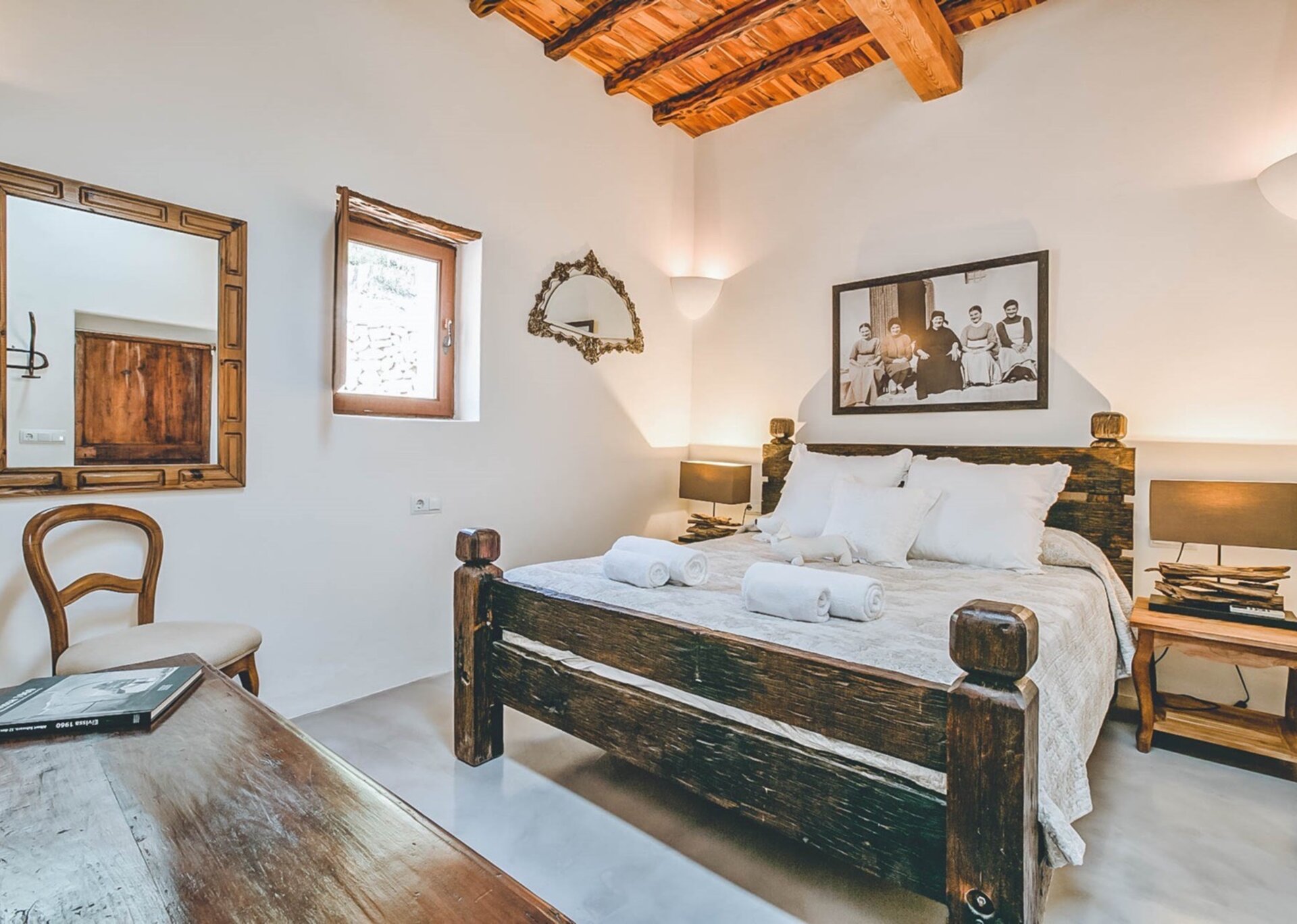 Situated near the village of San Rafael and the lively resort of San Antonio, Huracan provides easy access to the renowned sunset beaches of the south. Its exceptional interiors boast magnificent features like hardwood beamed ceilings, exposed stone walls, and traditional cement flooring. Every room has been meticulously cared for over the course of 200 years, as it has been in the same family for generations. The living spaces are spacious and inviting, inviting guests to explore and immerse themselves in the rich history of the home.