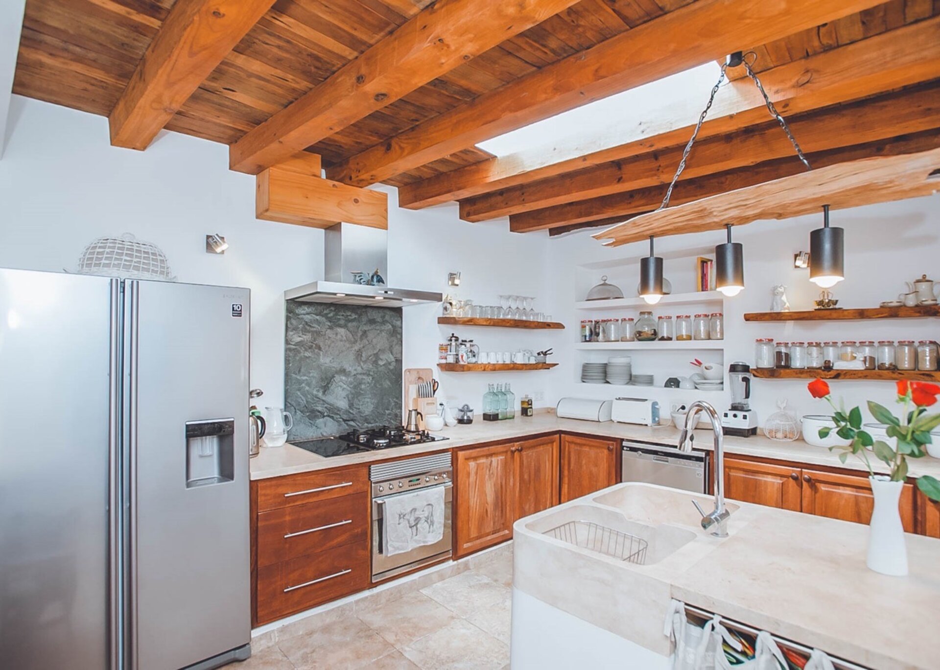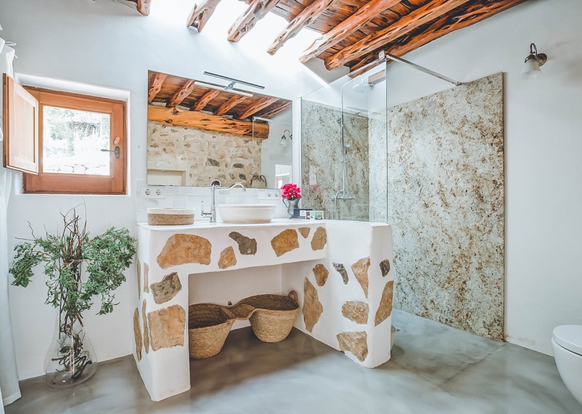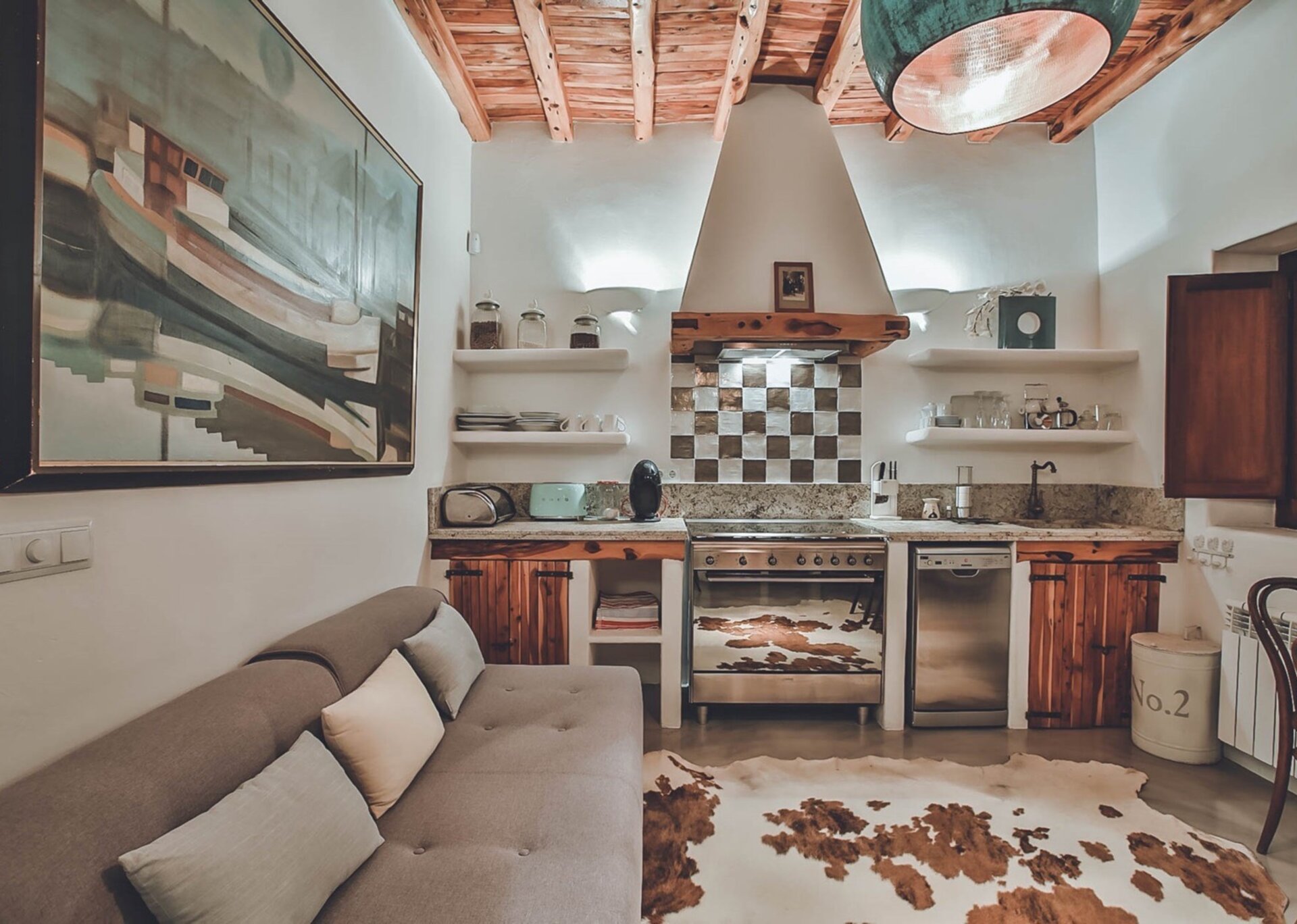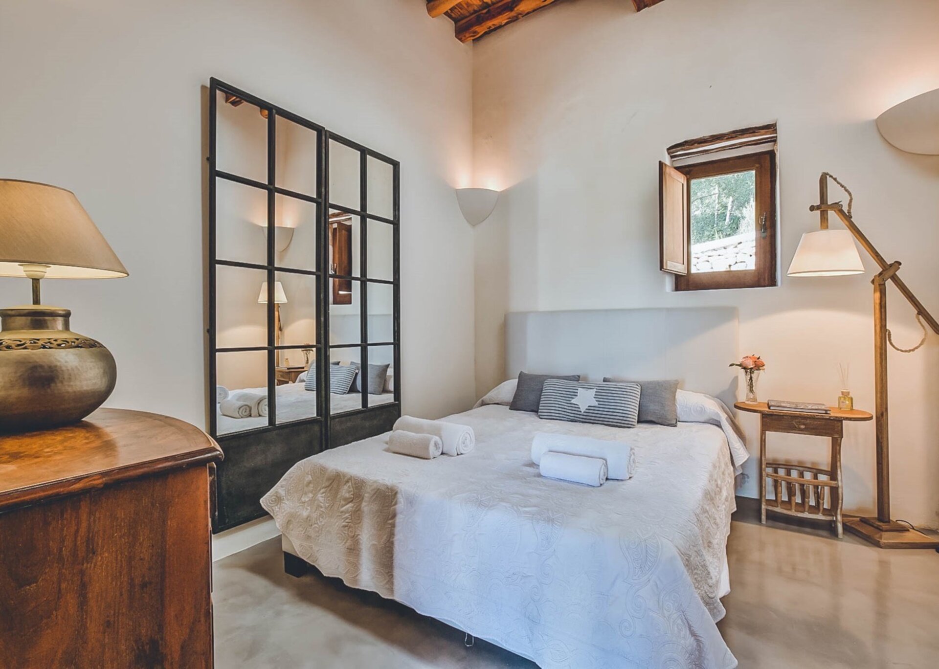 Situated near the village of San Rafael and the lively resort of San Antonio, Huracan provides easy access to the renowned sunset beaches of the south. Its exceptional interiors boast magnificent features like hardwood beamed ceilings, exposed stone walls, and traditional cement flooring. Every room has been meticulously cared for over the course of 200 years, as it has been in the same family for generations. The living spaces are spacious and inviting, inviting guests to explore and immerse themselves in the rich history of the home.